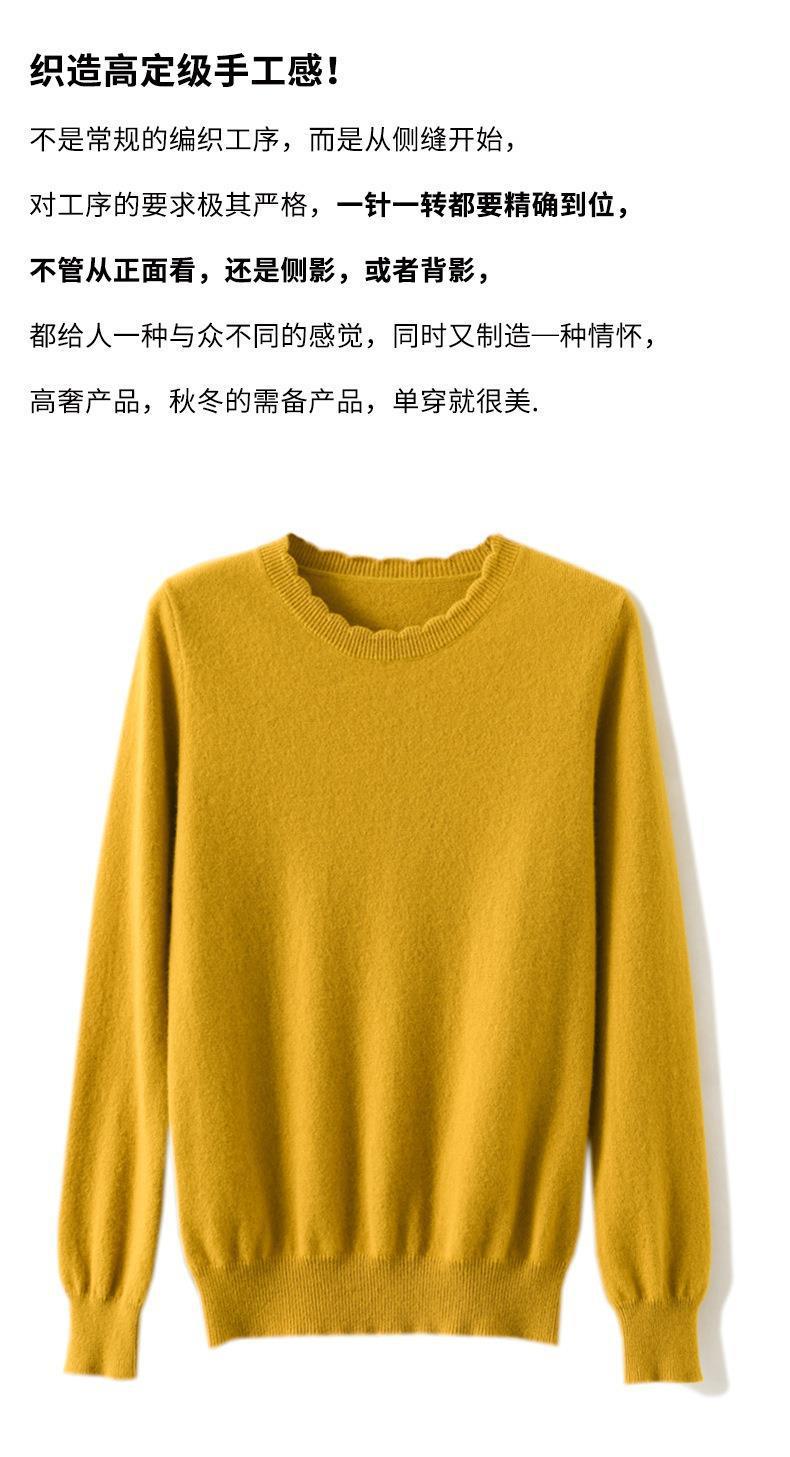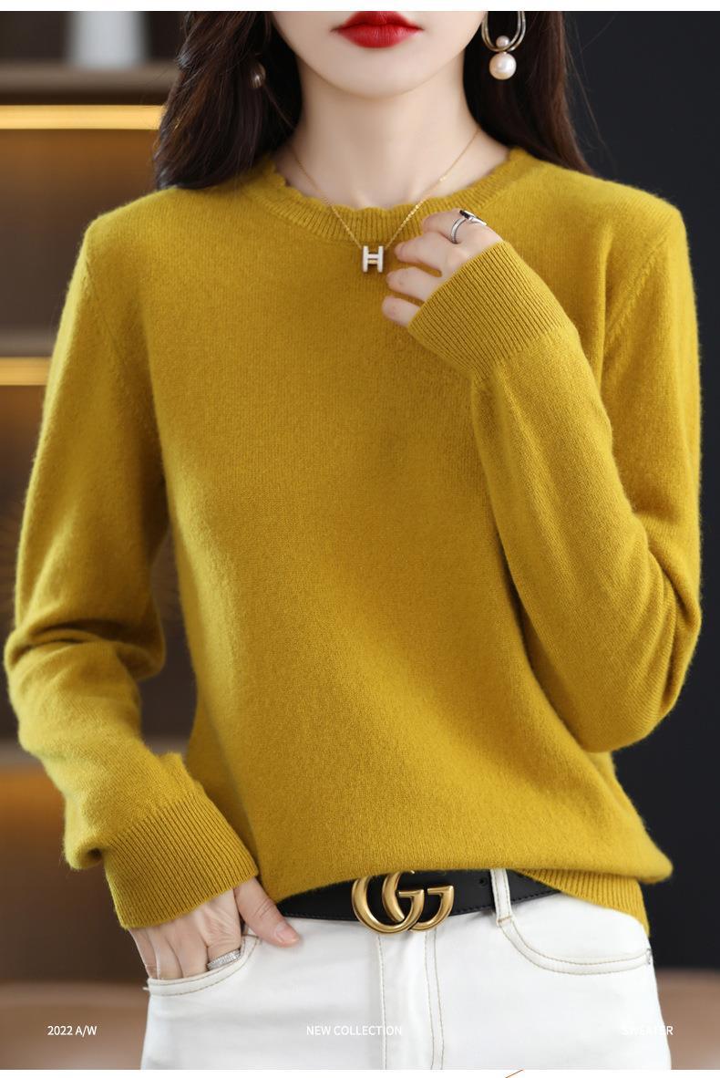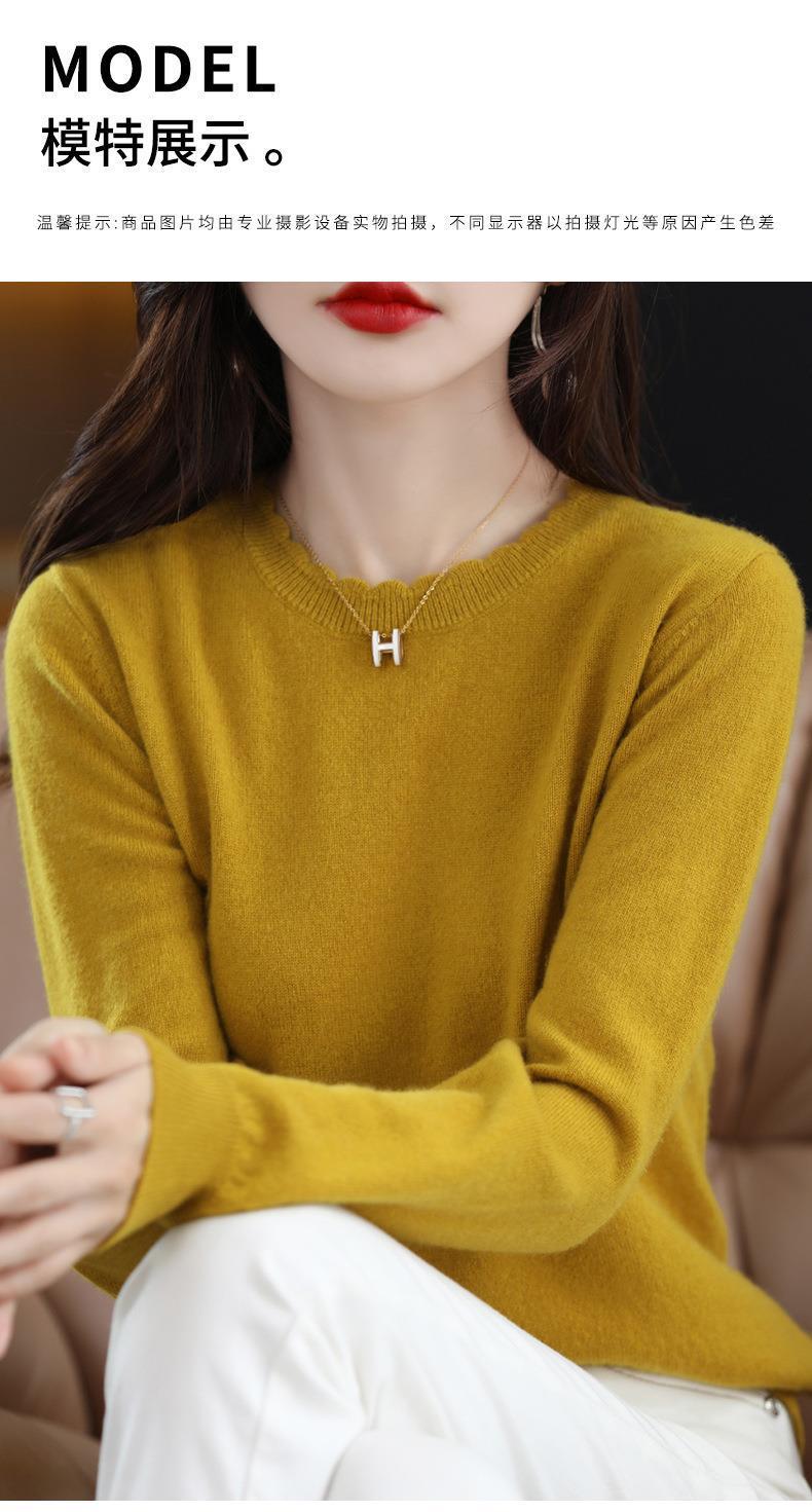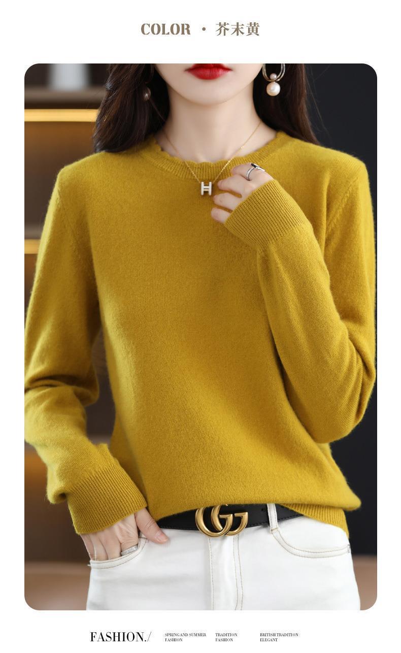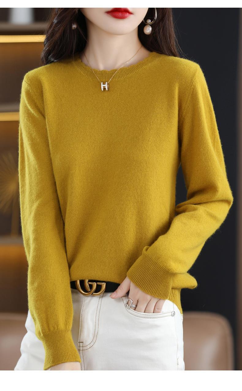 黄色圆领毛衣上衣长袖针织衫女款内穿外搭打底衫宽松气质毛衣