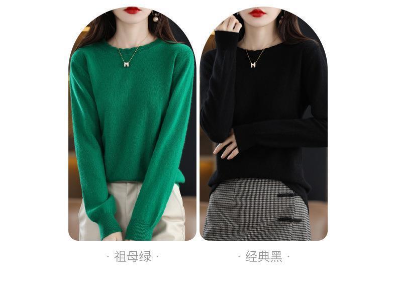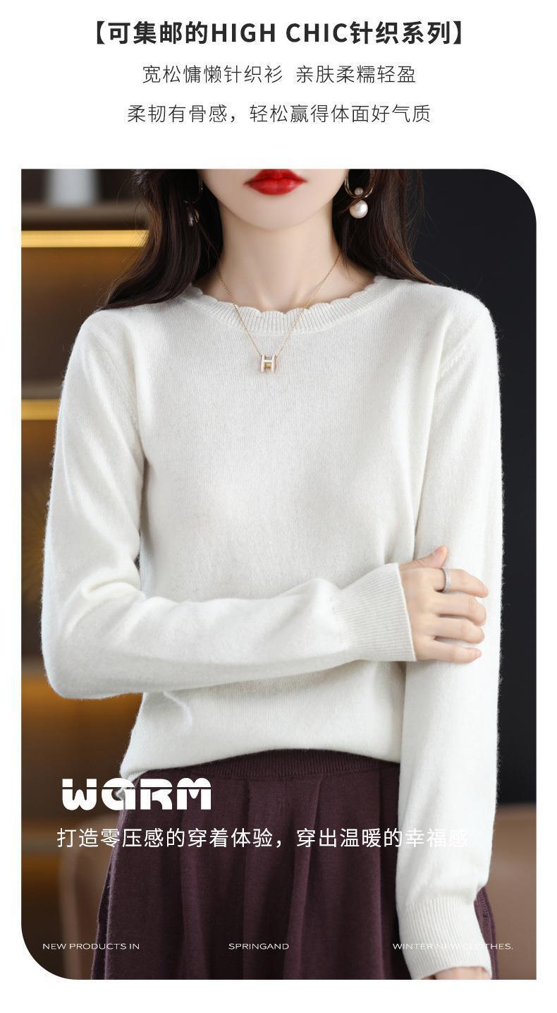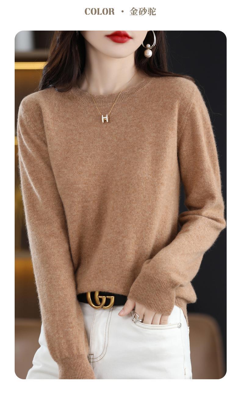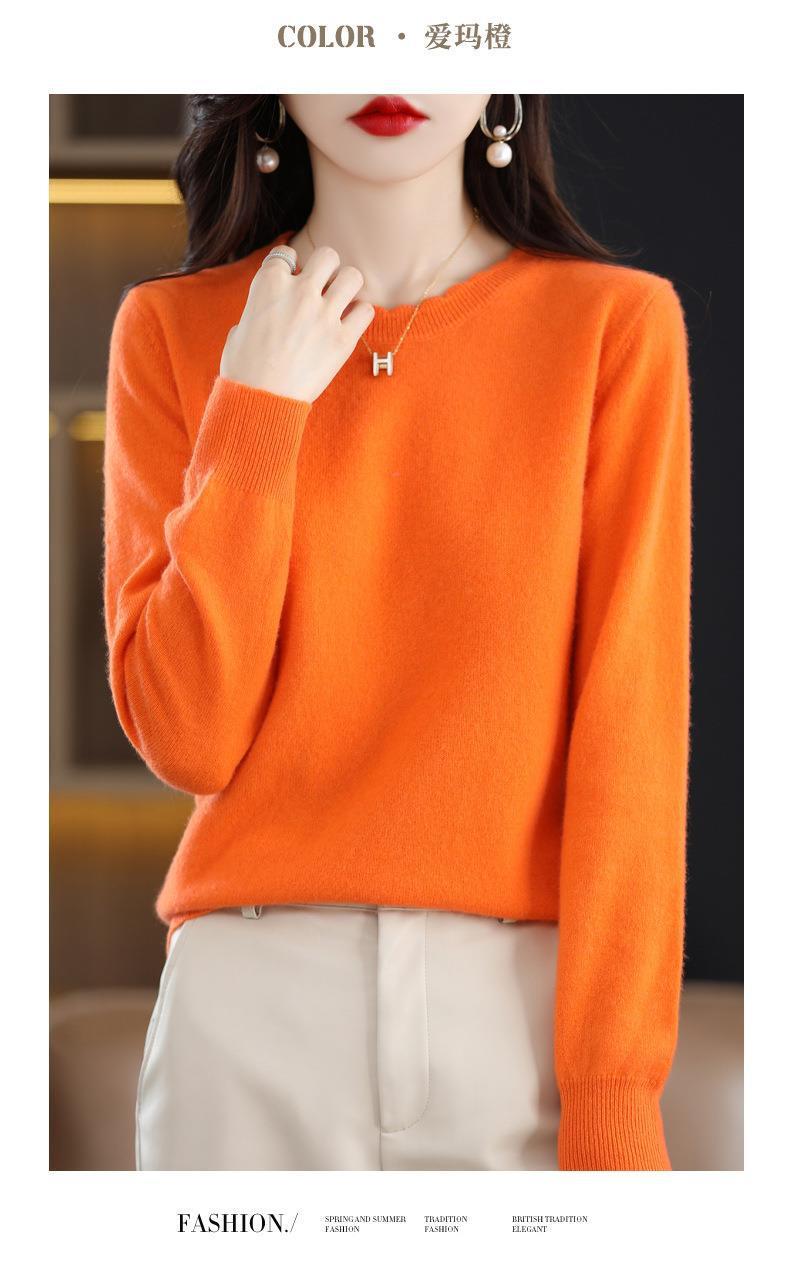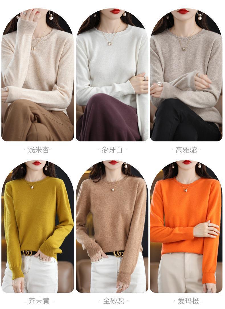 黄色圆领毛衣上衣长袖针织衫女款内穿外搭打底衫宽松气质毛衣