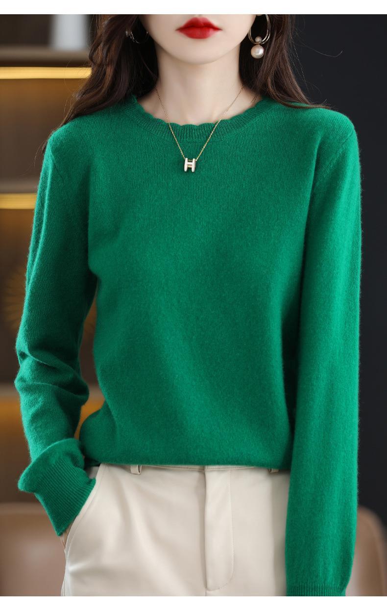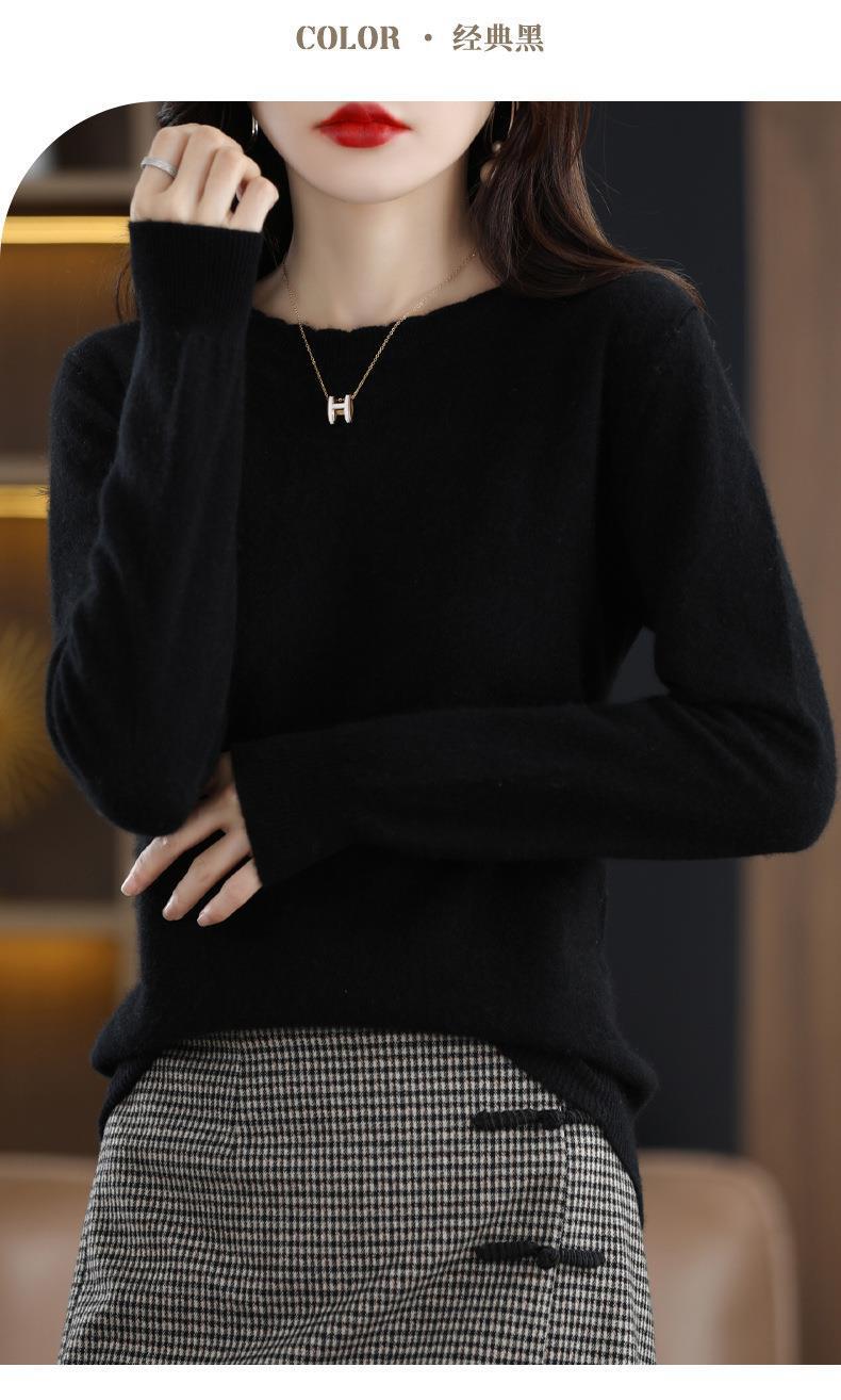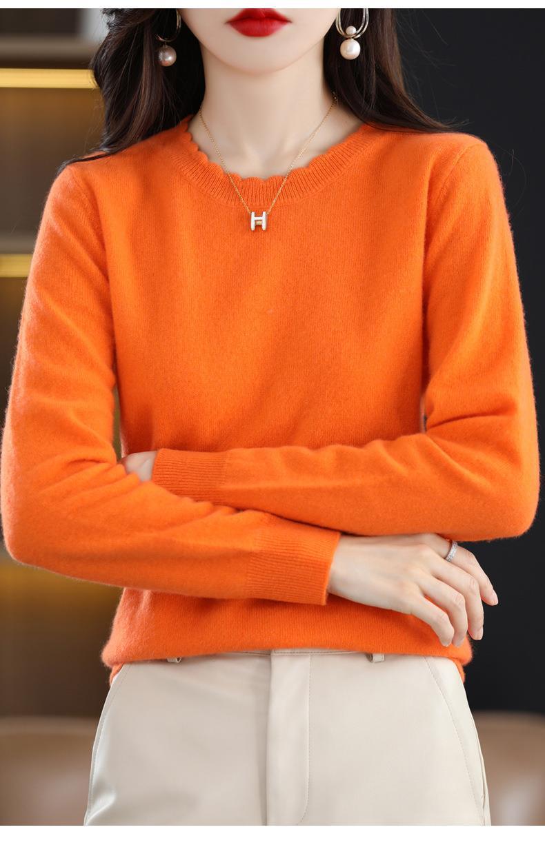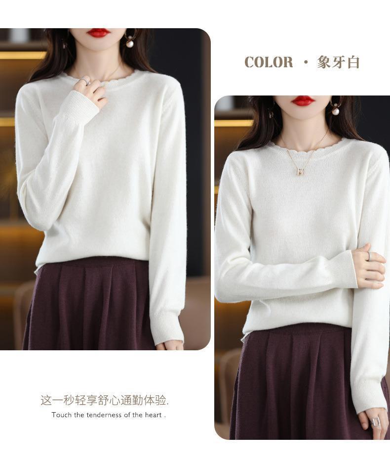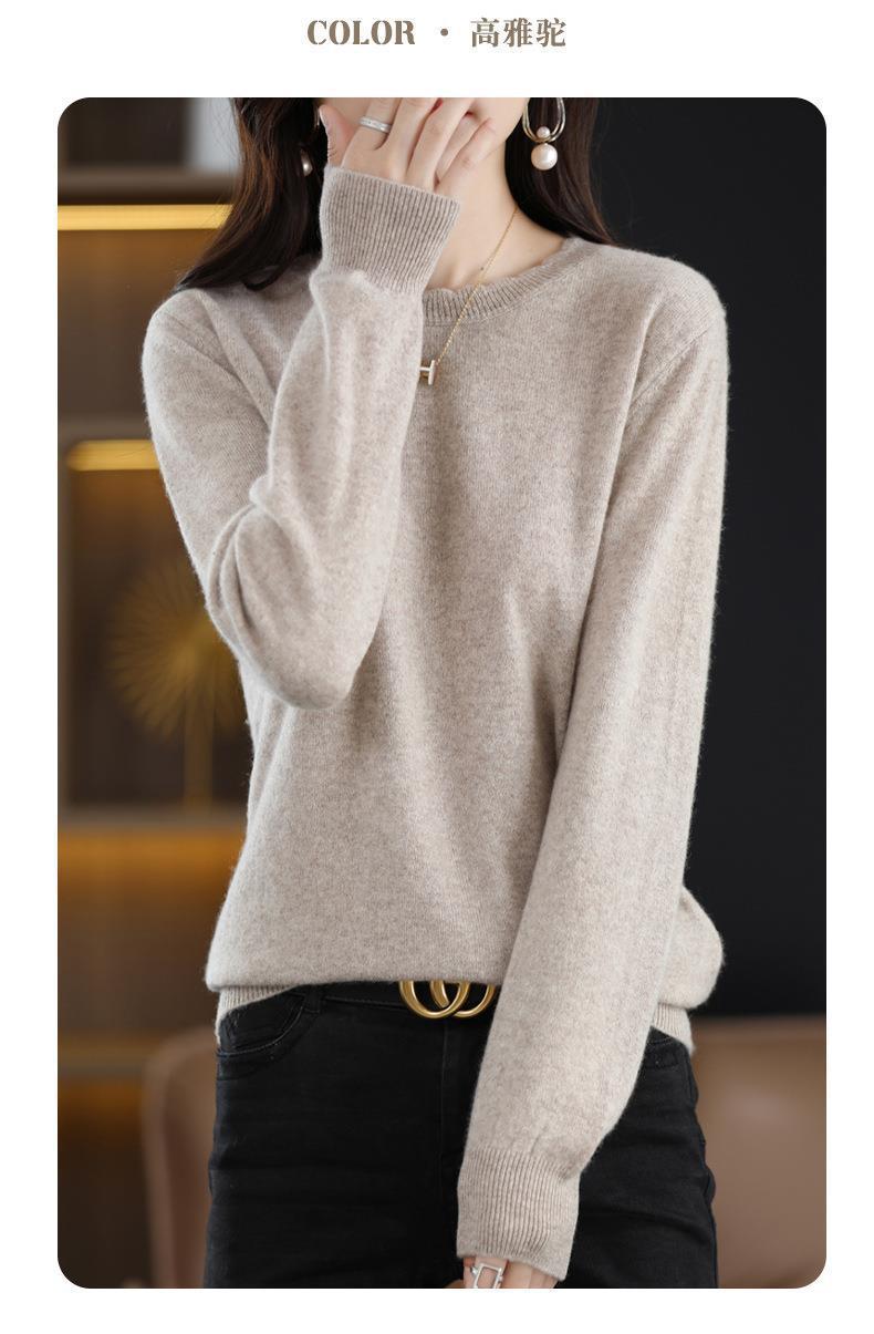 黄色圆领毛衣上衣长袖针织衫女款内穿外搭打底衫宽松气质毛衣