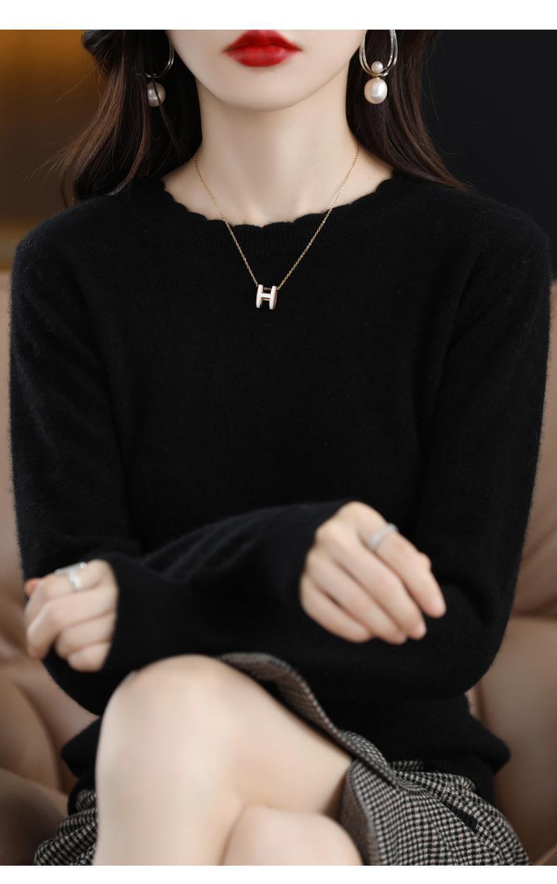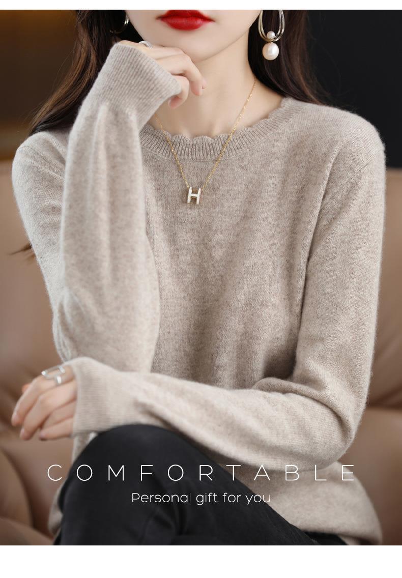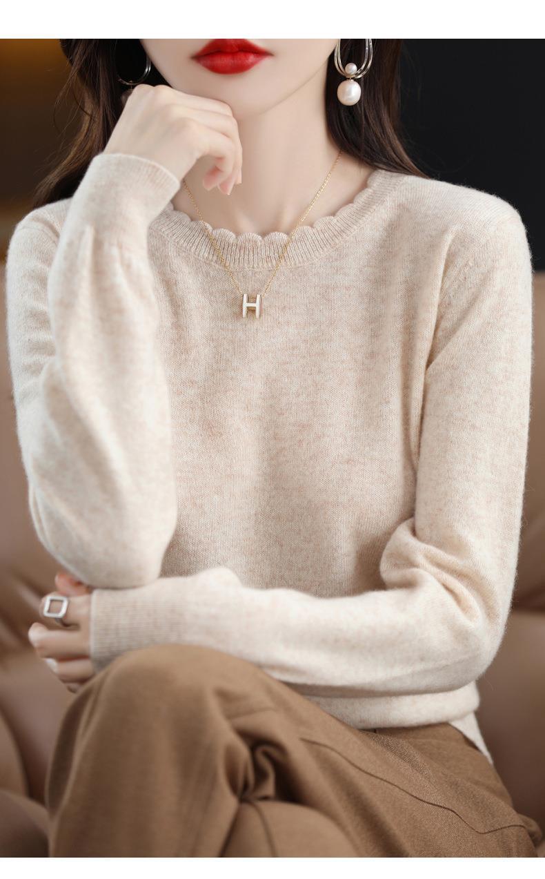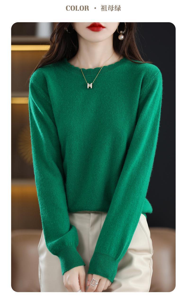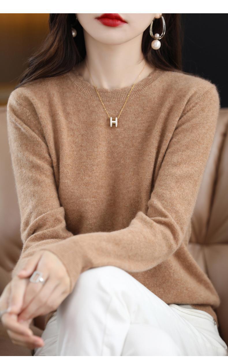 黄色圆领毛衣上衣长袖针织衫女款内穿外搭打底衫宽松气质毛衣