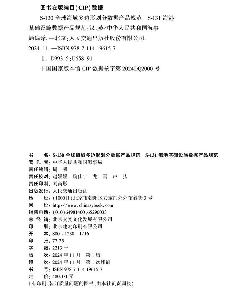 书名:S-130 全球海域多边形划分数据产品规范 S-131 海港基础设施数据产品规范
