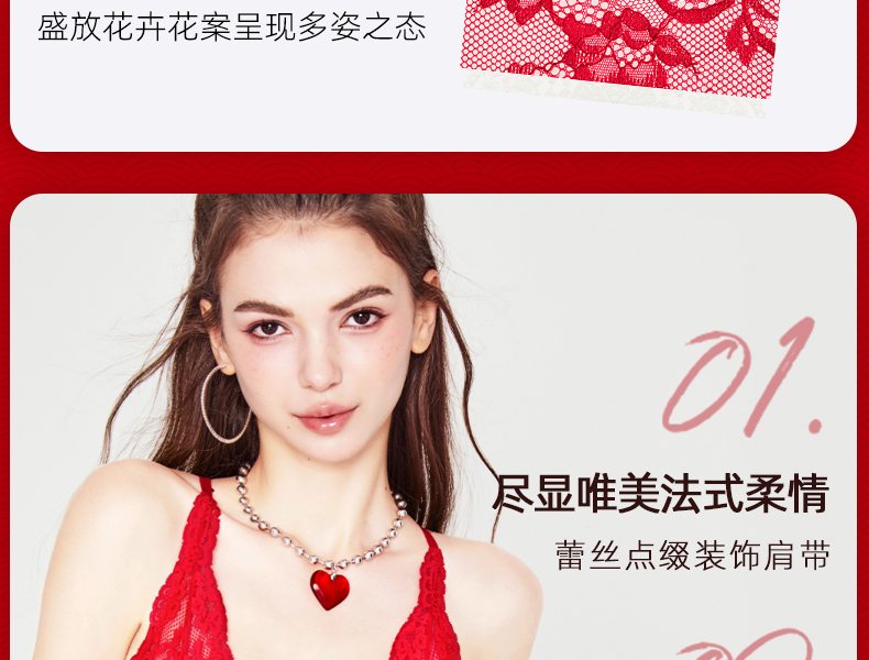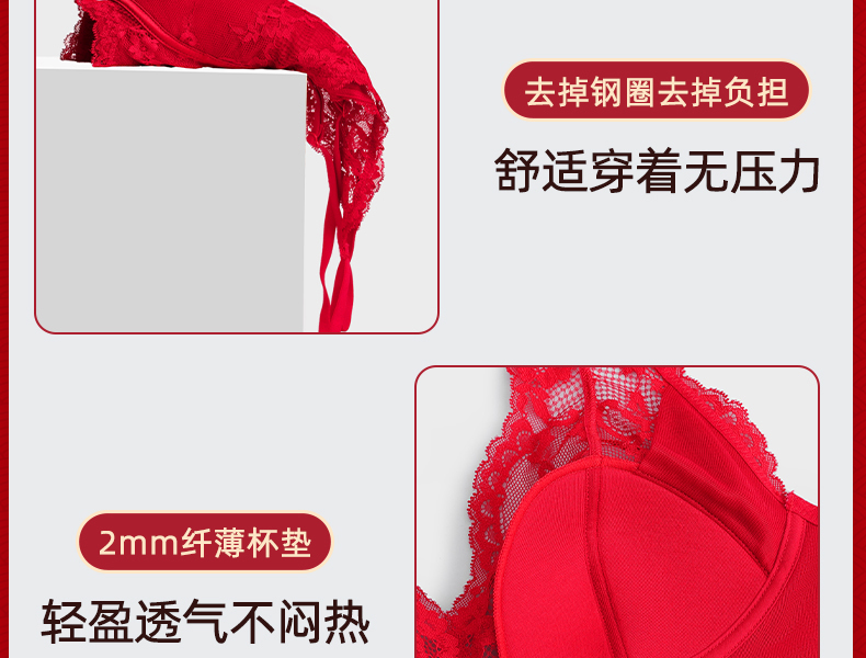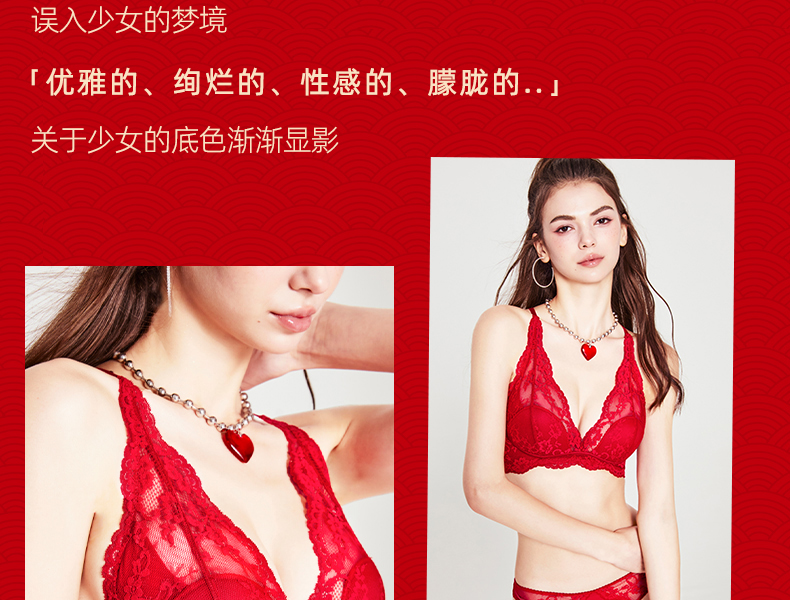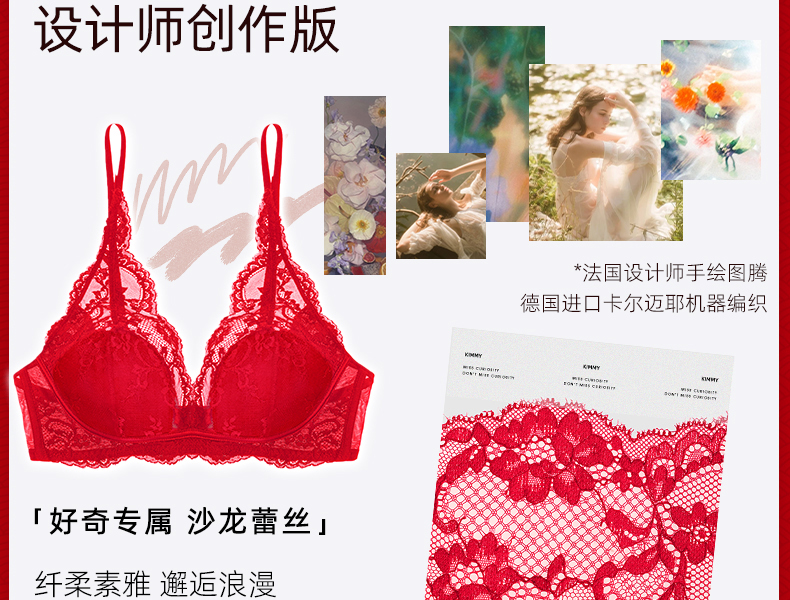 好奇蜜斯新娘结婚本命年红内衣女法式性感纯欲蕾丝内衣文胸罩套装-Kimmy 凯蜜