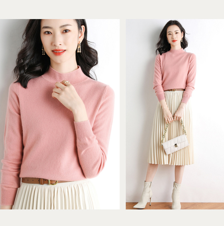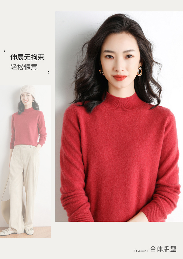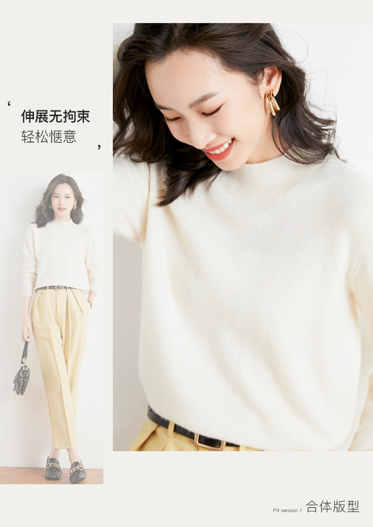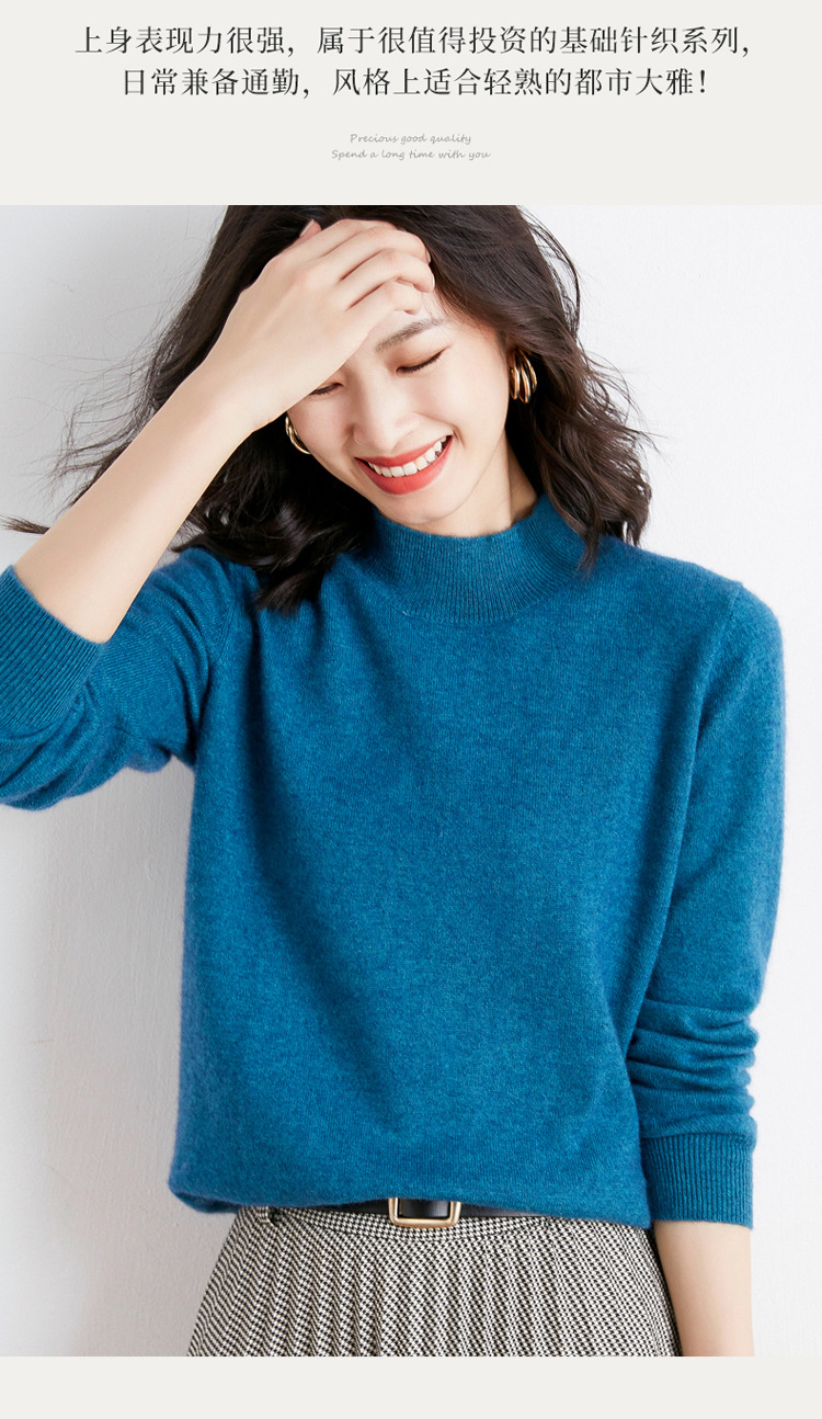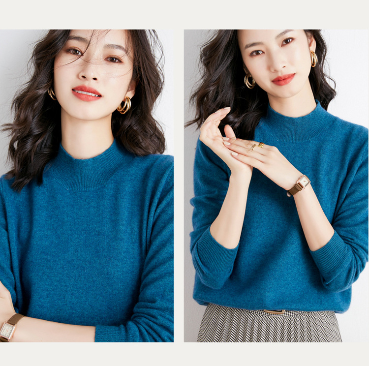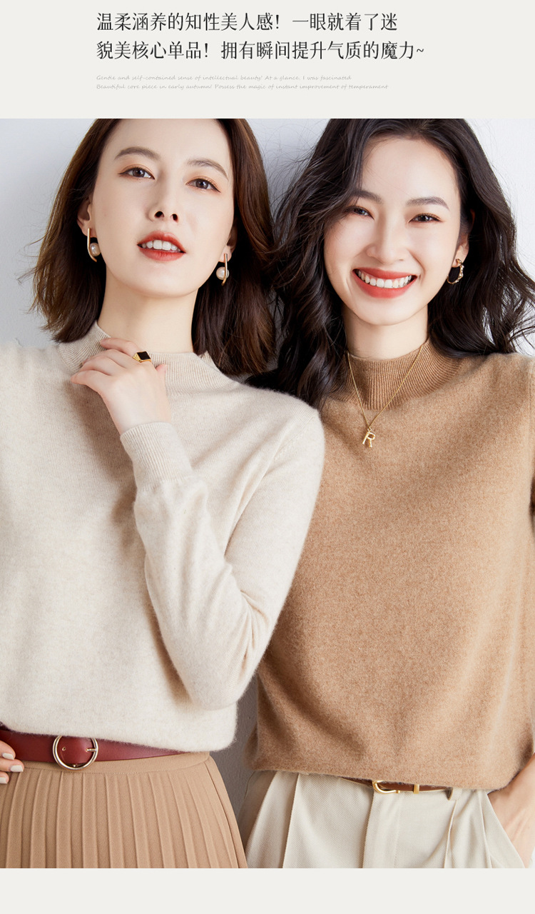 【拍2件99元】羊毛混纺2022秋冬女士半高领织衫毛衣