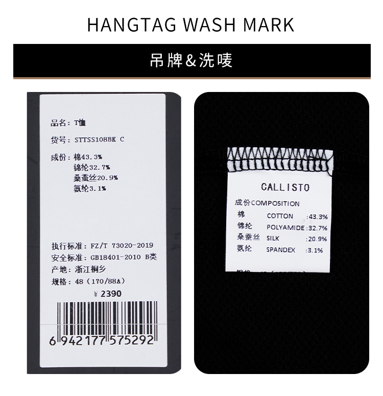 callisto黑色棉混纺T恤 STTSS108C
