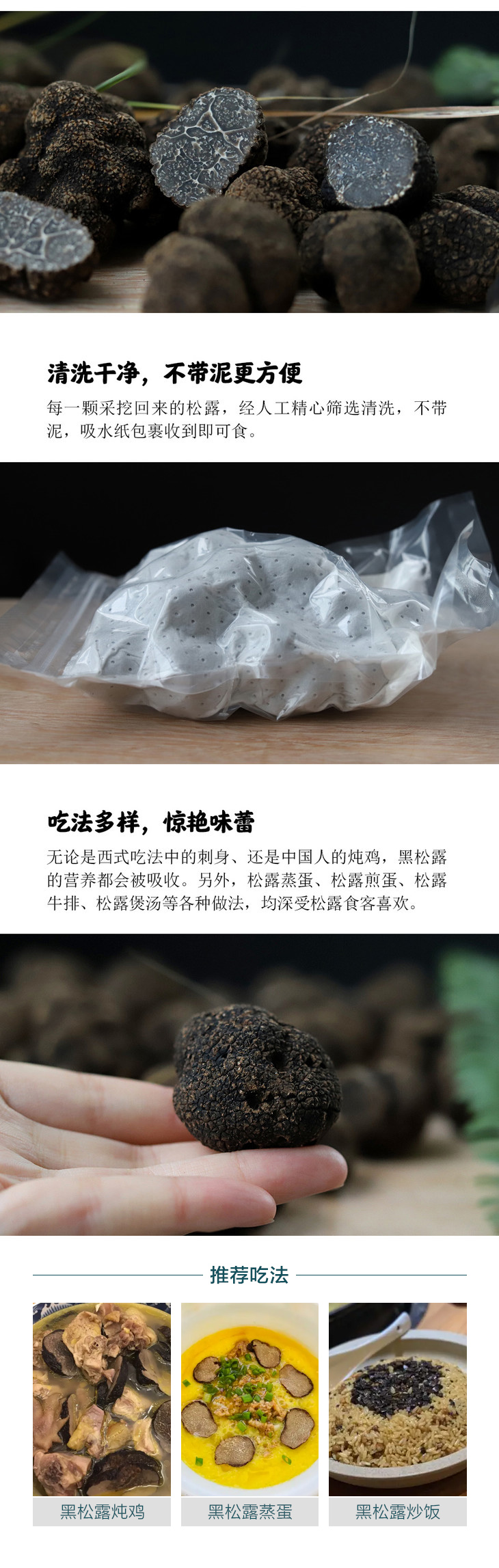 【重量】:1斤 【大小】:3-5cm,5cm以上 【采挖标准】:野生采挖,7分熟以上 【采挖者】:大凉山当地彝民 【采挖地】:四川省凉山彝族自治州 【品控】:廖敏 【保存方法】:用吸水纸包上再用保鲜膜冷藏保鲜,可保存7天左右。清洗干净,用厨房纸把表面水份吸干,密封冷冻,随用随取。 发货时间:川渝陆运,其他地区顺丰空运,下单48小时发出(遇节假日顺延) 【注意事项】: 1、野生松露,可能有虫眼,我们尽量挑出,偶有虫眼,不影响食用不售后,望理解。 2、受天气或库存等原因影响快递可能偶有耽误,急单请发货前咨询客服。本品为生鲜,请勿拒收,拒收则无法进行售后。 3、已发货后不接受退款申请。生鲜产品,快递抵达后请尽快取件。