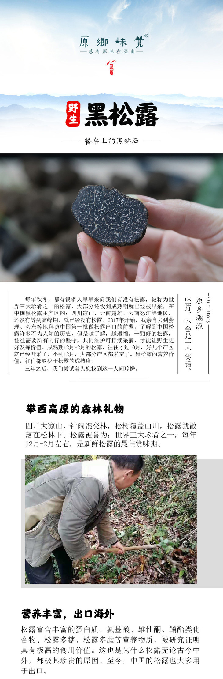 - 【总有原味在深山】——原乡味觉,追寻自然的脚步,尊重土地与时令,我们翻山越岭,深入原乡,回到食材的原籍,守候食味的初相,让我们再一次发现人与食物的美好关系!物尽其用,方为惜物,所有食材包装皆可重复利用