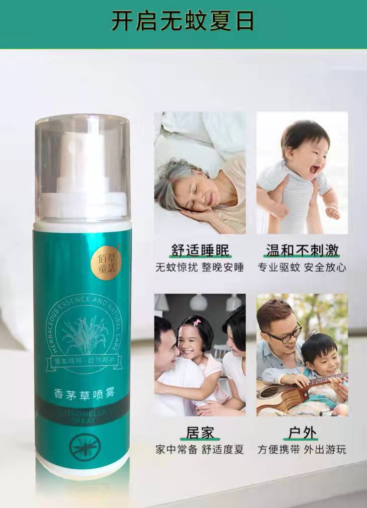 【香茅草驱蚊喷雾60ml*4瓶】佰草童话有效防蚊虫,植物精油成分,温和安全,老人小孩都可以使用,防蚊虫时间2-4小时【新疆西藏+15元】