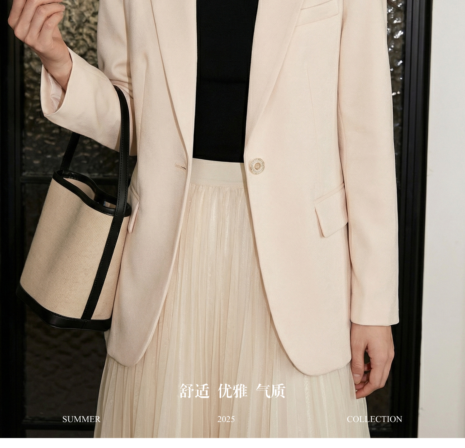 米思阳2026春季新款高端醋酸小西装一粒扣修身通勤西服外套女4119