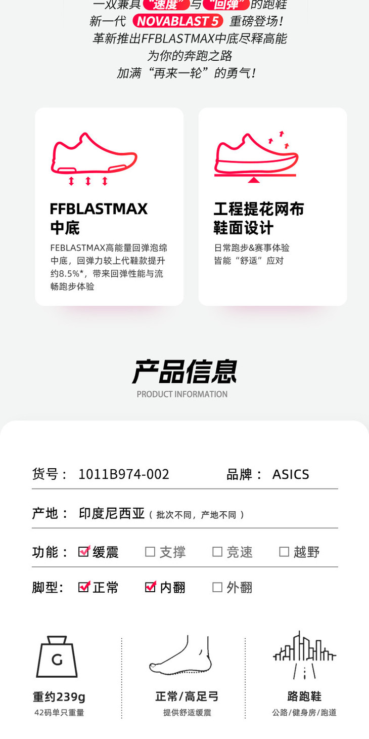 【奥莱仓直发】ASICS亚瑟士NOVABLAST 5 跑鞋马拉松轻量缓震支撑回弹运动鞋