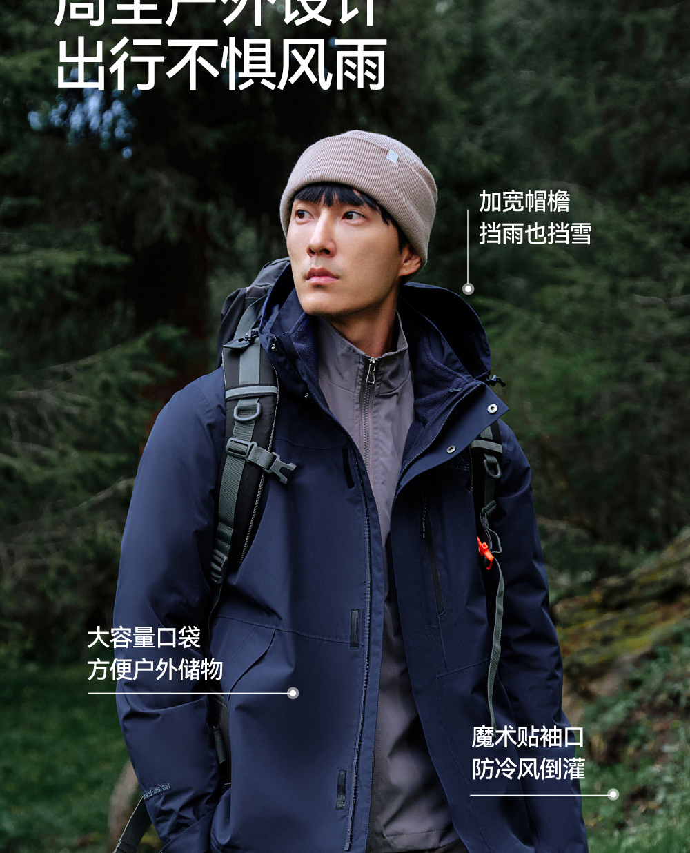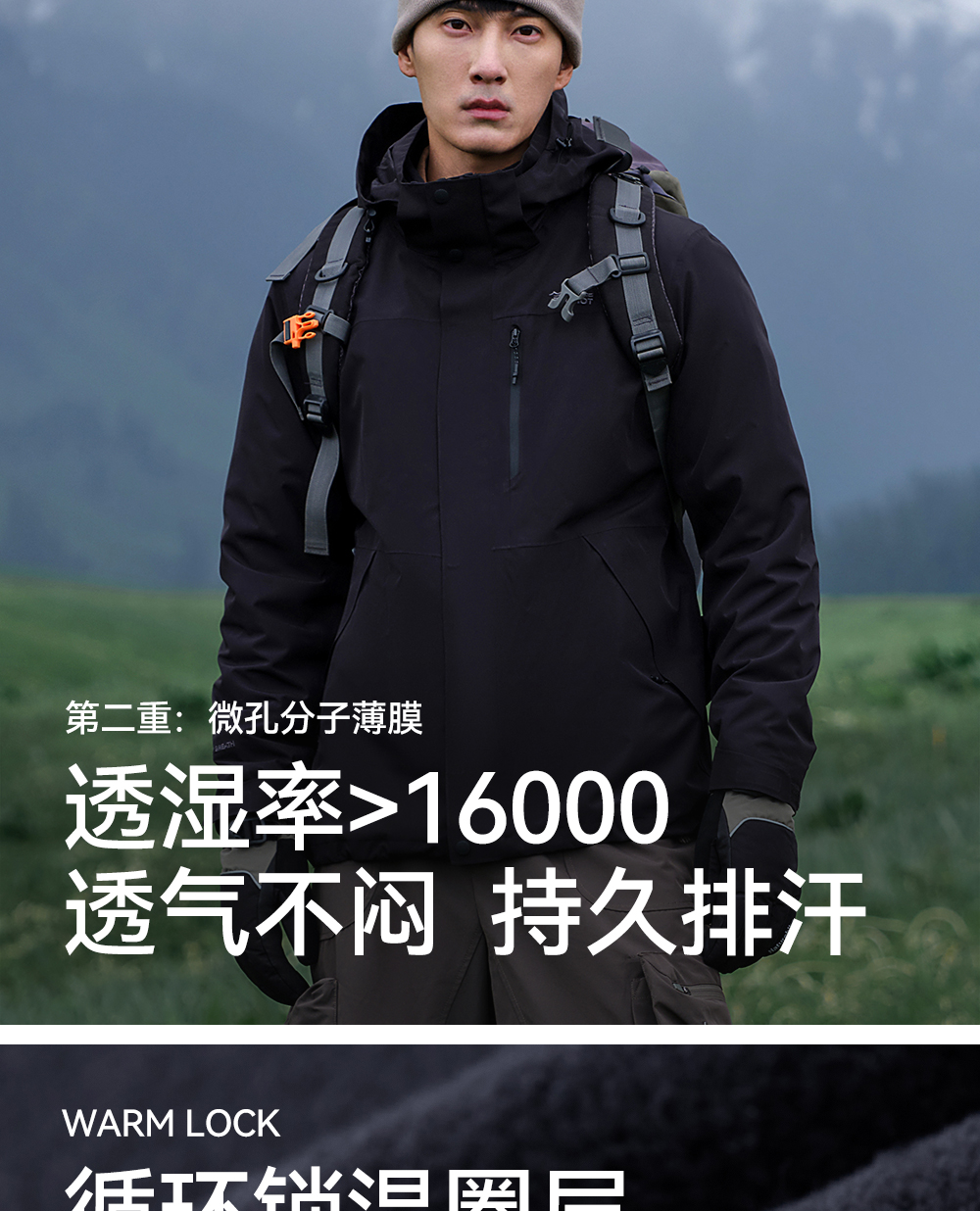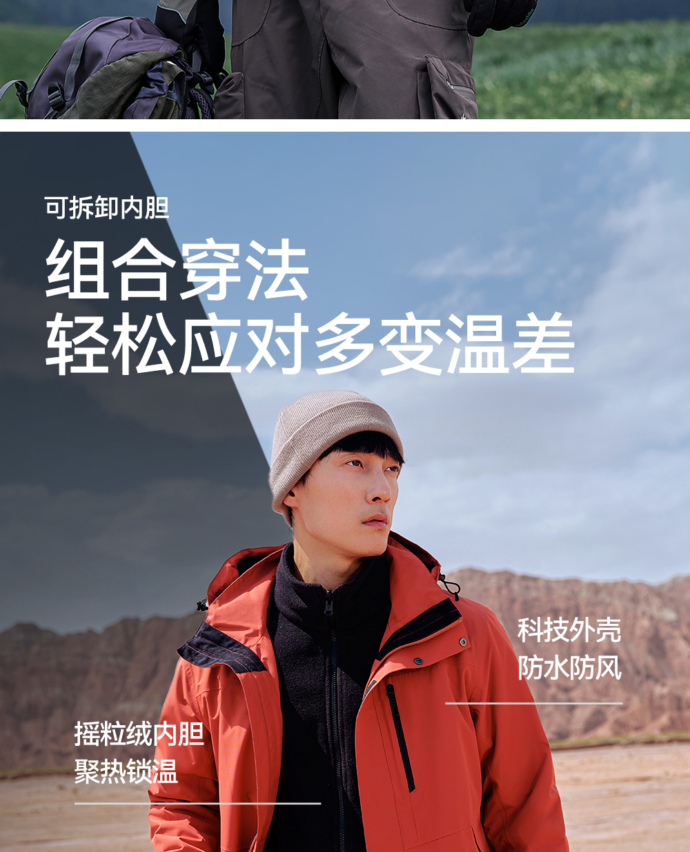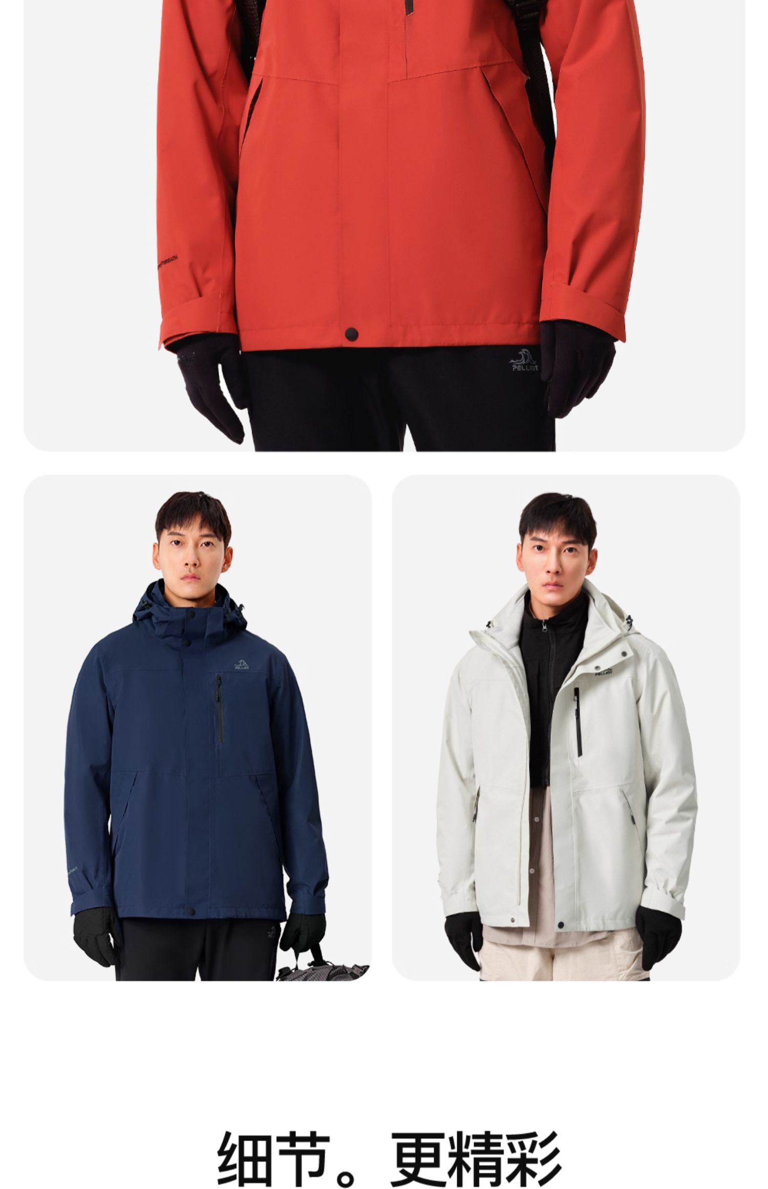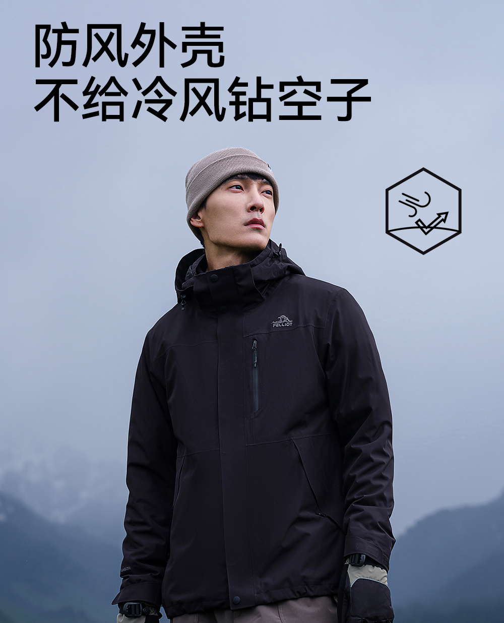 【经典2.0】伯希和户外冲锋衣男款冬季抓绒内胆三合一防水外套女