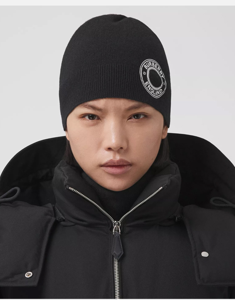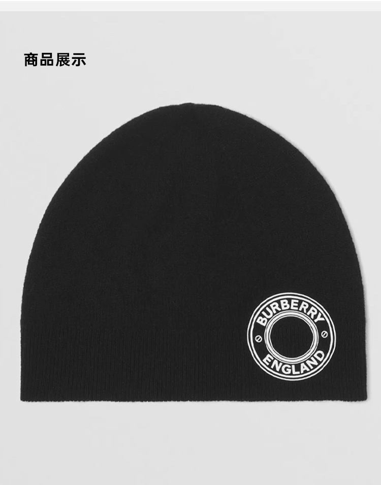 BURBERRY 巴宝莉 男女同款徽标图案羊绒毛线针织帽 黑色 8045083 A1189