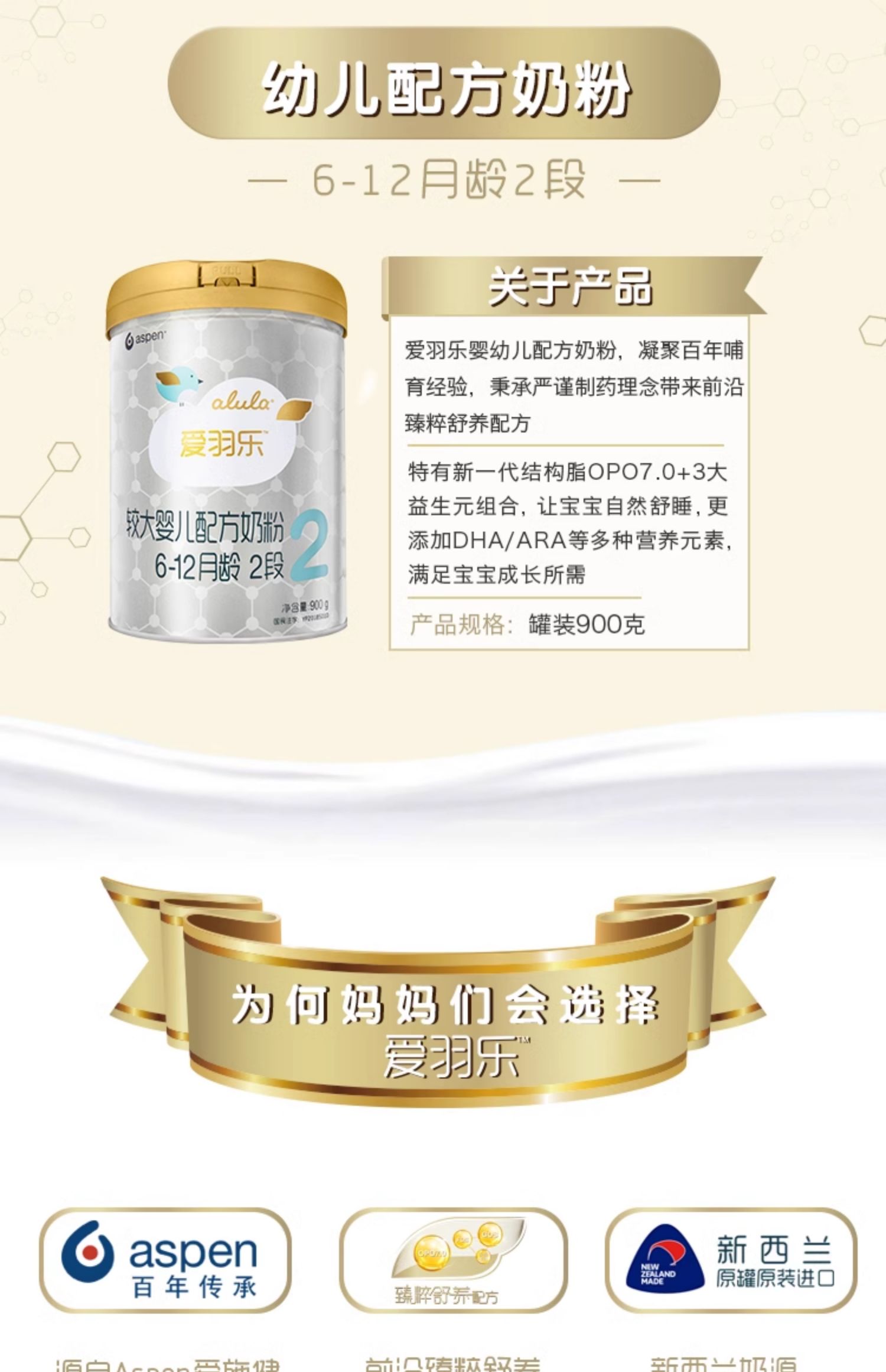 爱羽乐2段婴儿配方奶粉900g