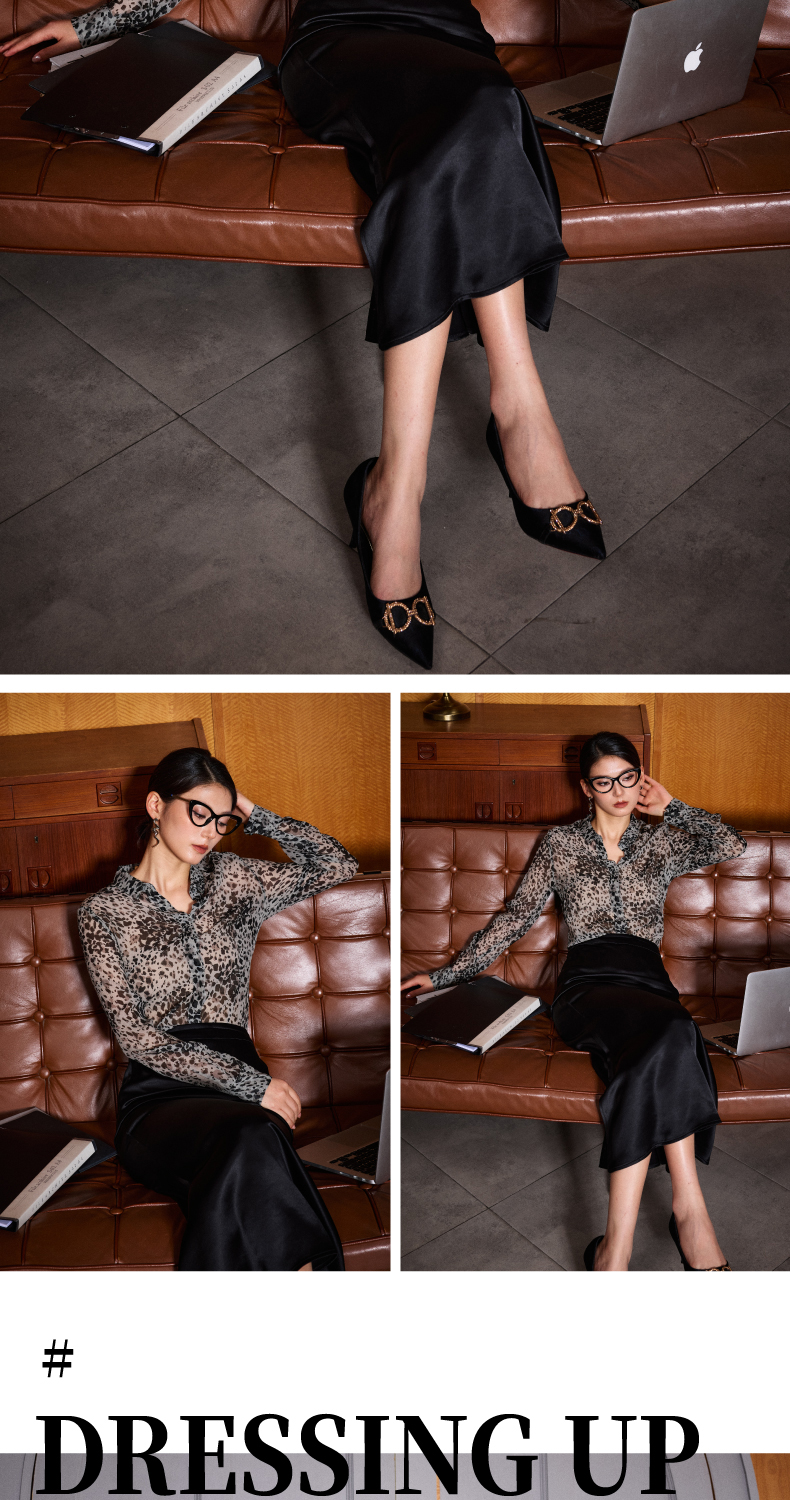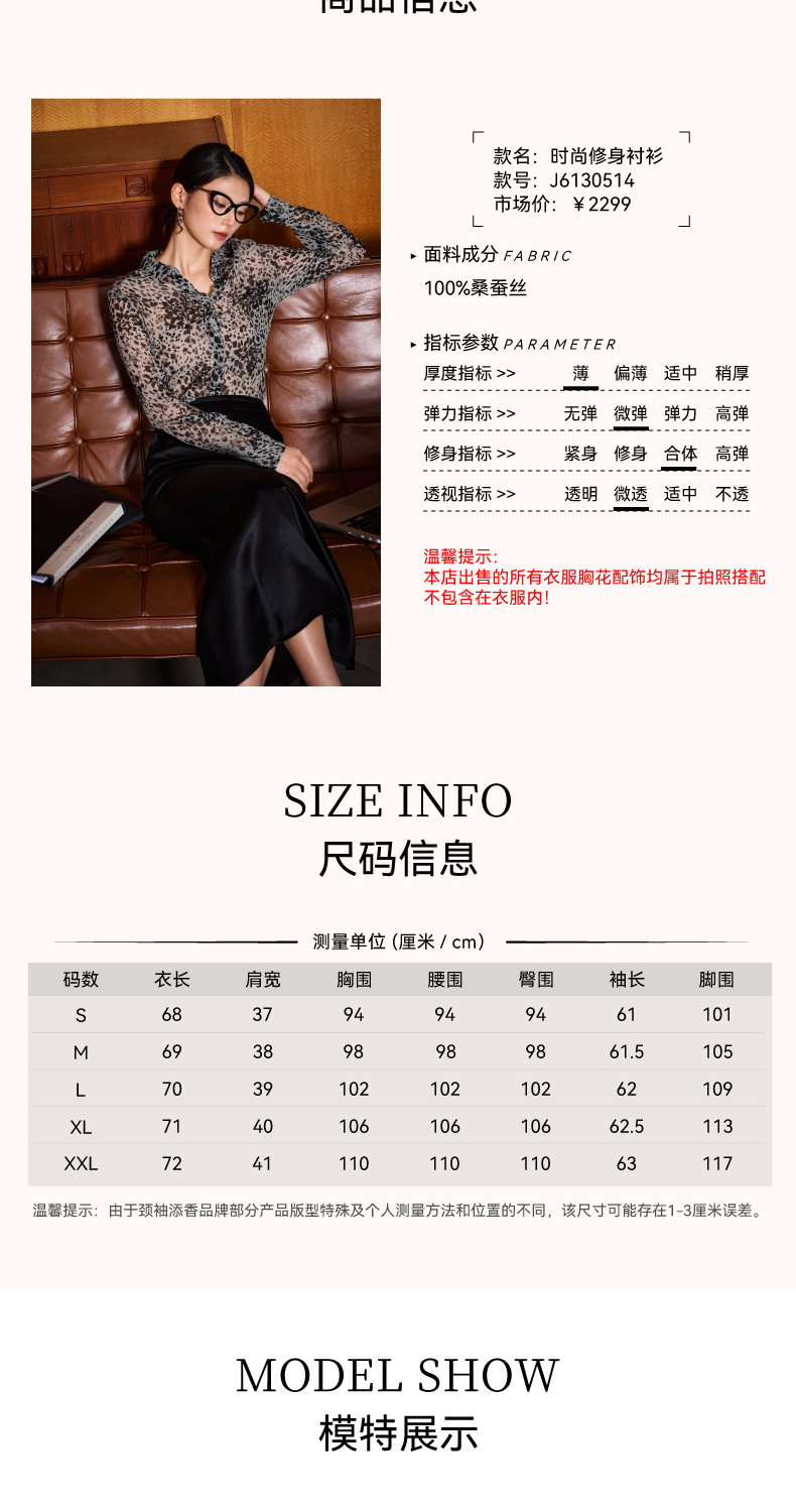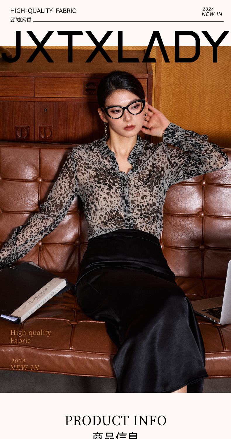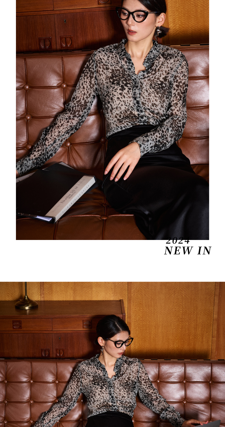 “迷雾清晨“灰色豹纹小众法式衬衫100%桑蚕丝四季可穿上衣6130514颈袖添香
