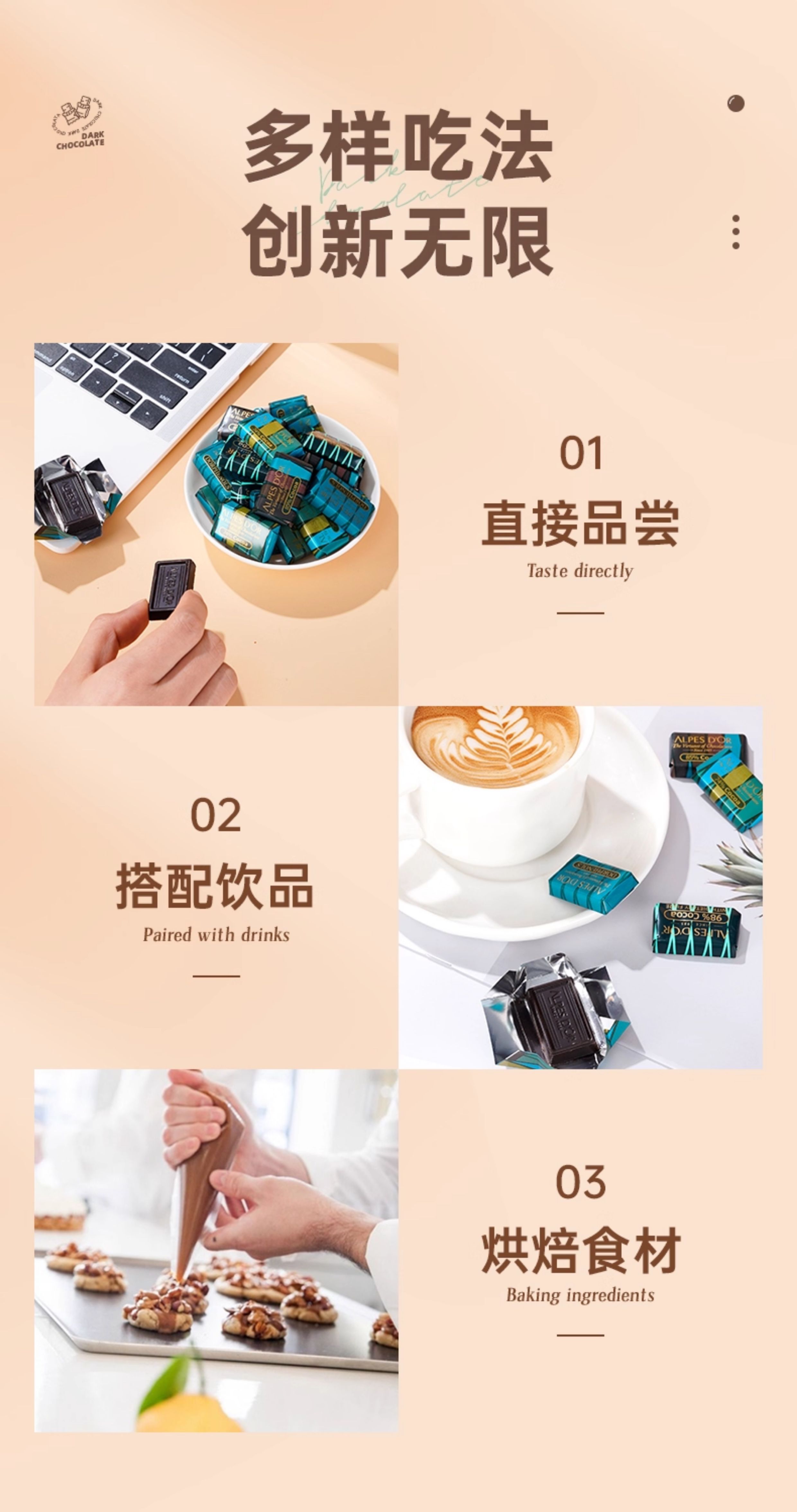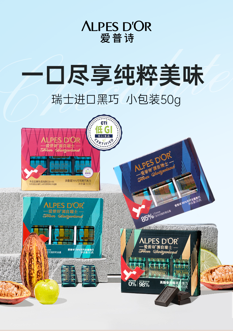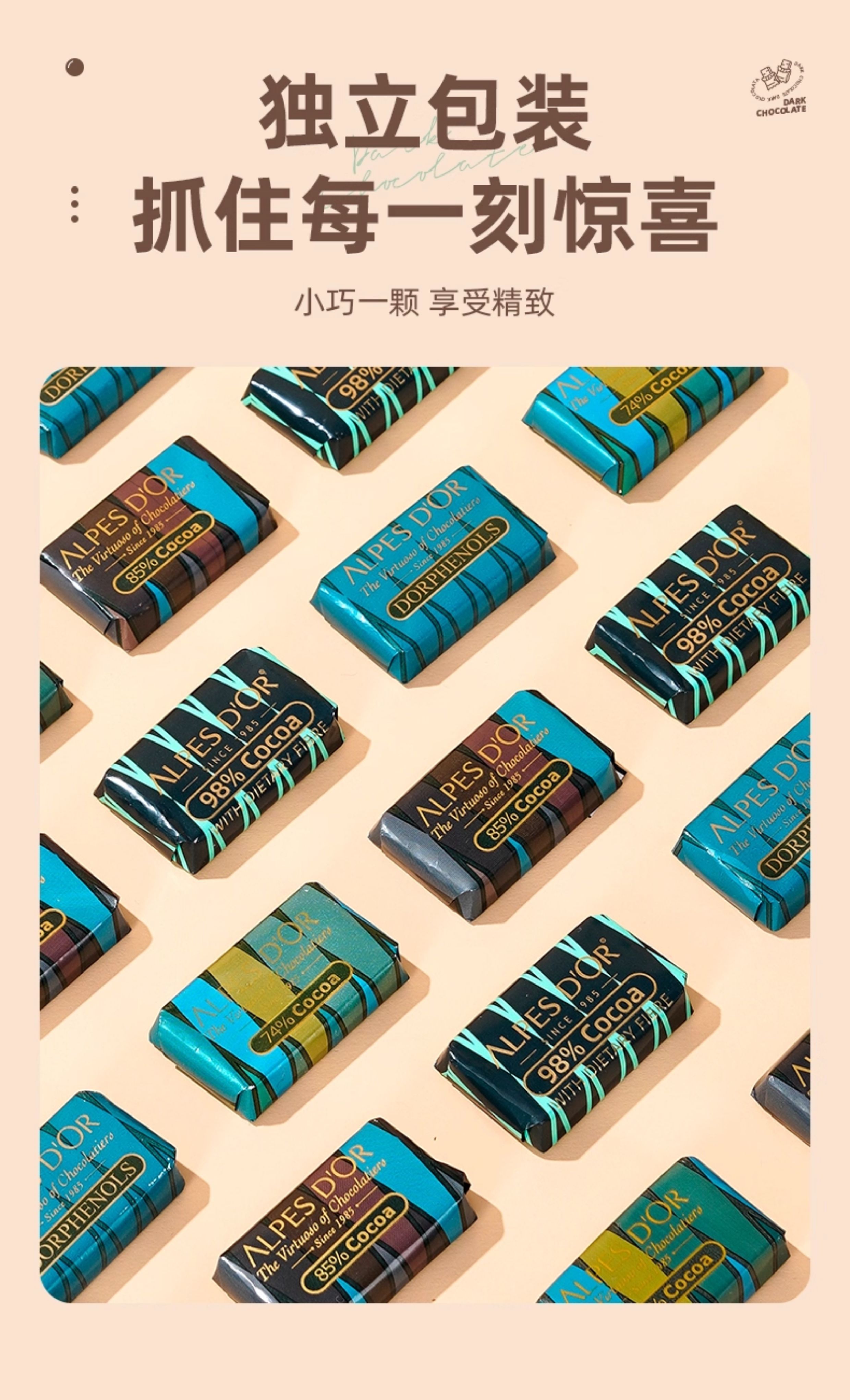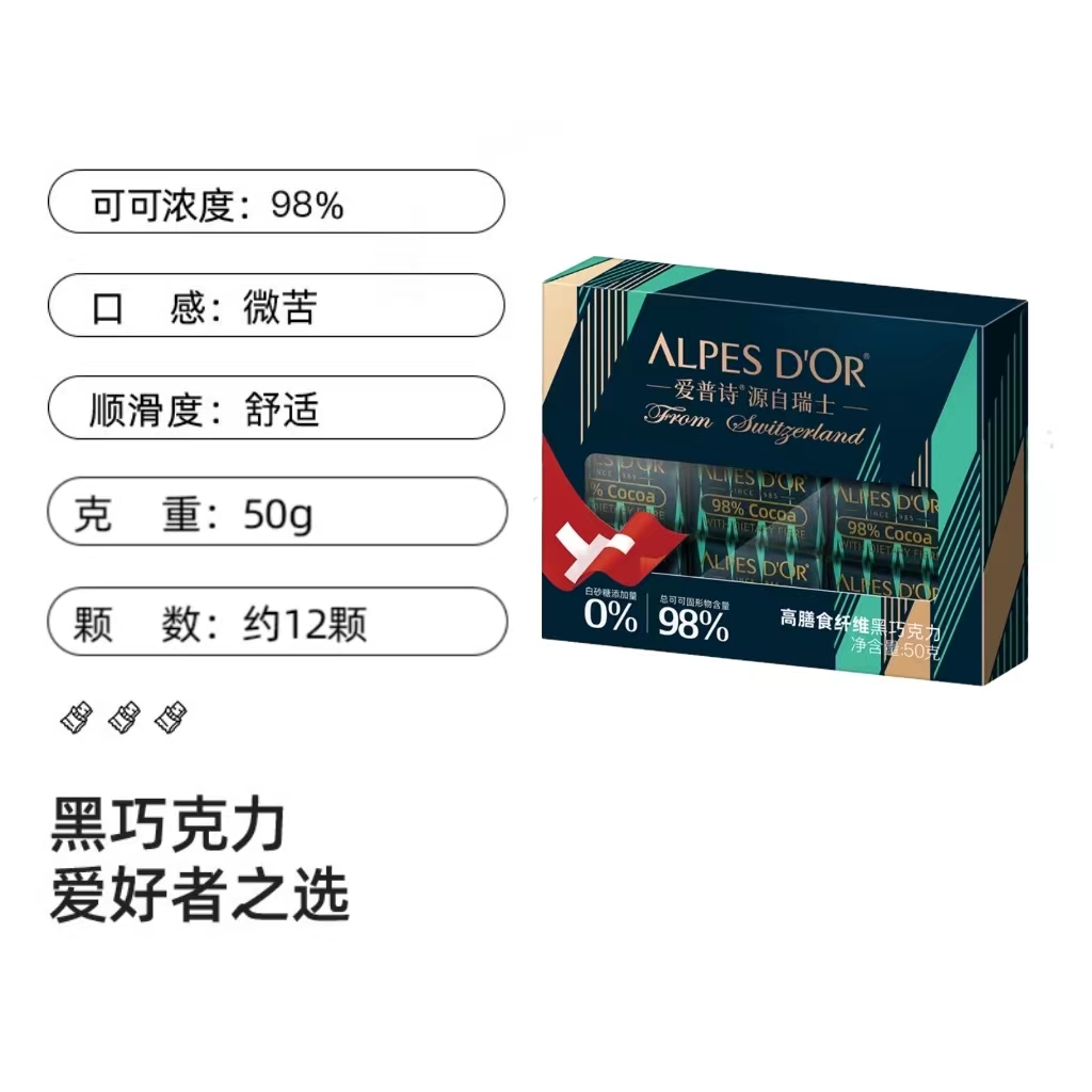 【瘦身 提高代谢 饱腹感】瑞士进口爱普诗纯可可脂特醇黑巧克力98%黑巧小排块片装多规格26g/35g/50g/80g/120g