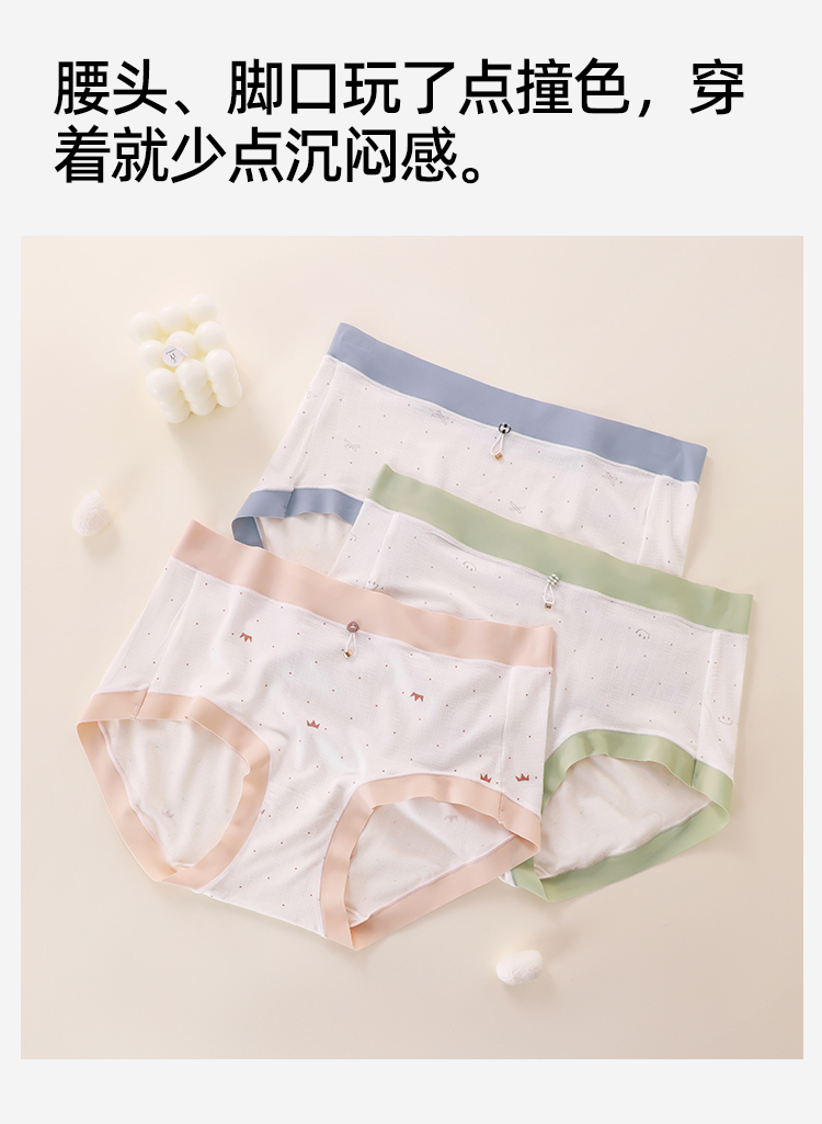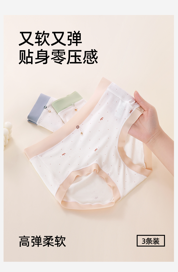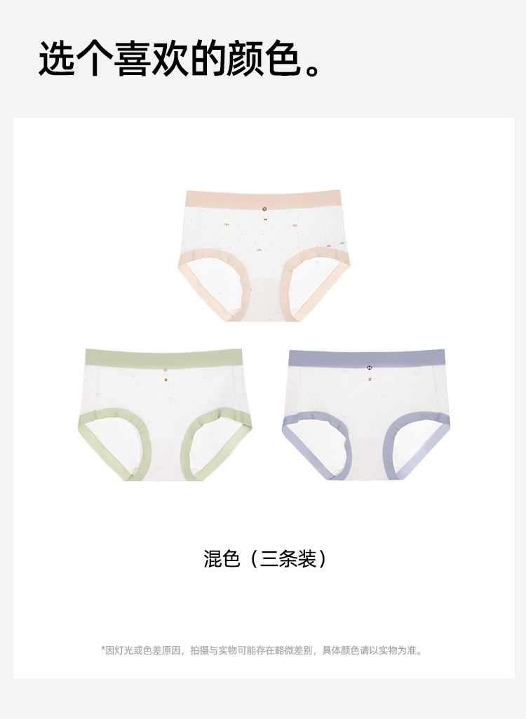 【3条装】熳洁儿 莫代尔女士内裤中腰撞色含桑蚕丝包臀25262103