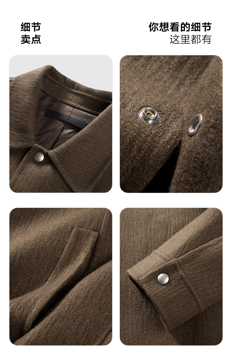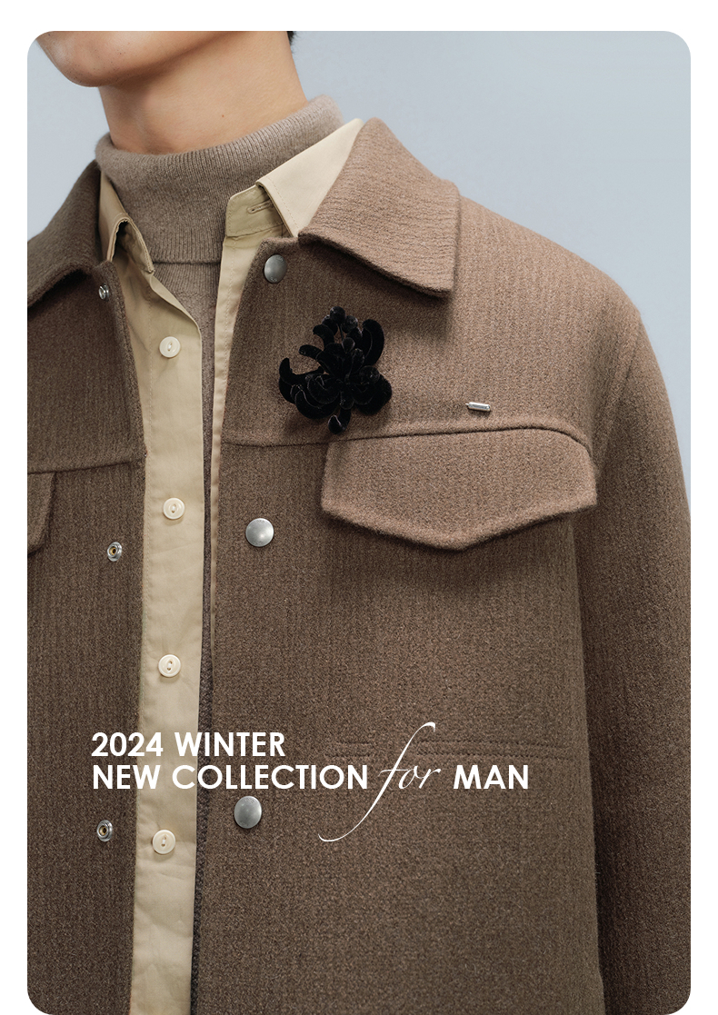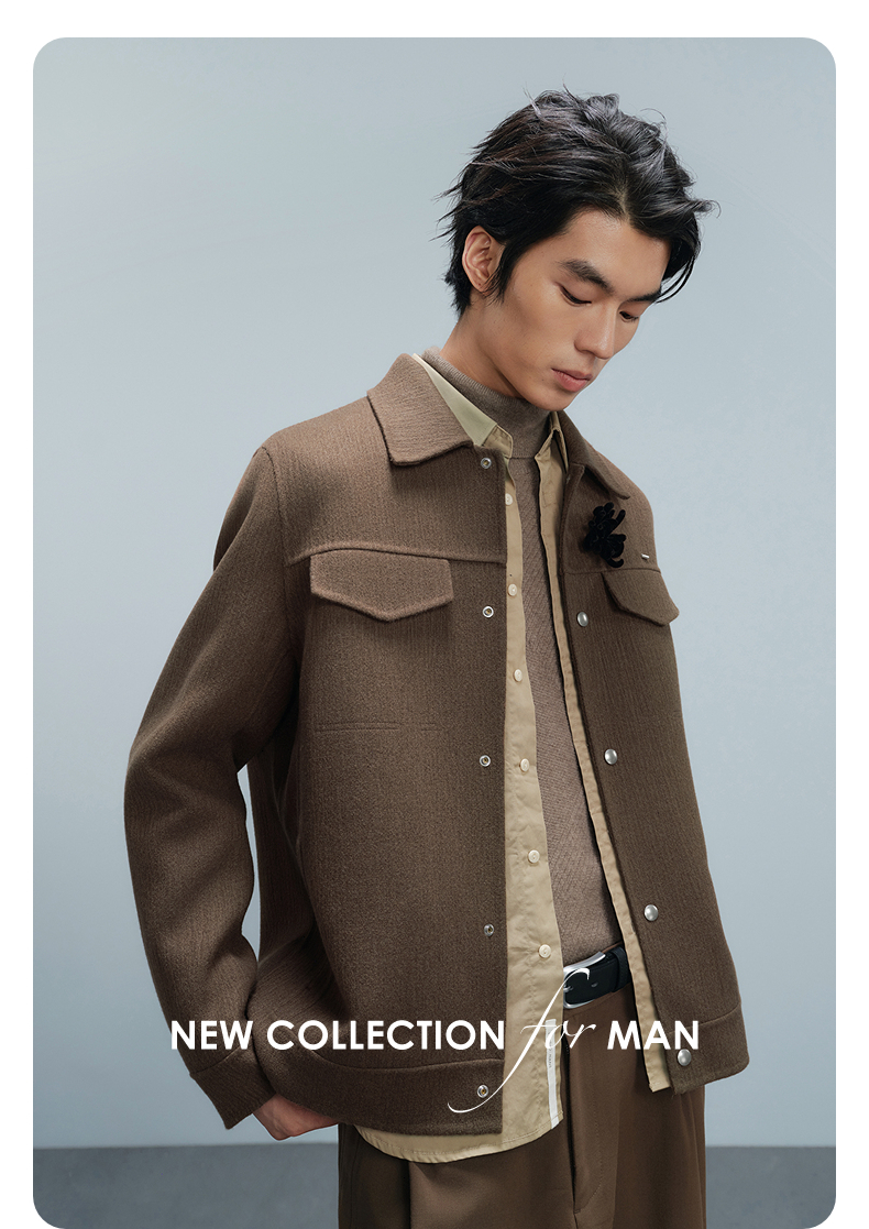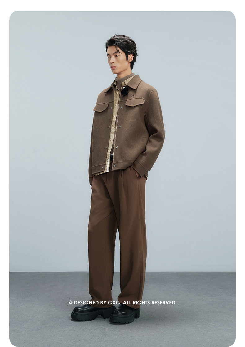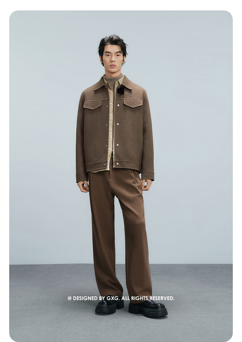 GXG男装 咖色肌理通勤短款大衣外套 24冬热卖G24X064004