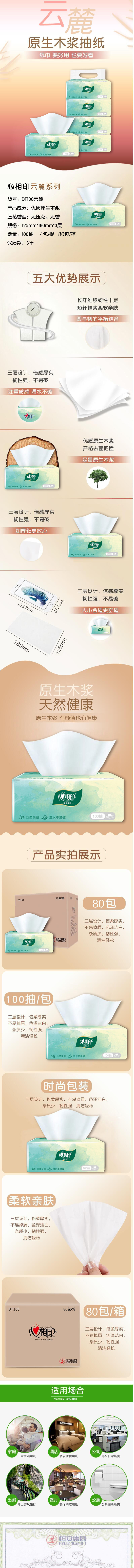 心相印云麓系列三层100抽塑装纸面巾4包单提