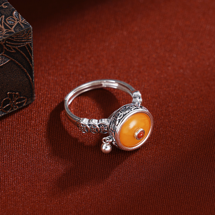 子佩集S925银【福字平安】戒指【JZ06834】纯银古法银可转动蜜蜡南红转经筒2411