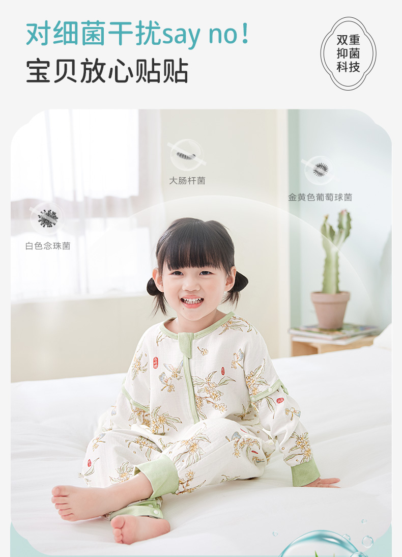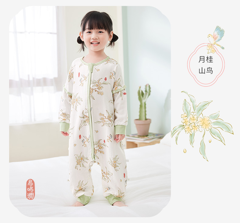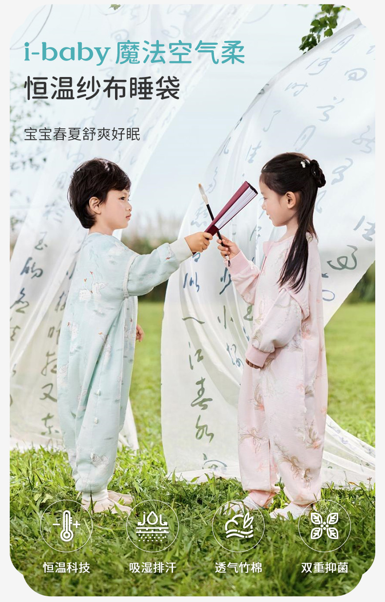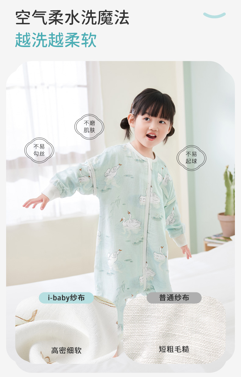 *i-baby诗画长安系列春夏四季四层纱布恒温分腿睡袋宝宝防踢被春夏睡衣儿童分腿睡袋