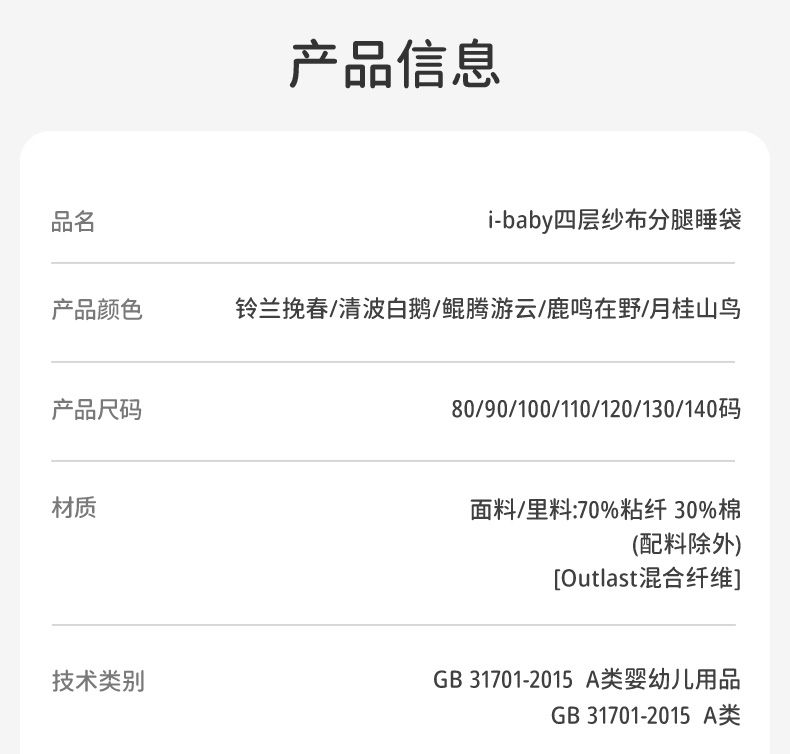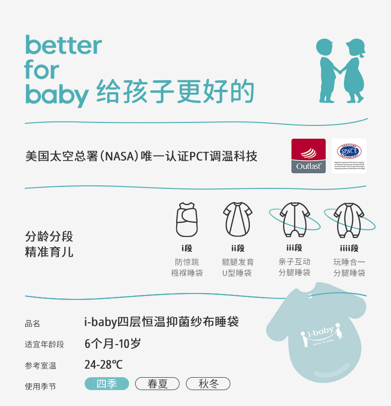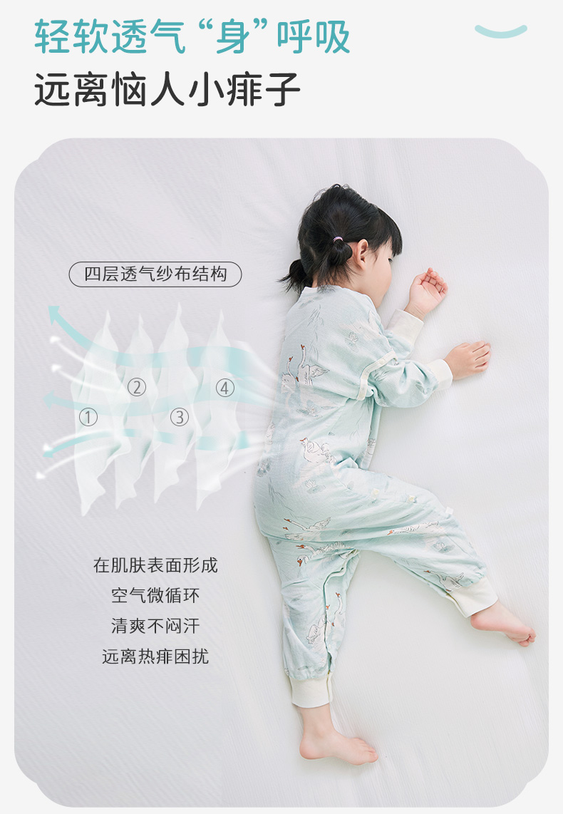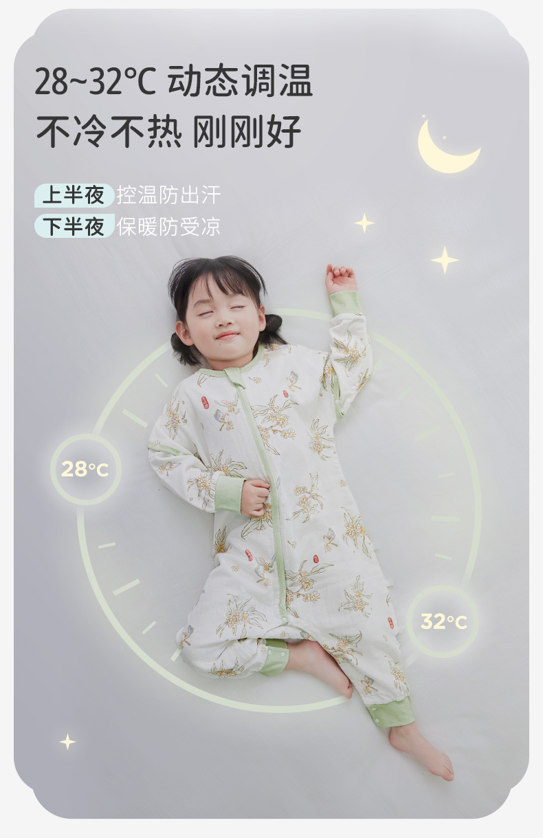 *i-baby诗画长安系列春夏四季四层纱布恒温分腿睡袋宝宝防踢被春夏睡衣儿童分腿睡袋