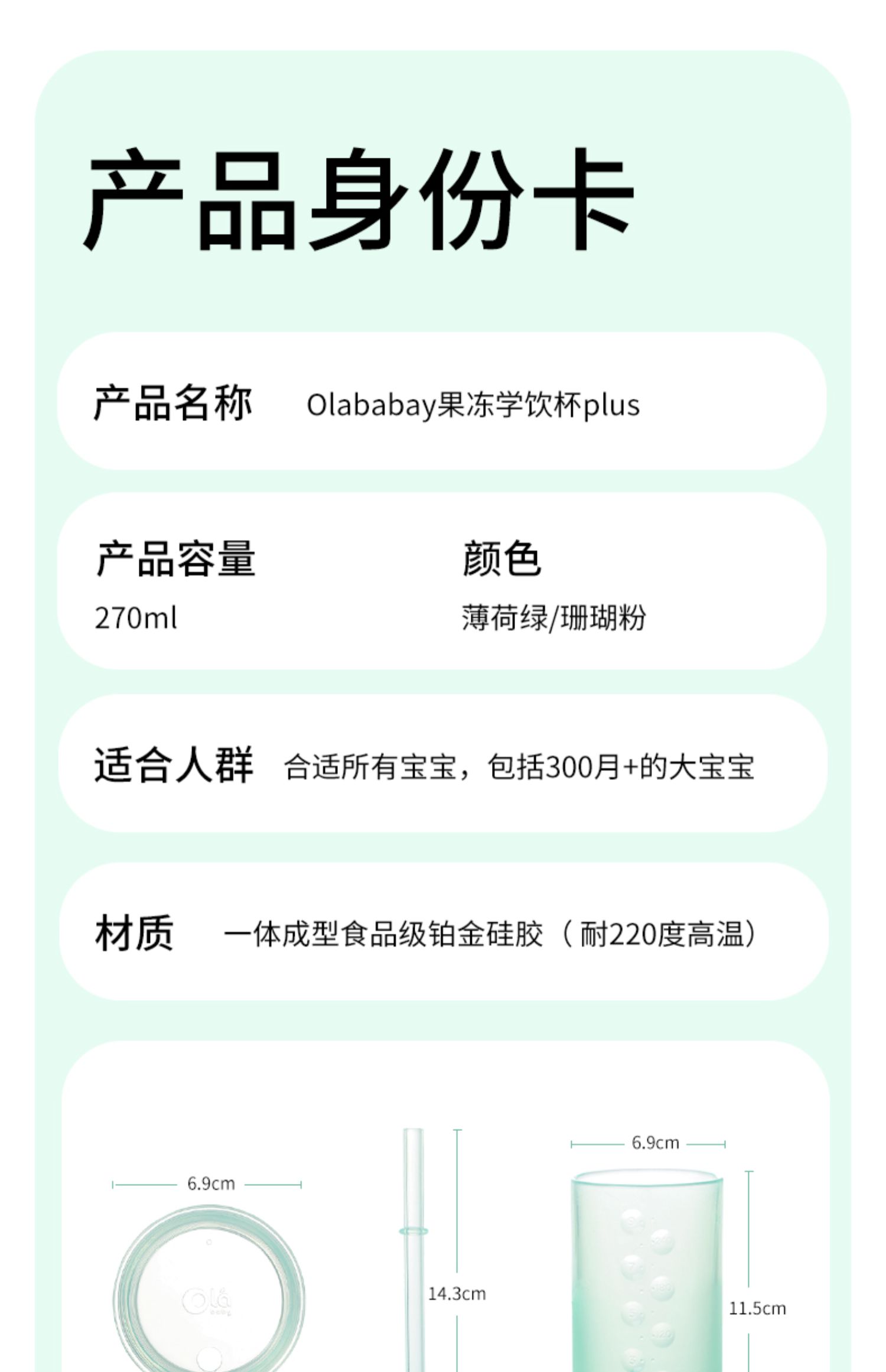 *Olababy果冻学饮杯&杯盖吸管配件-赠吸管刷(150ml / 270ml)(餐具属个人卫生产品,一经拍下不支持七天无理由退换货)