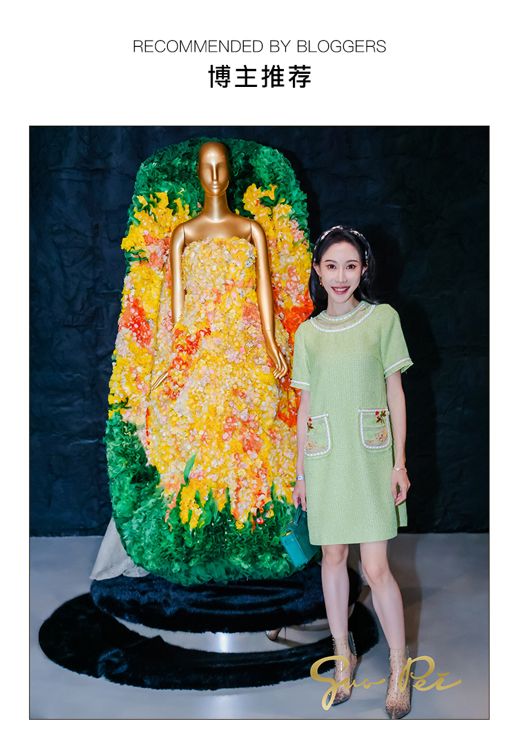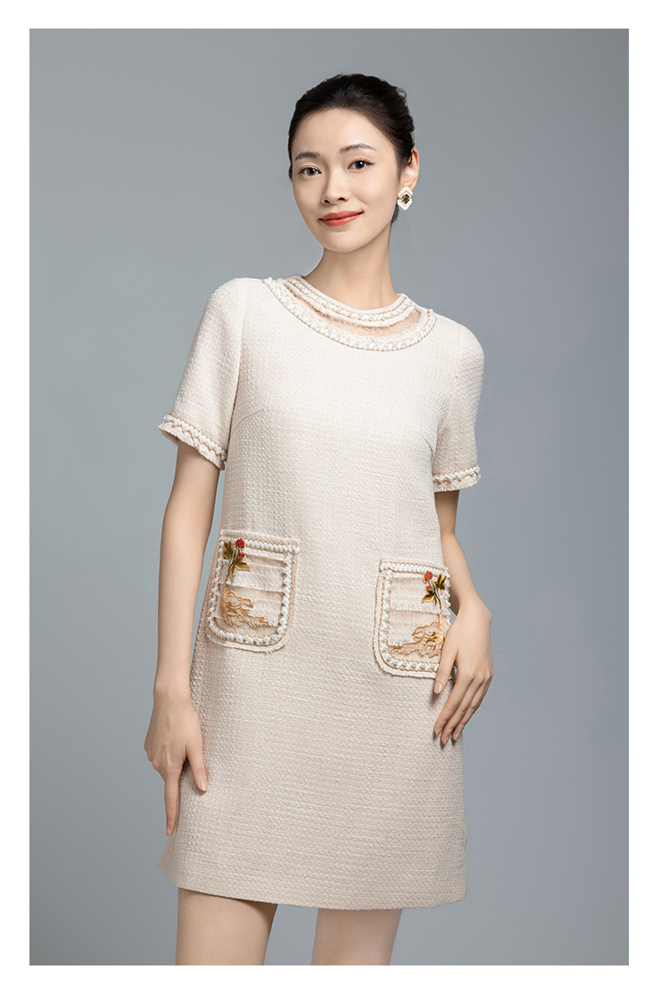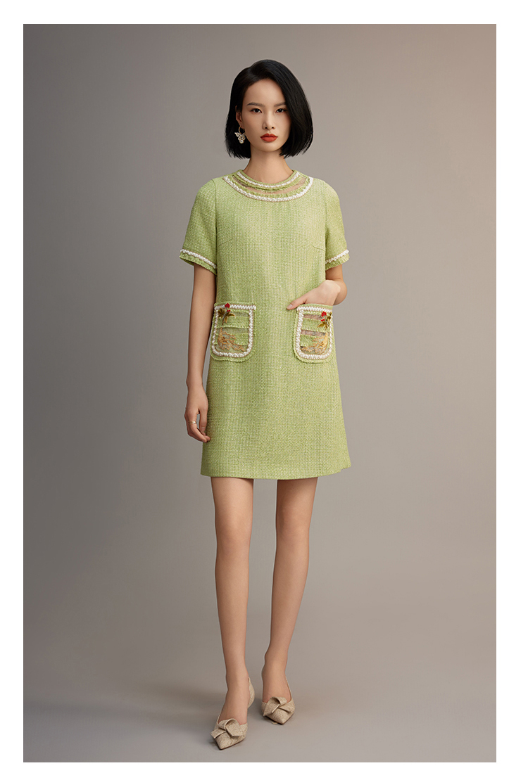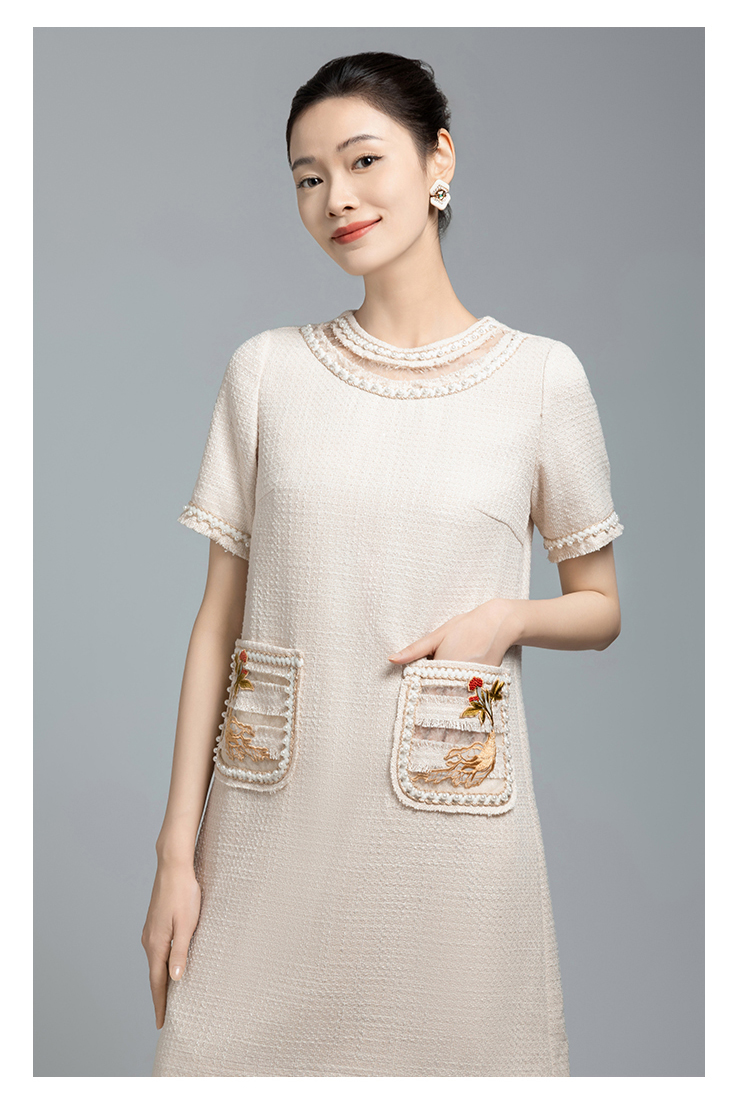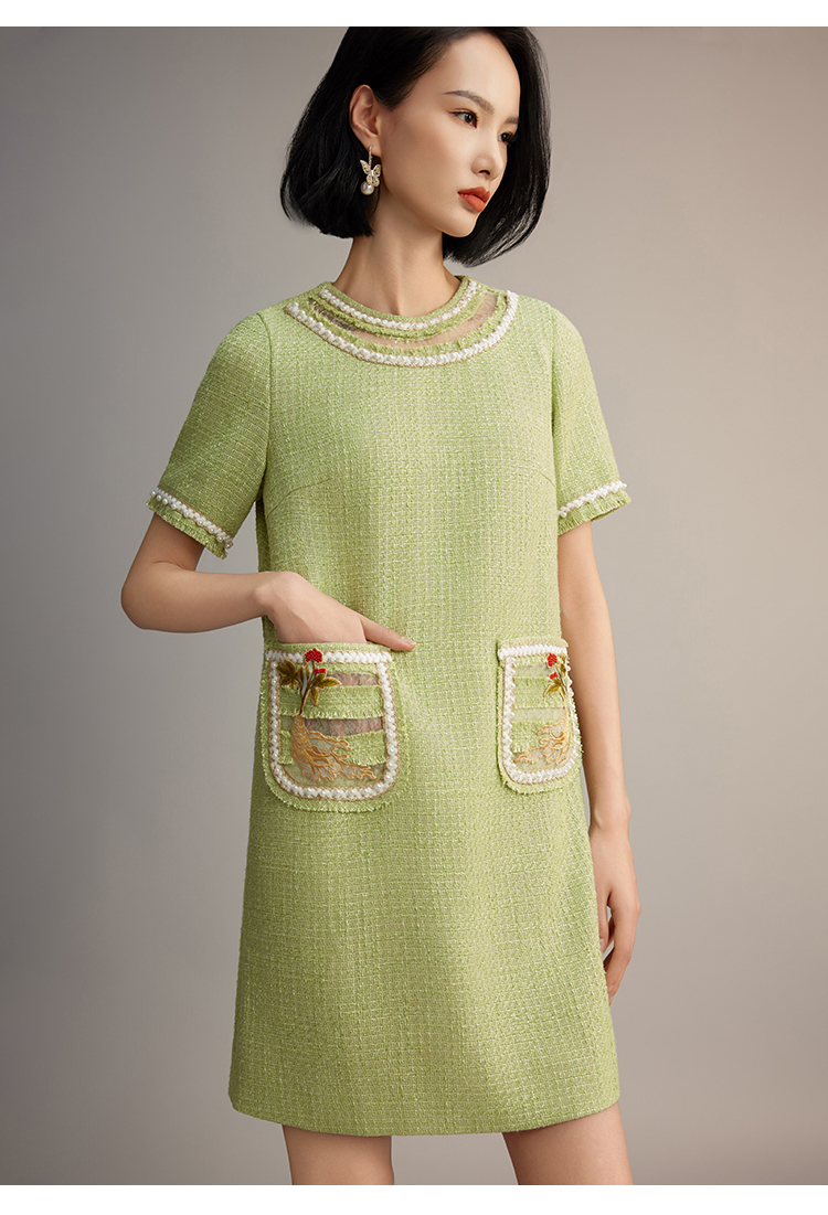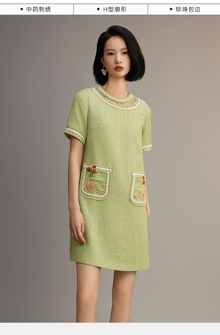 郭培成衣品牌【“药”爱自己】编织装饰领斜纹呢人参刺绣连衣裙