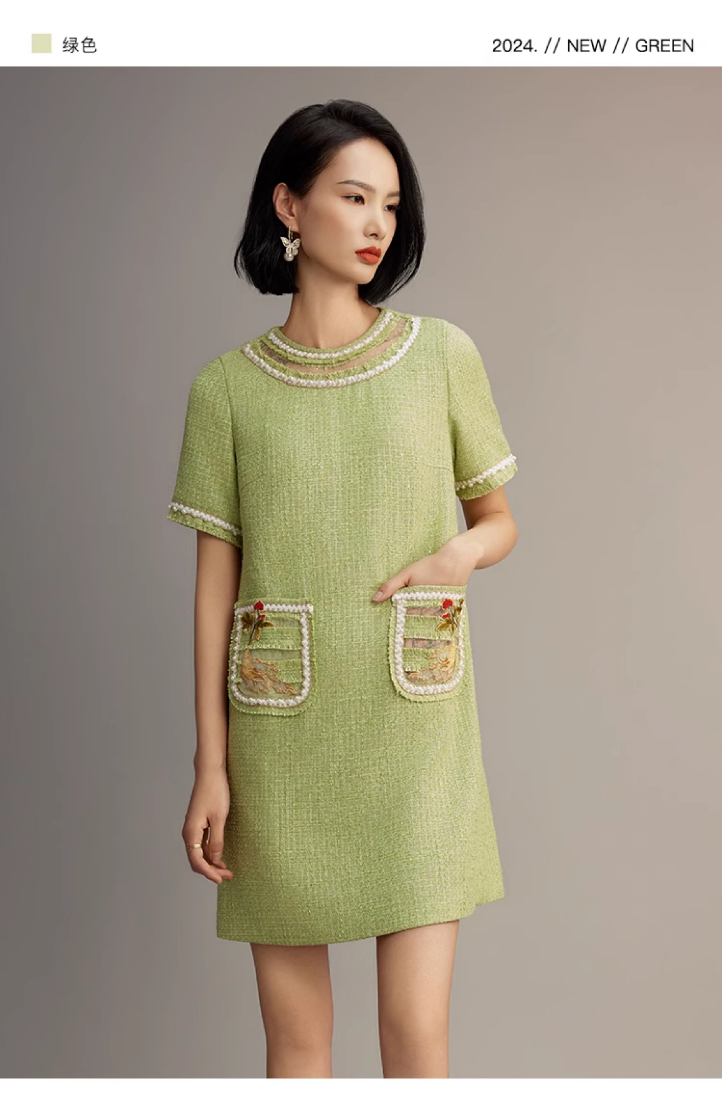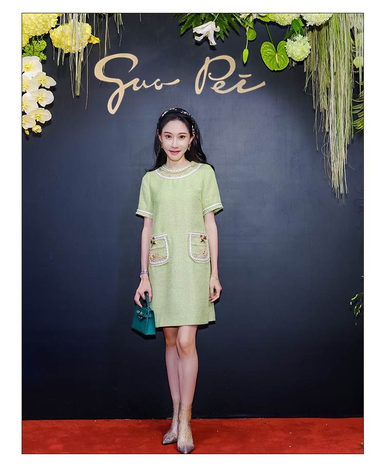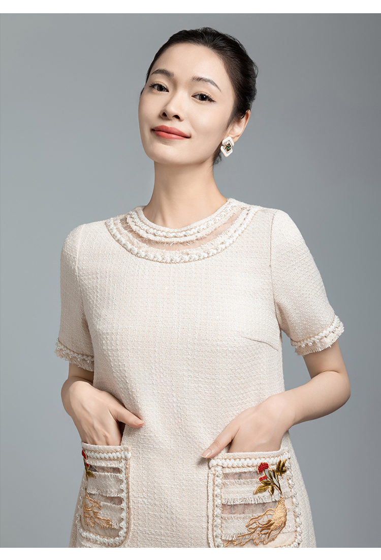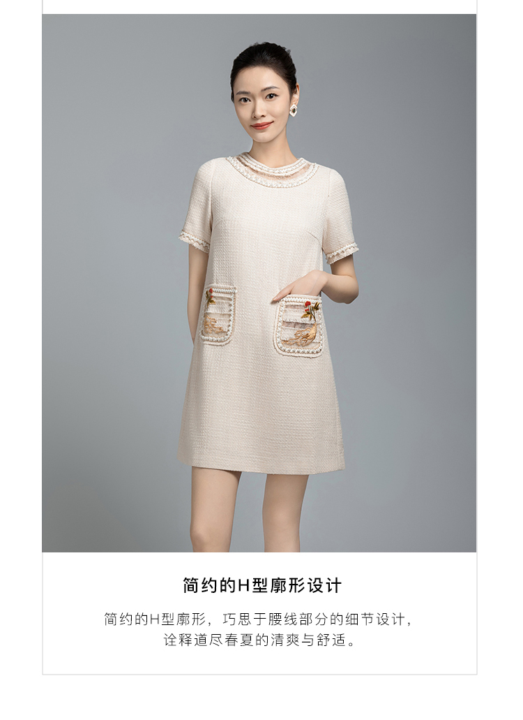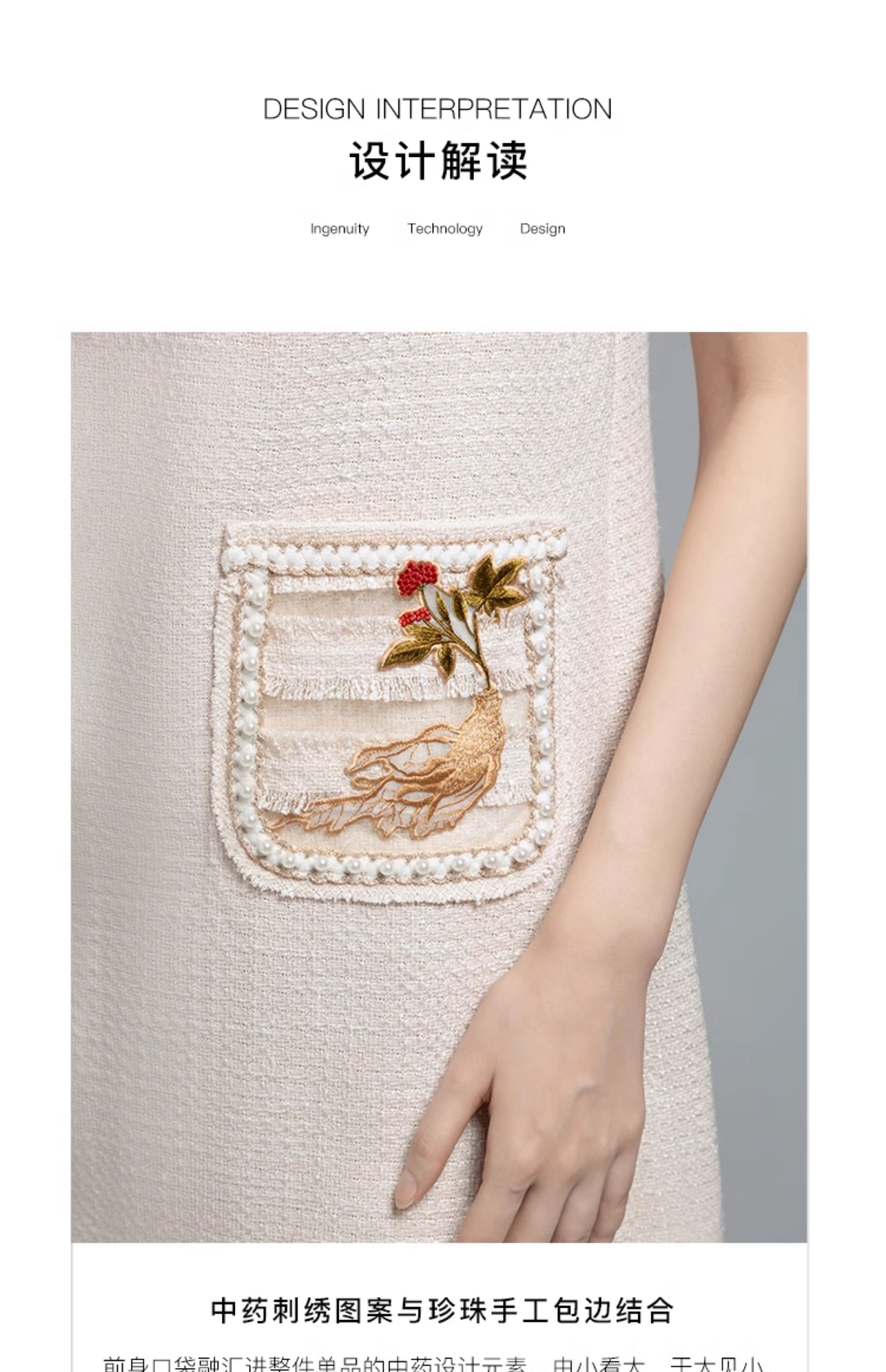 郭培成衣品牌【“药”爱自己】编织装饰领斜纹呢人参刺绣连衣裙