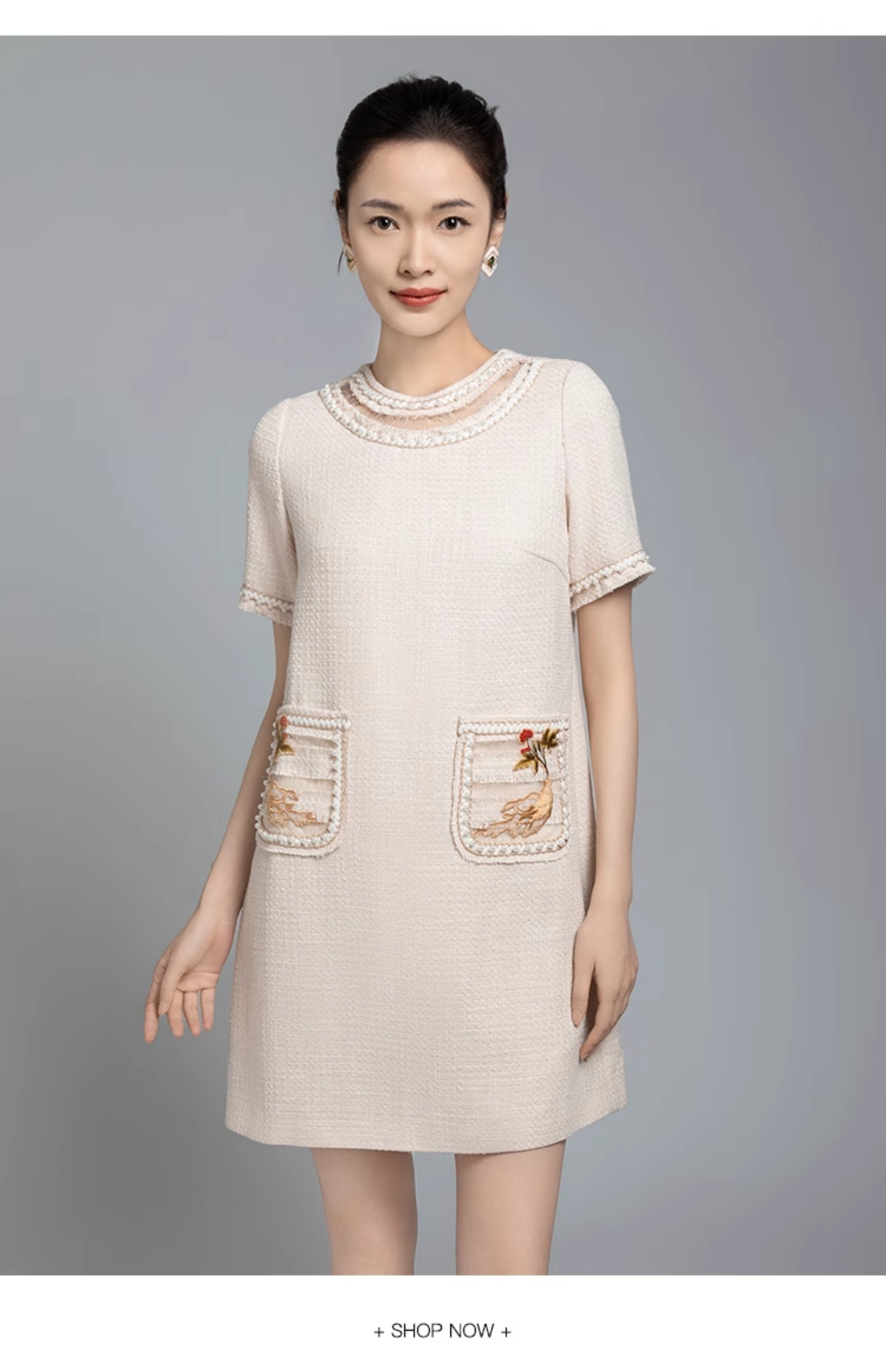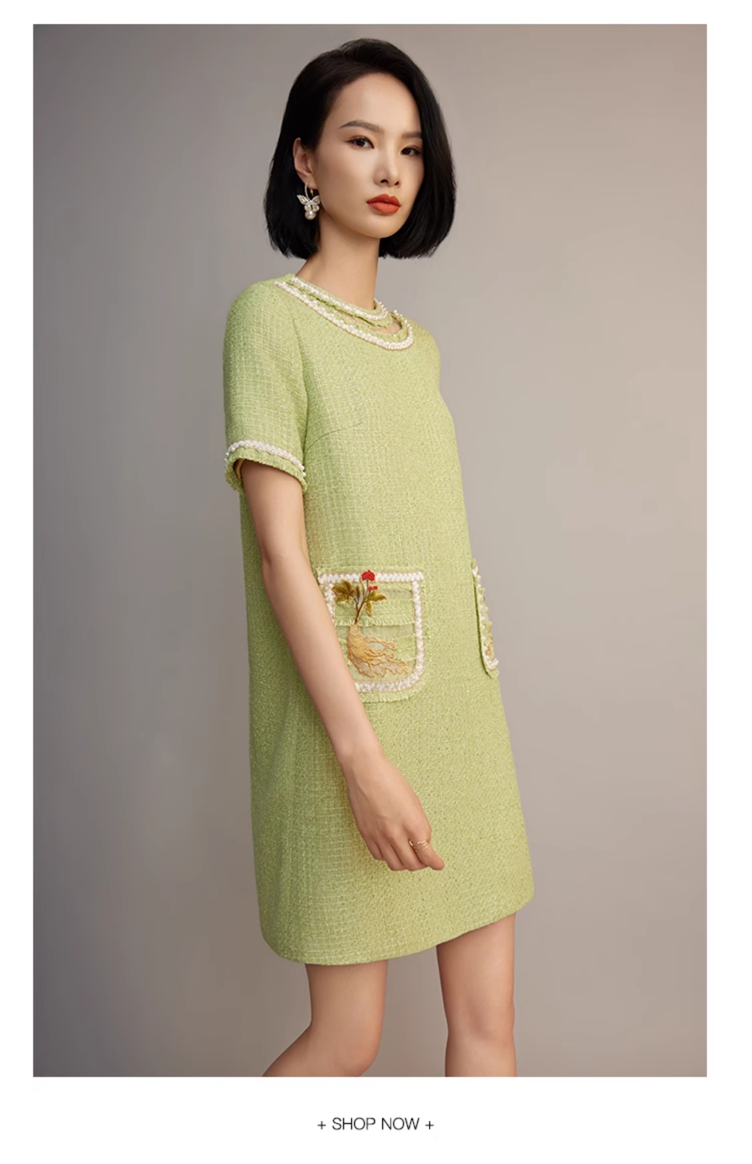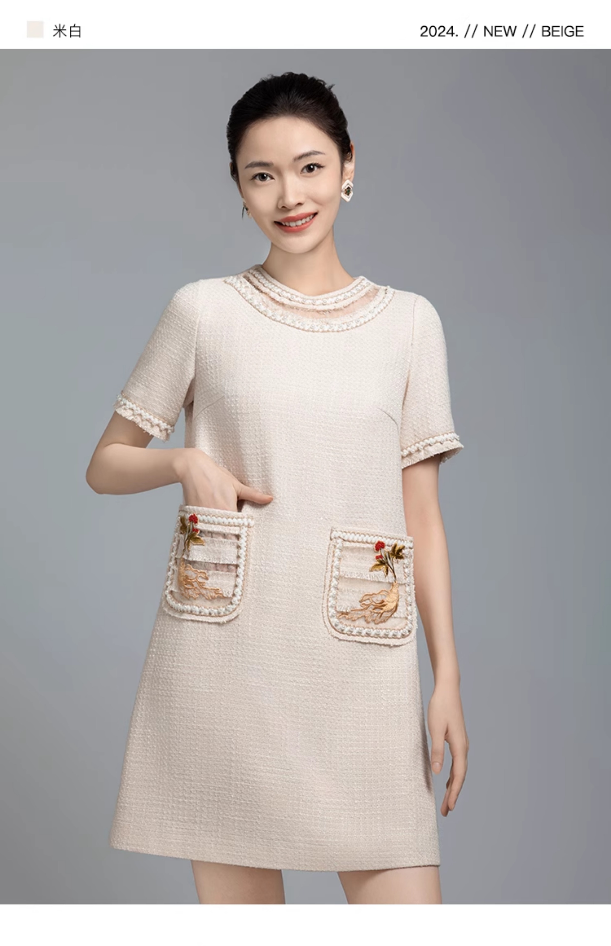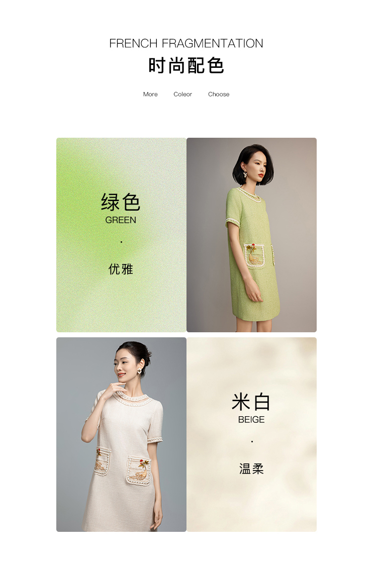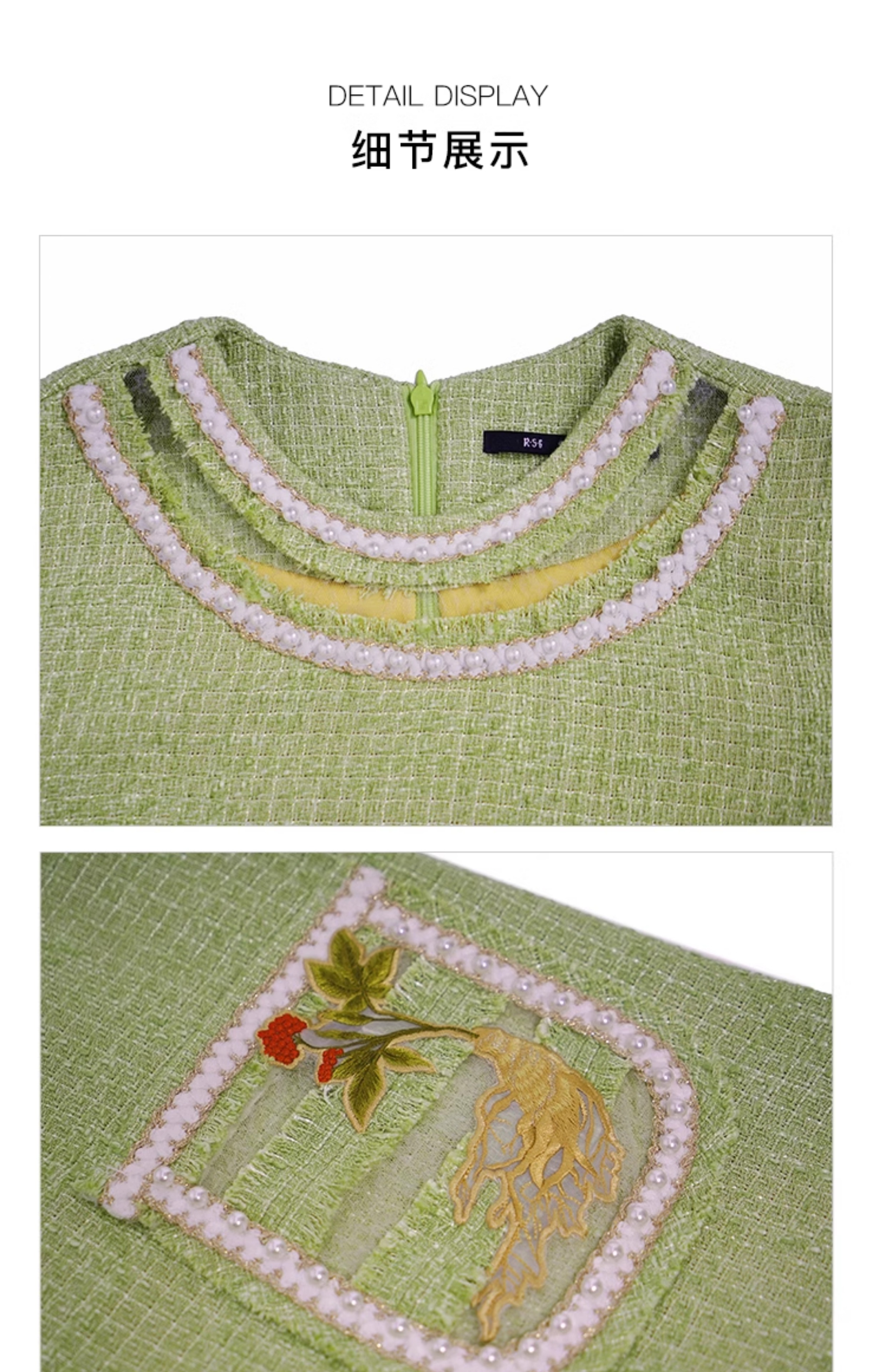 郭培成衣品牌【“药”爱自己】编织装饰领斜纹呢人参刺绣连衣裙