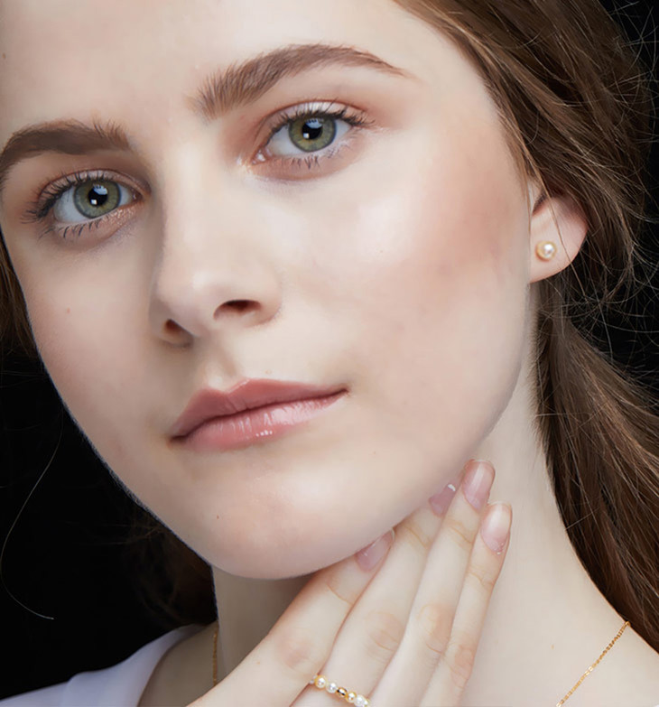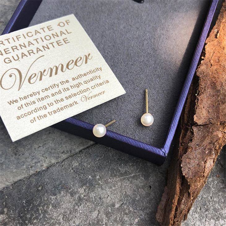 Vermeer日本Akoya海水珍珠暖暖人气奶油色珍珠18K金必入经典款小耳钉4-4.5mm