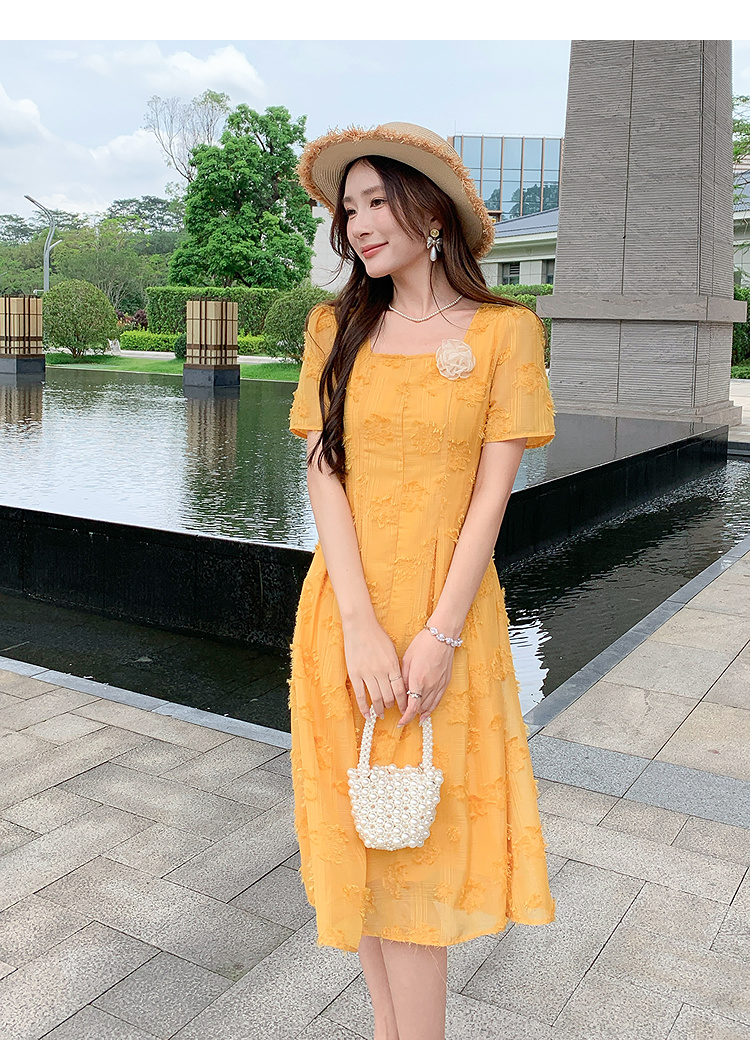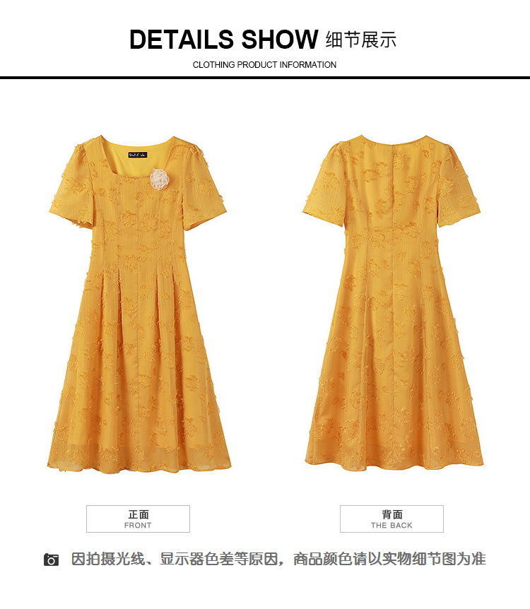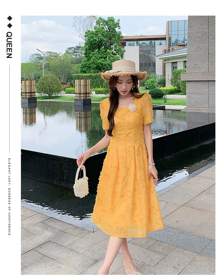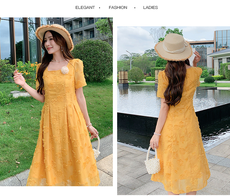 奢姿大码女装2025夏季新款胖妹妹法式方领连衣裙气质优雅A字裙9952802003【1】