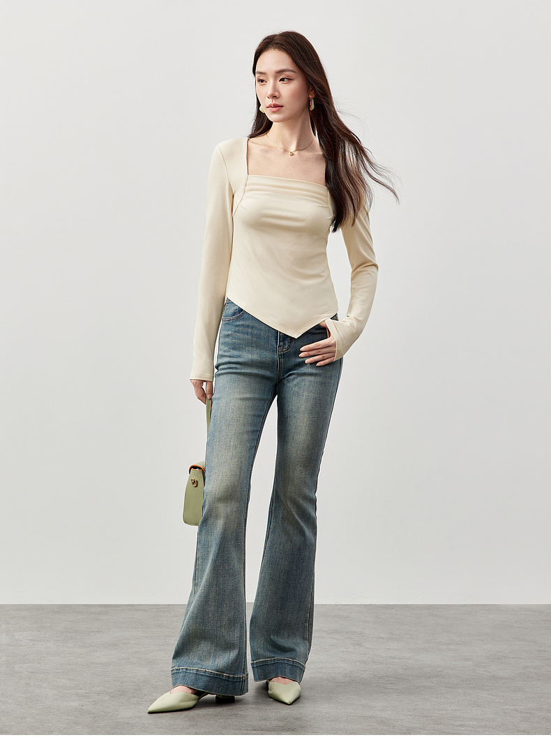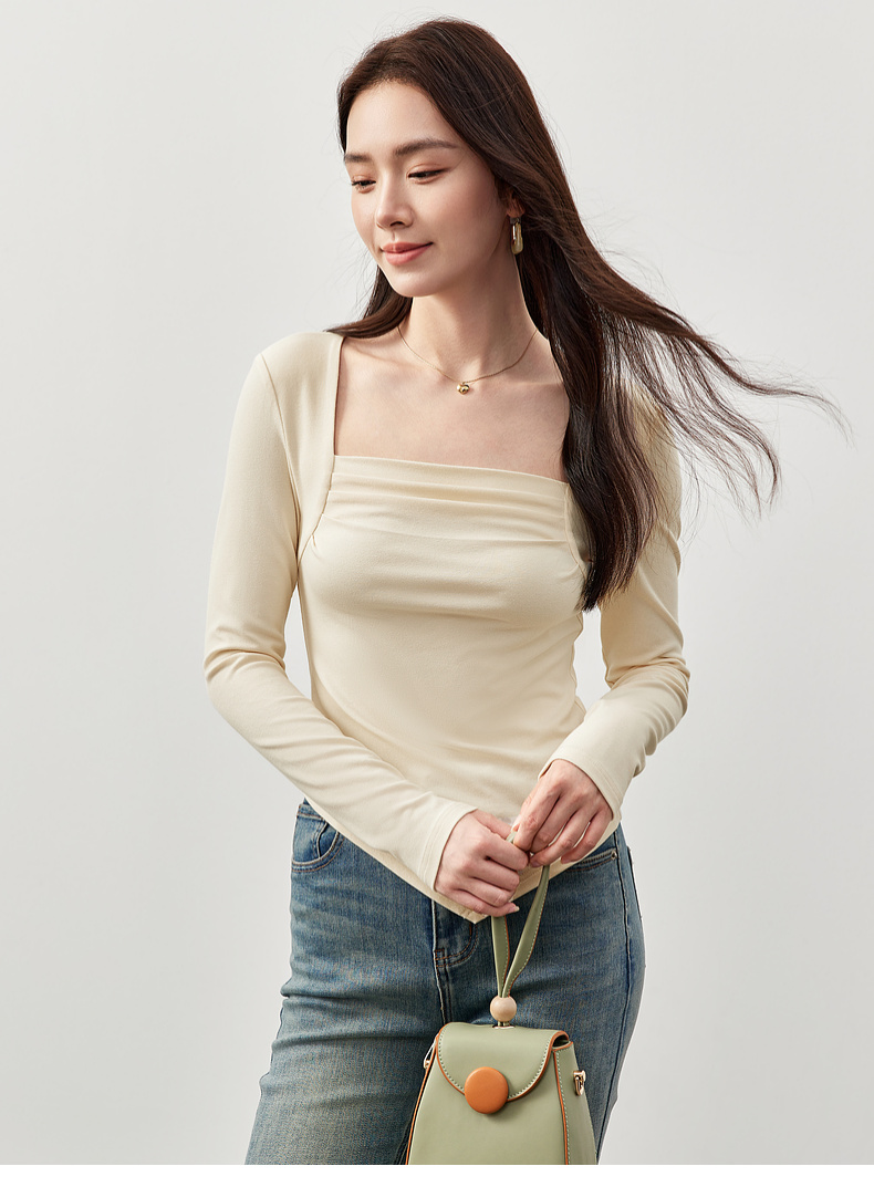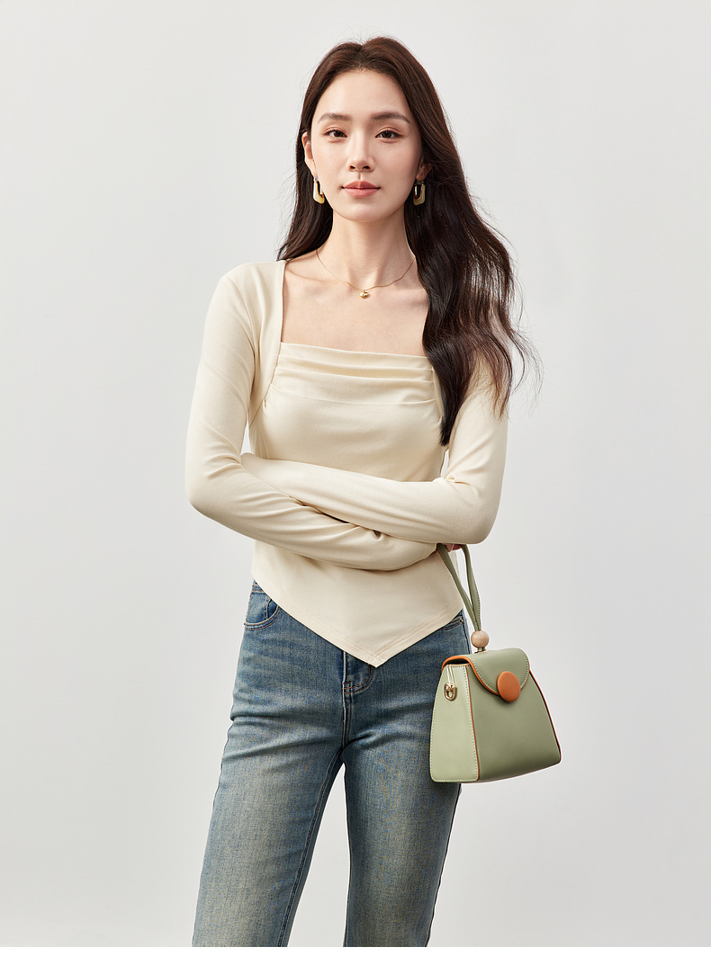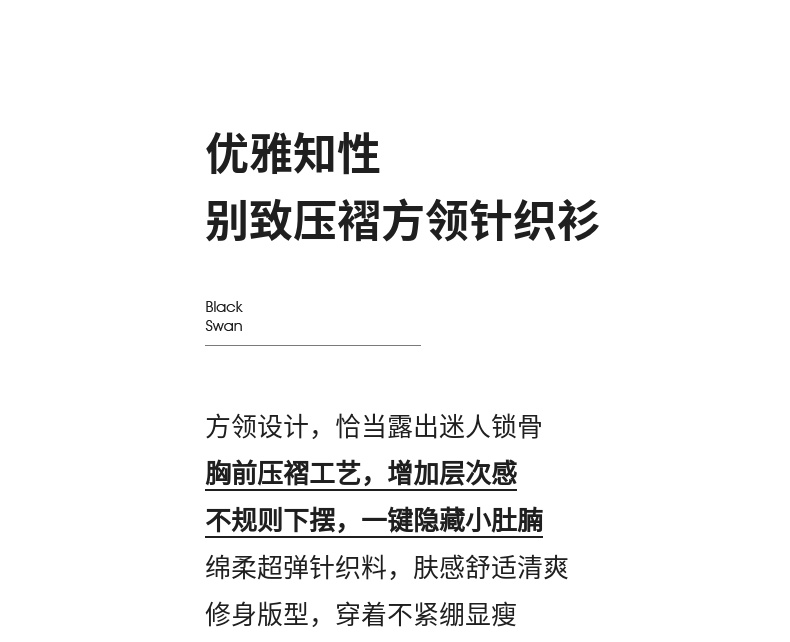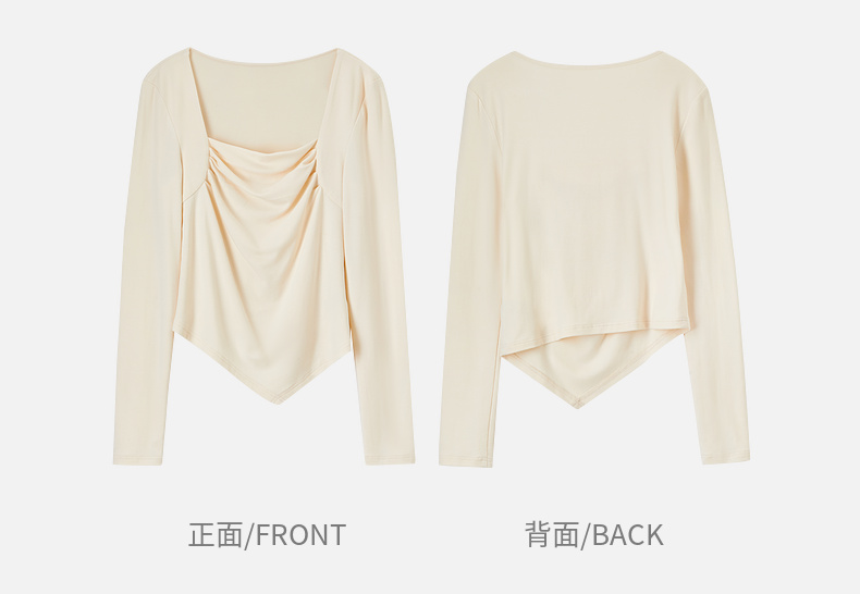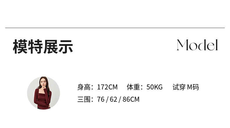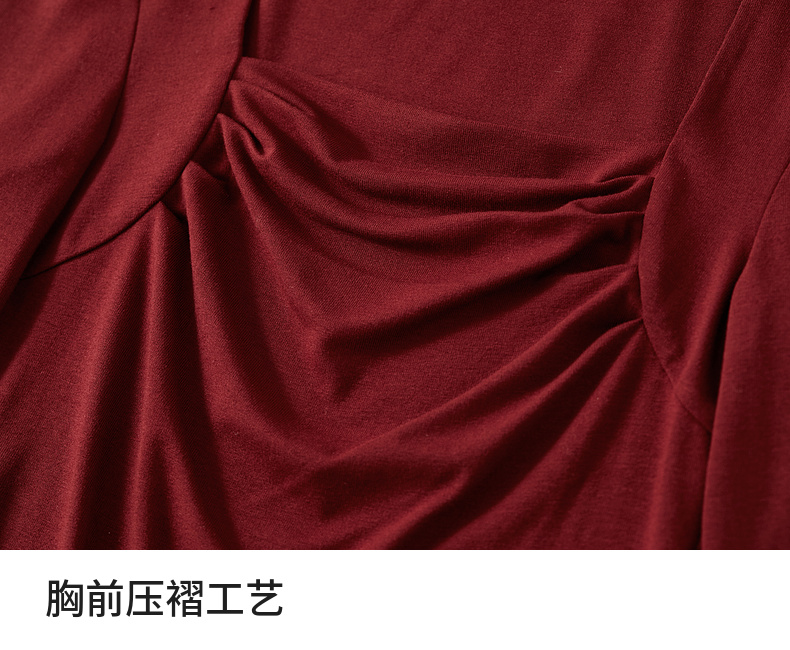 【内购】优雅知性安可拉红设计感方领压褶不规则下摆修身超弹针织衫-151T58623