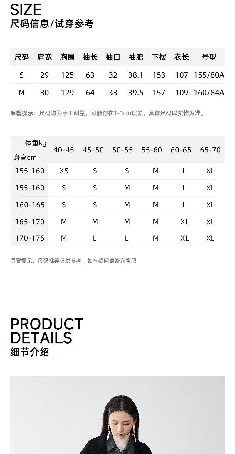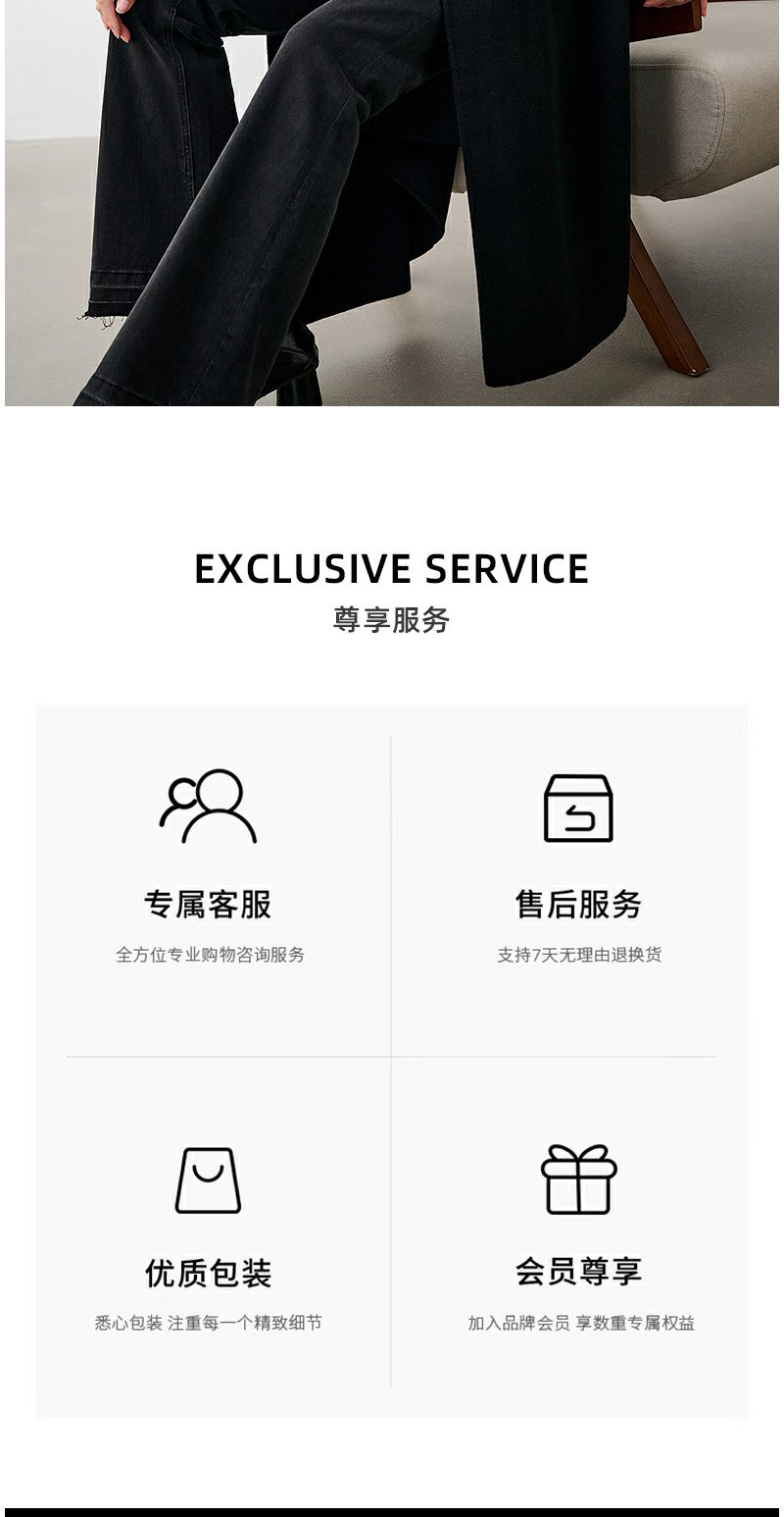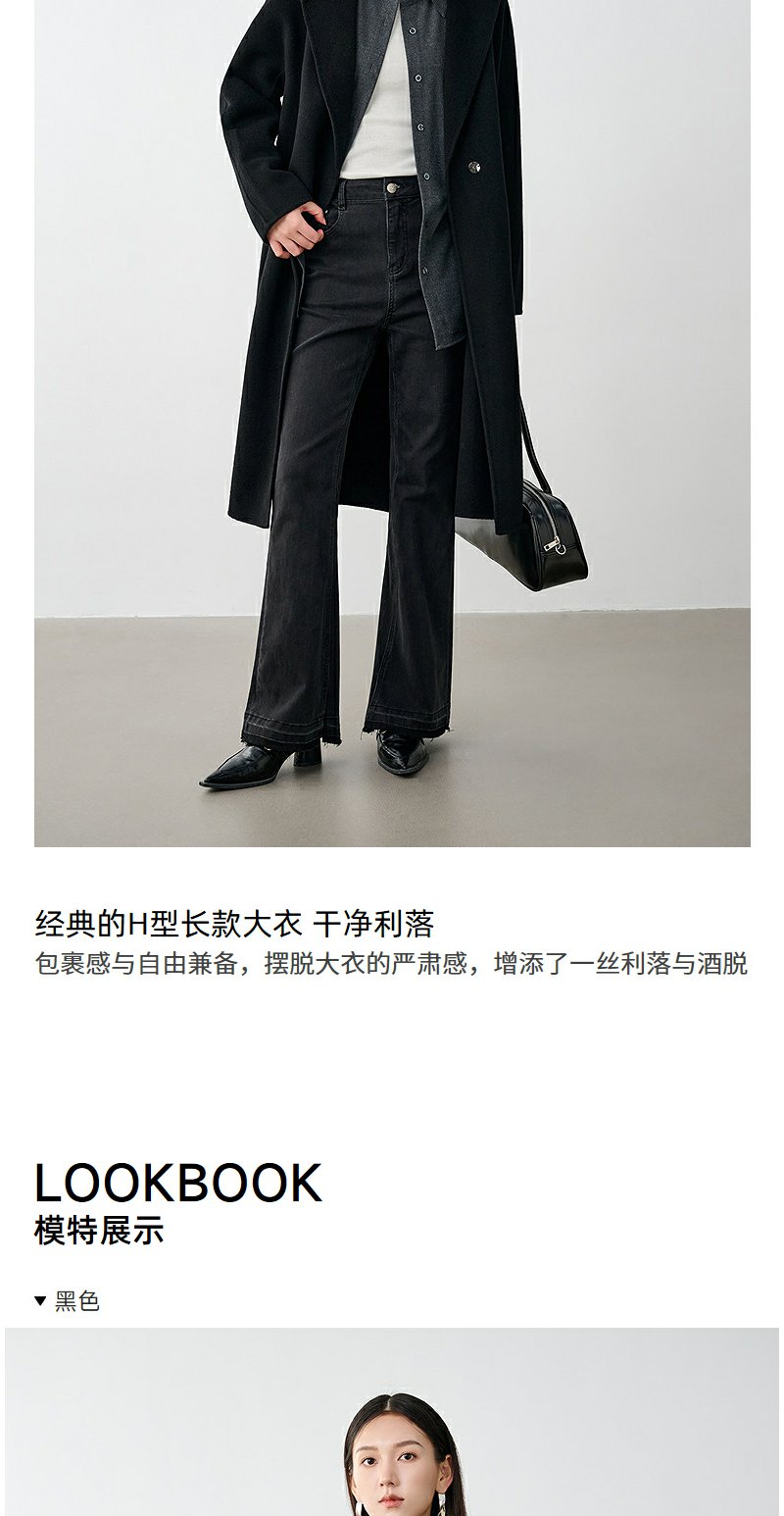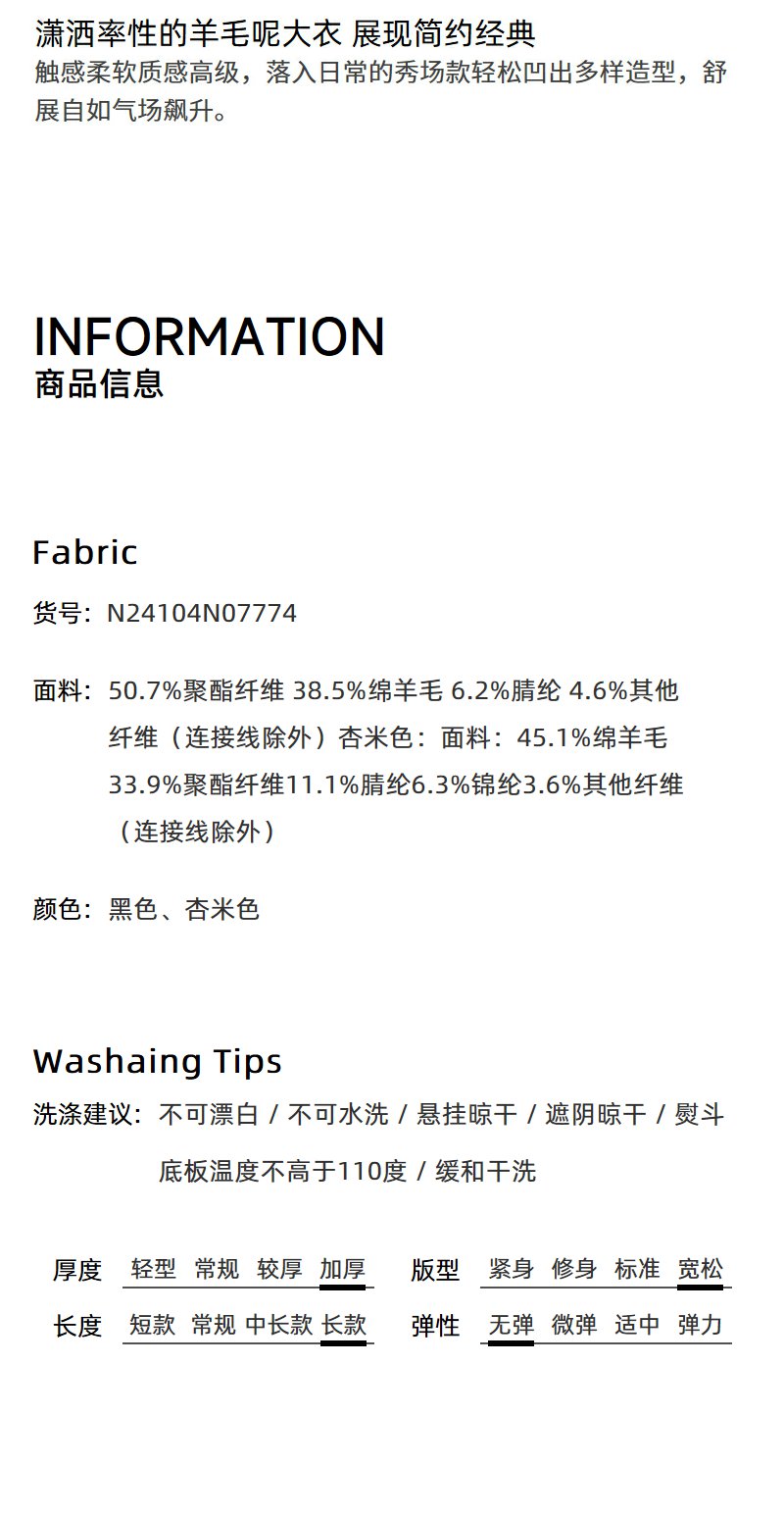 NEELLY纳俪商场同款冬季新款廓形绵羊毛双面毛呢大衣黑色外套女N24104N07774