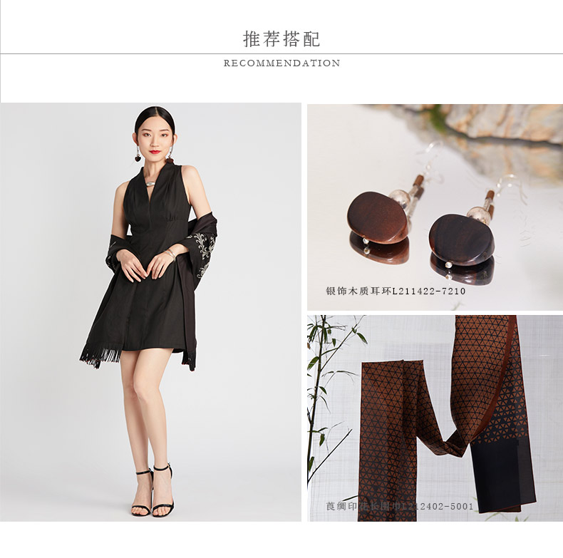 TANGY Collection/天意精品2021年春夏新品雾绯系列V领莨绸连衣裙