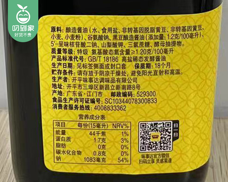 味事达味极鲜黑豆纯酿*2瓶(760ml/瓶)生产日期: 8月