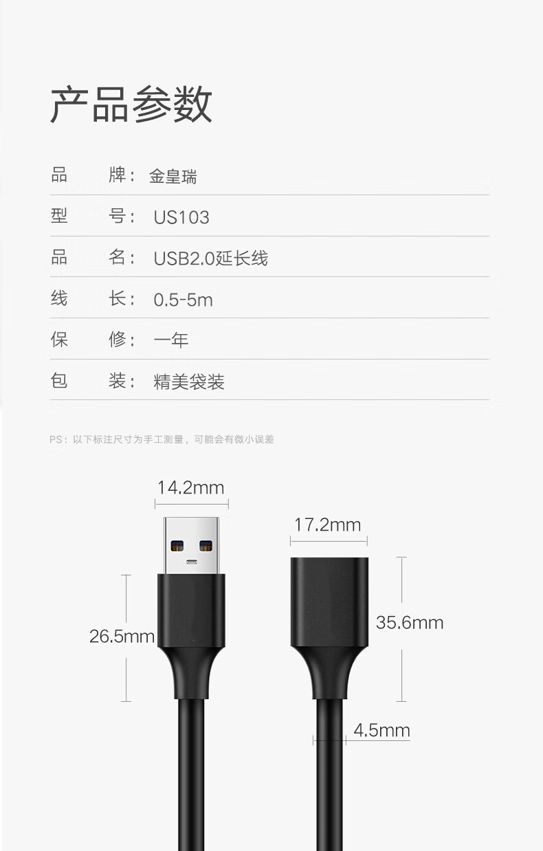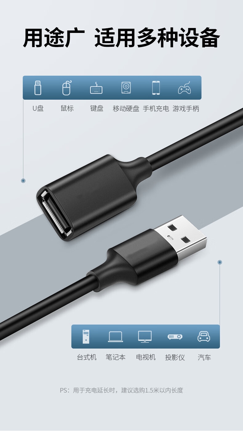 商品名称:【USB 延长线】USB2.0延长线公对母 高速传输数据连接线 电脑U盘鼠标键盘打印机充电器扩展延长加长线 USB高速延长线,双层屏蔽抗干扰,线身柔软更灵活,用途更广泛