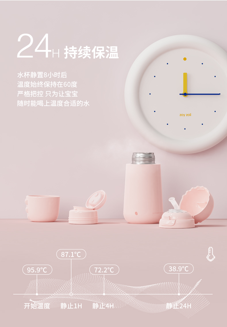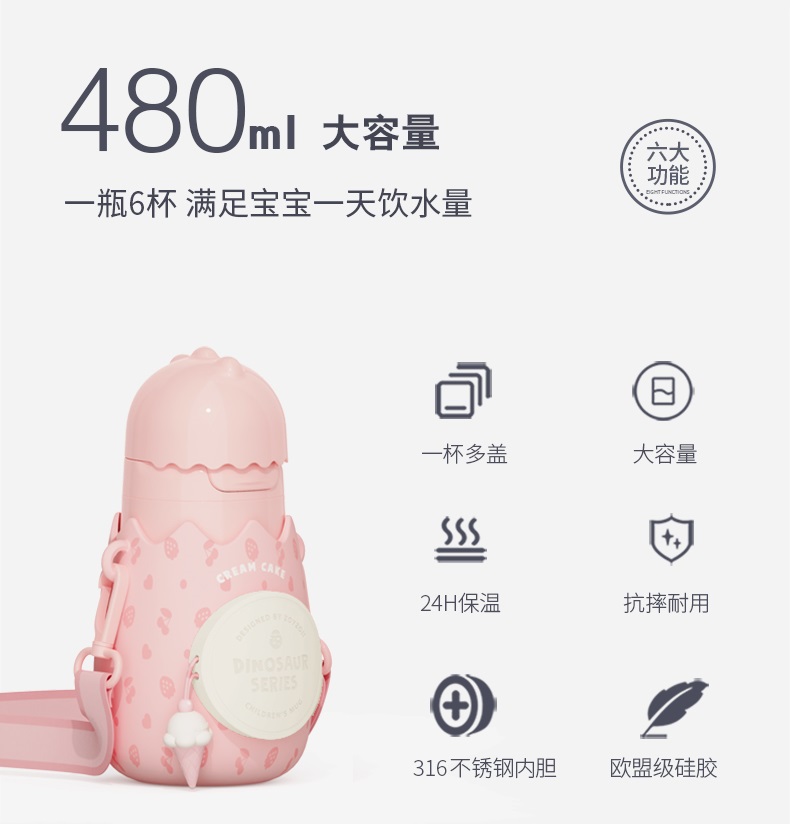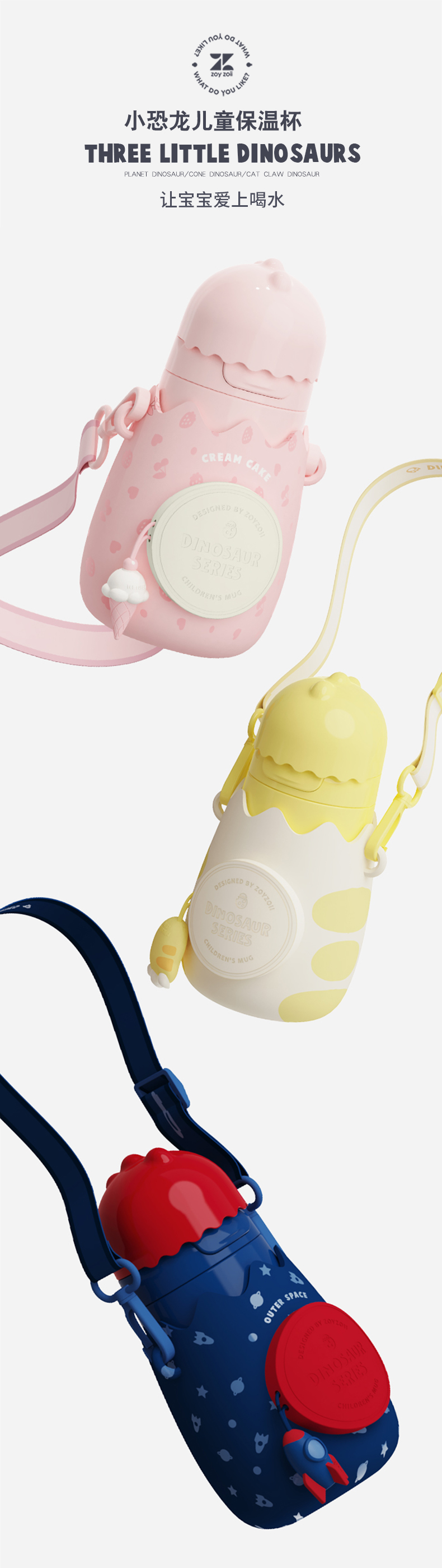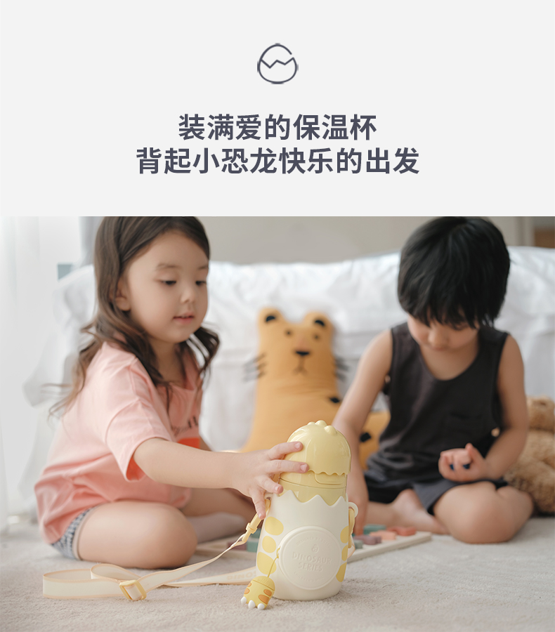 zoyzoii儿童保温杯带吸管便携宝宝水壶幼儿园男小学生女可爱水杯