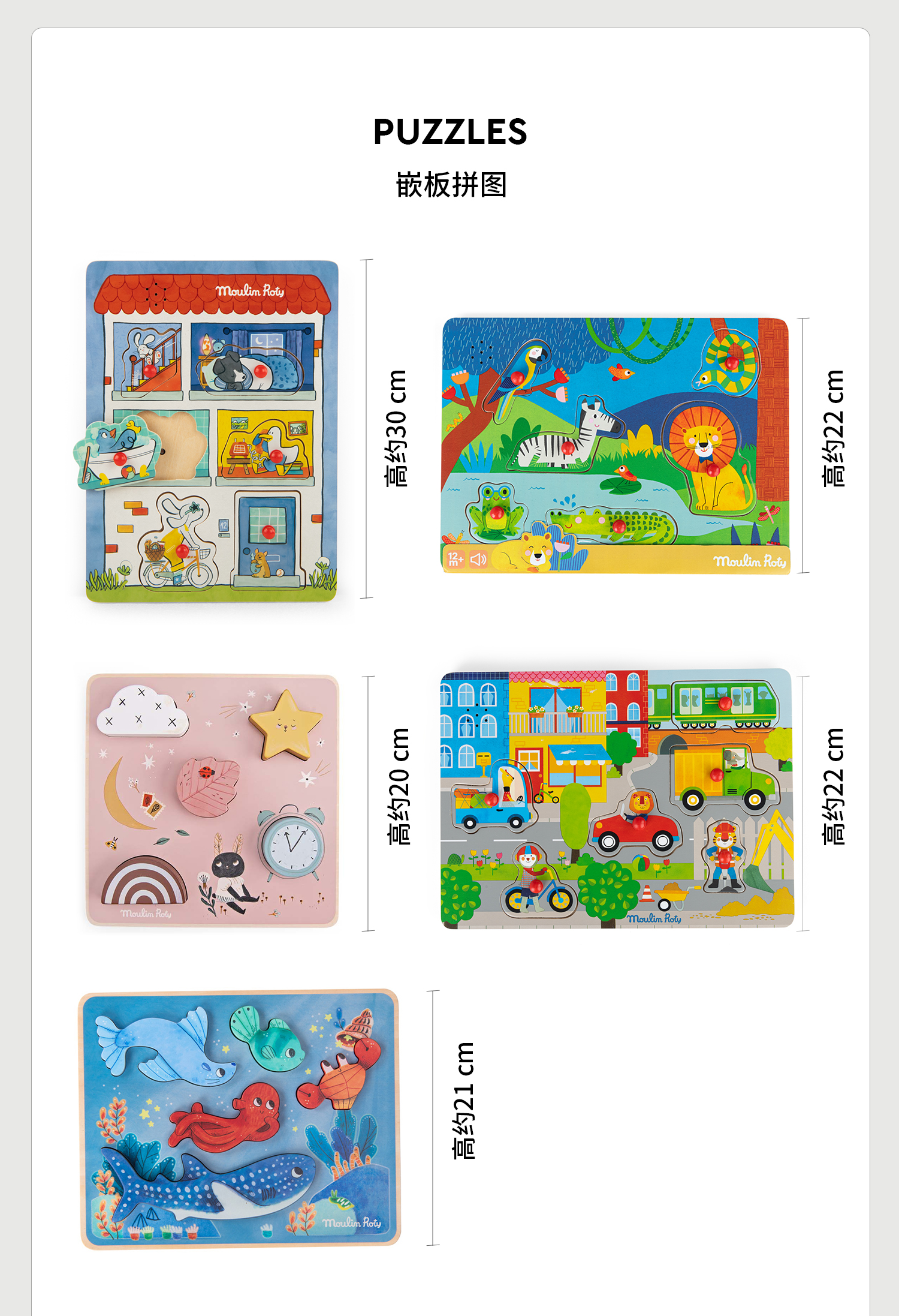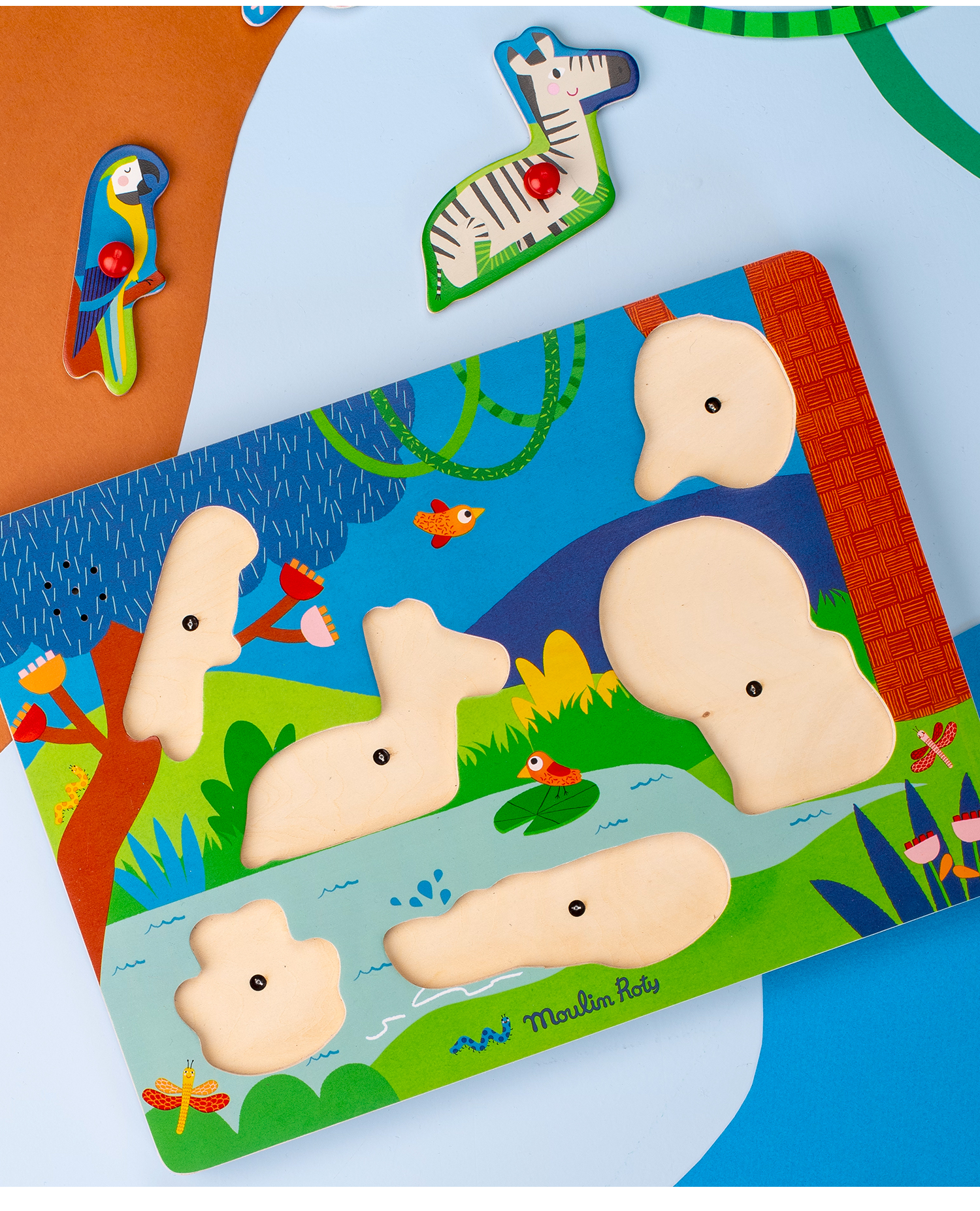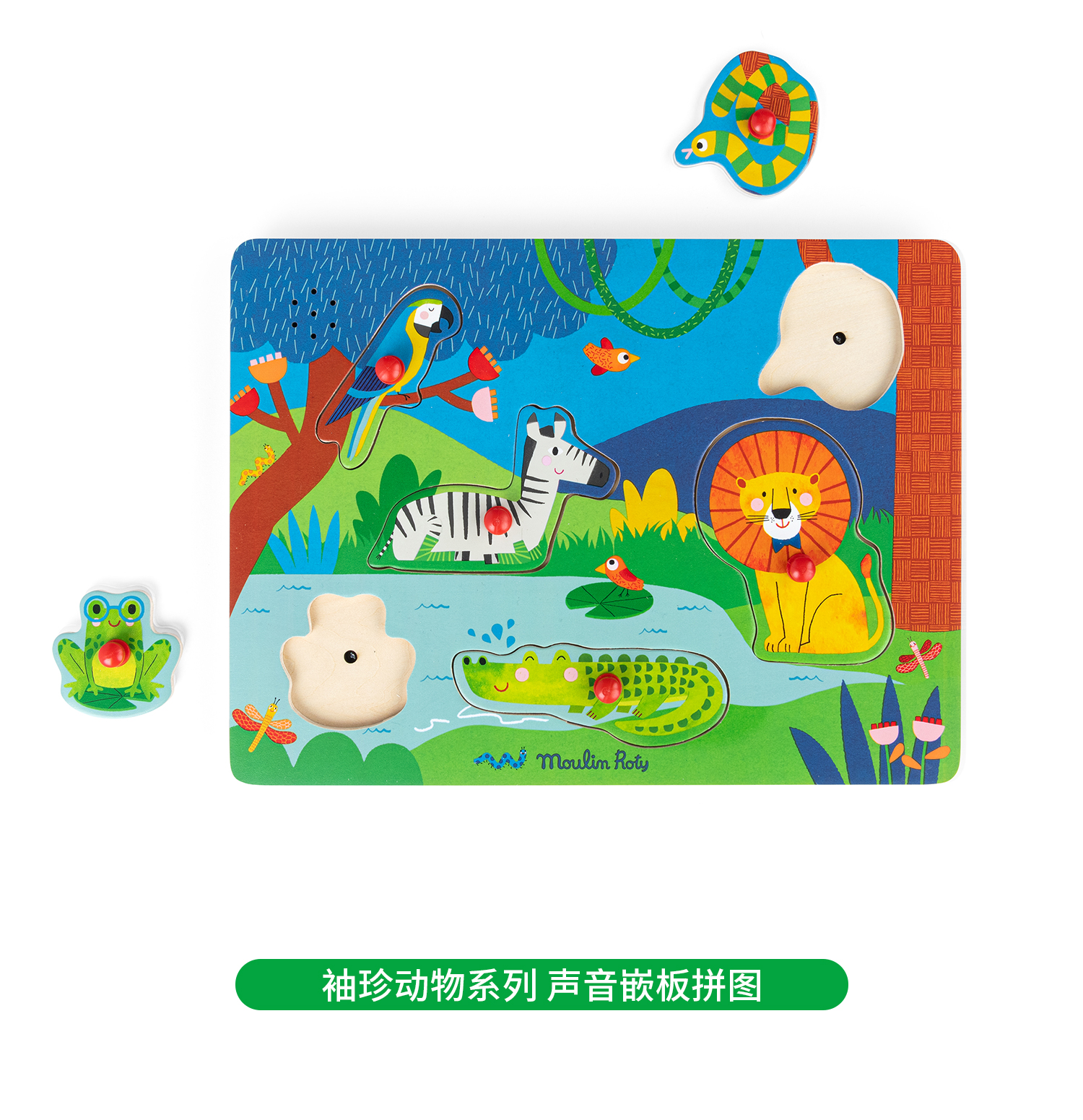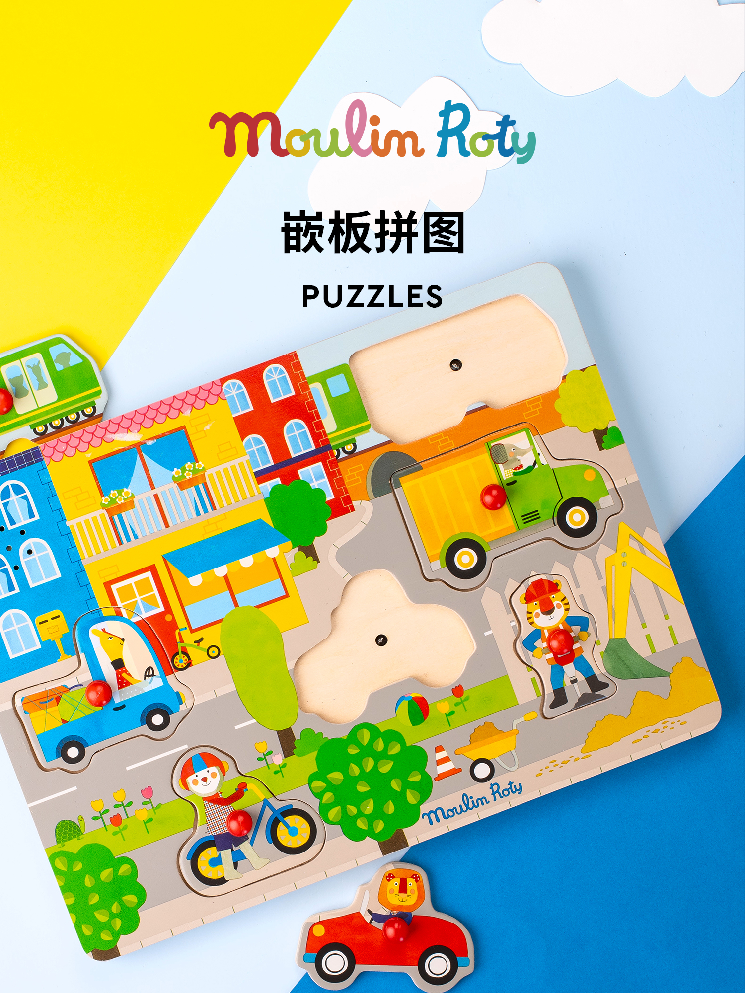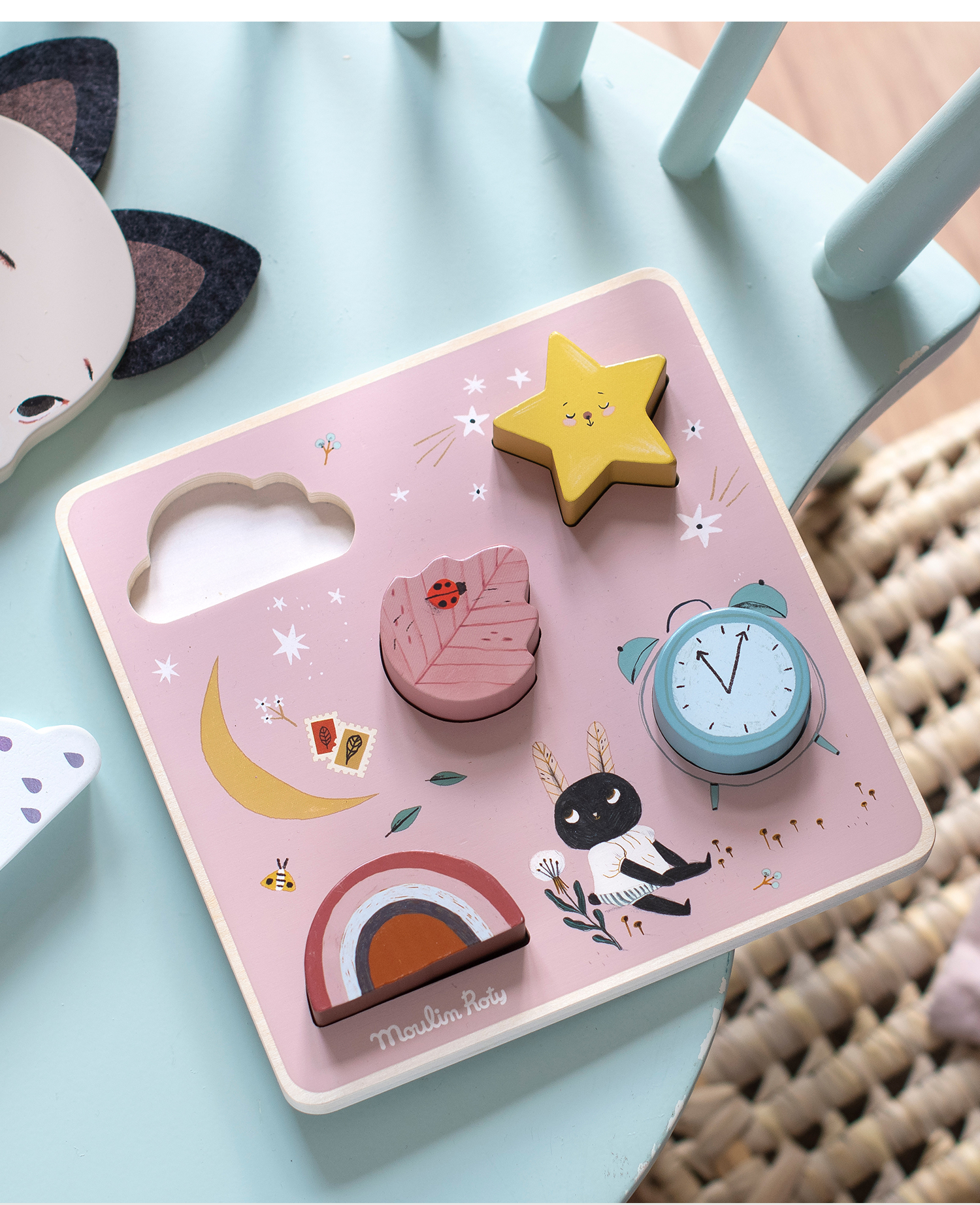 Moulin Roty 木质嵌板拼图 益智木玩 雨后精灵系列 适合1岁+ 法国品牌 -715125