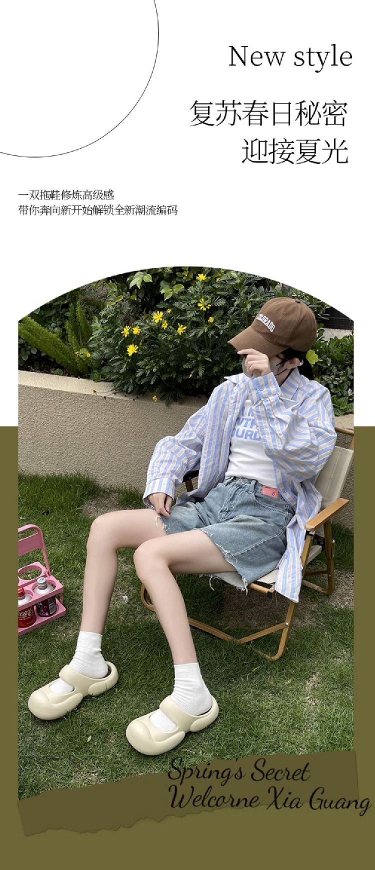 包头拖鞋女夏季新款洞洞鞋外穿增高网红厚底防滑沙滩踩屎感凉拖鞋