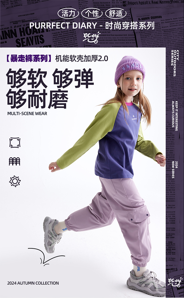 【咕噜日记】【耐磨软壳工装】儿童立体口袋印花工装裤 PQK2403