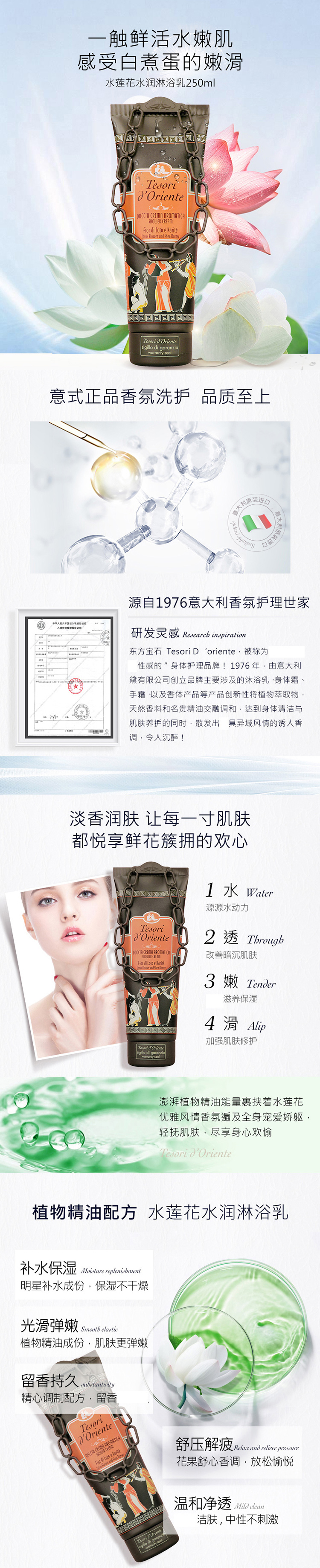 意大利东方宝石香氛淋浴乳250ml 埃及艳后/水莲花香光滑弹嫩留香 117751/117752