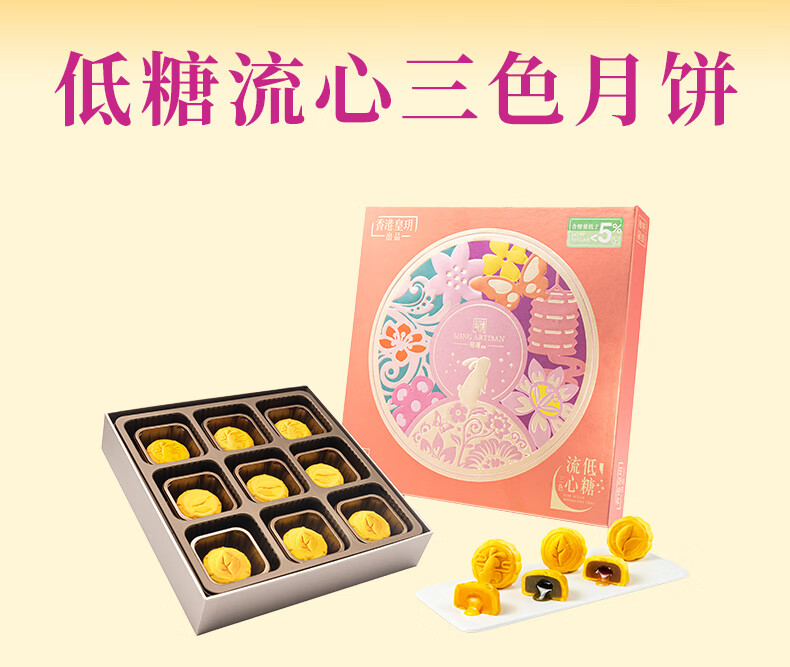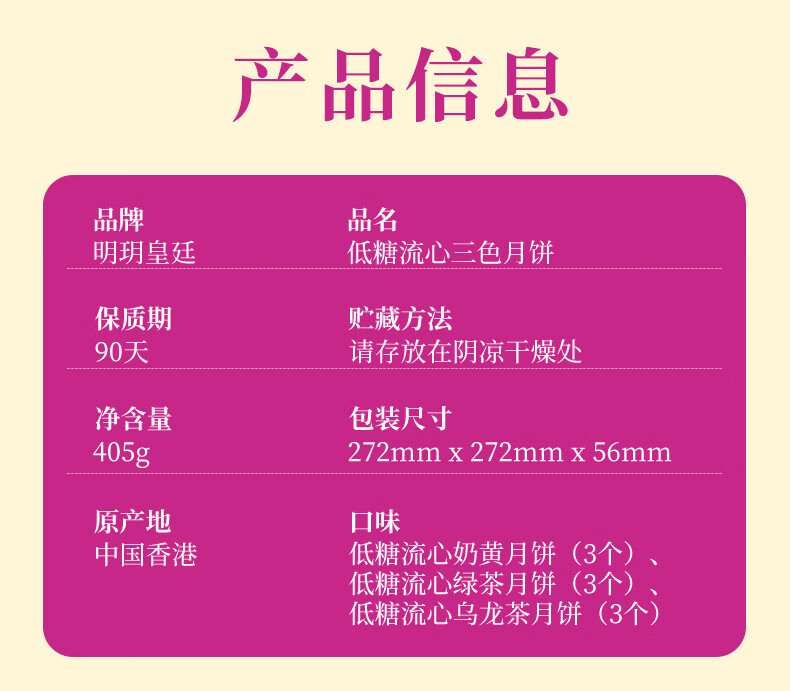 【一件包邮】明玥皇廷-低糖流心三色月餅405g 不含人工代糖 甘肃/青海/内蒙古/新疆/西藏/宁夏/海南/港澳台不发货
