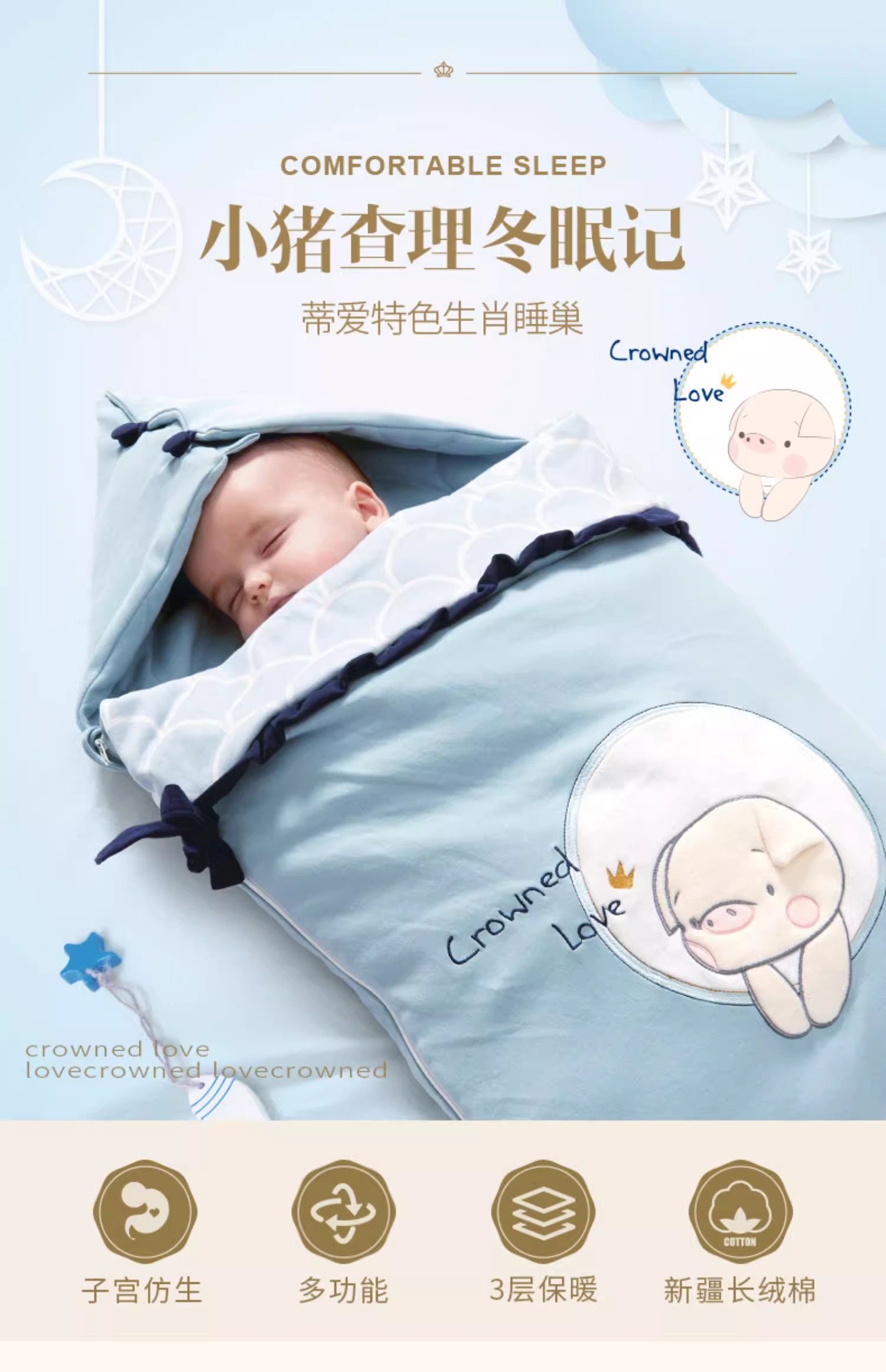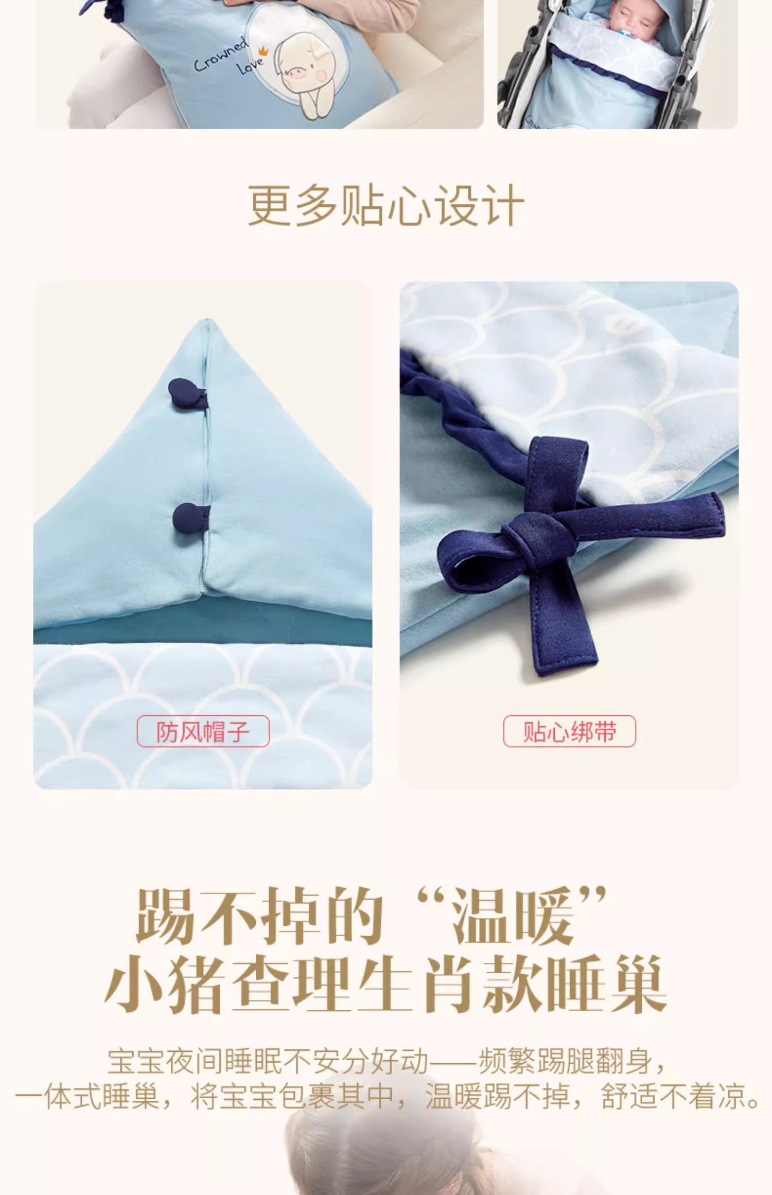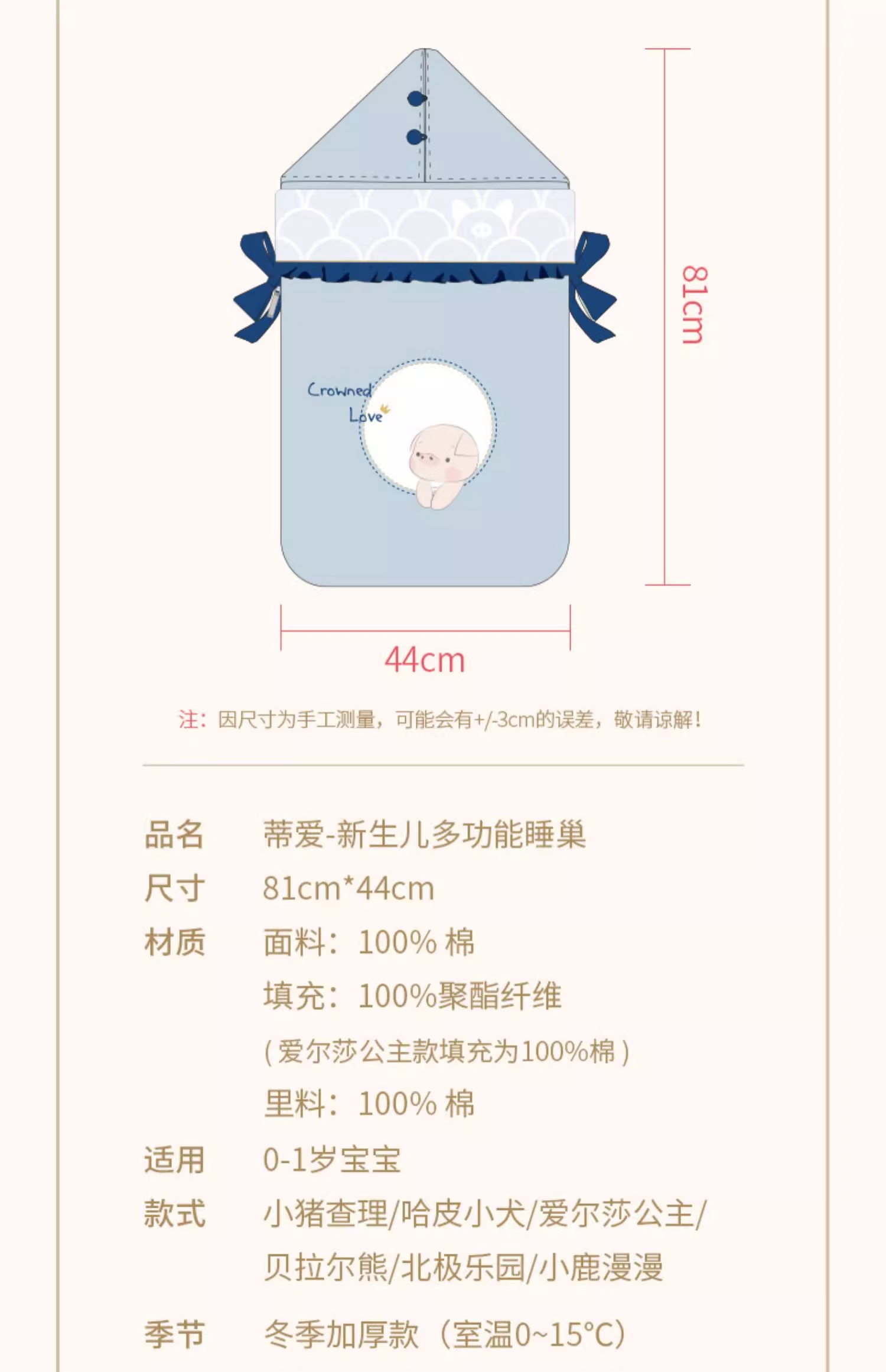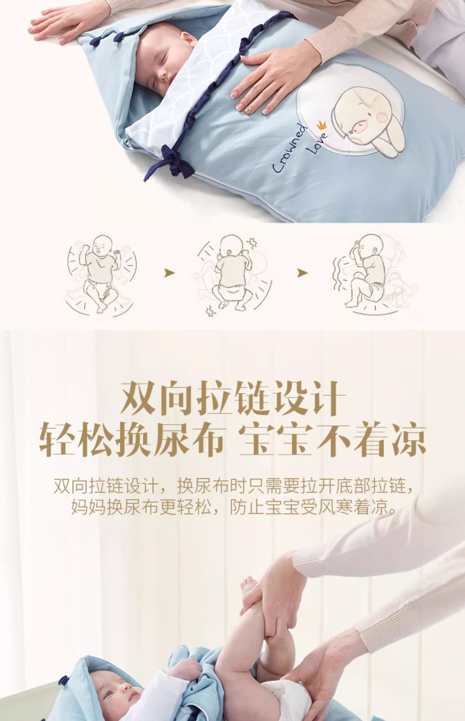 蒂爱婴儿包被秋冬加厚襁褓被子抱被初生多功能出行防踢被睡袋