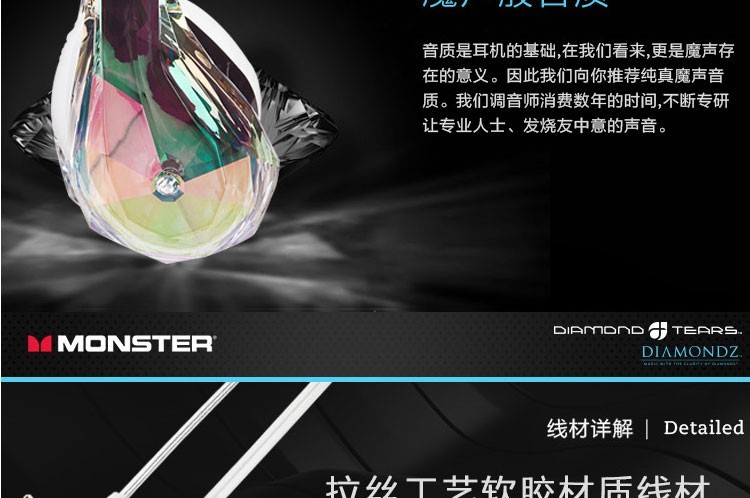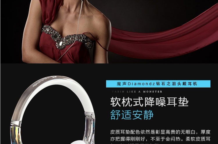 魔声(Monster) Diamondz钻石之泪 降噪耳机 有线头戴式重低音游戏耳机电脑吃鸡音乐耳麦
