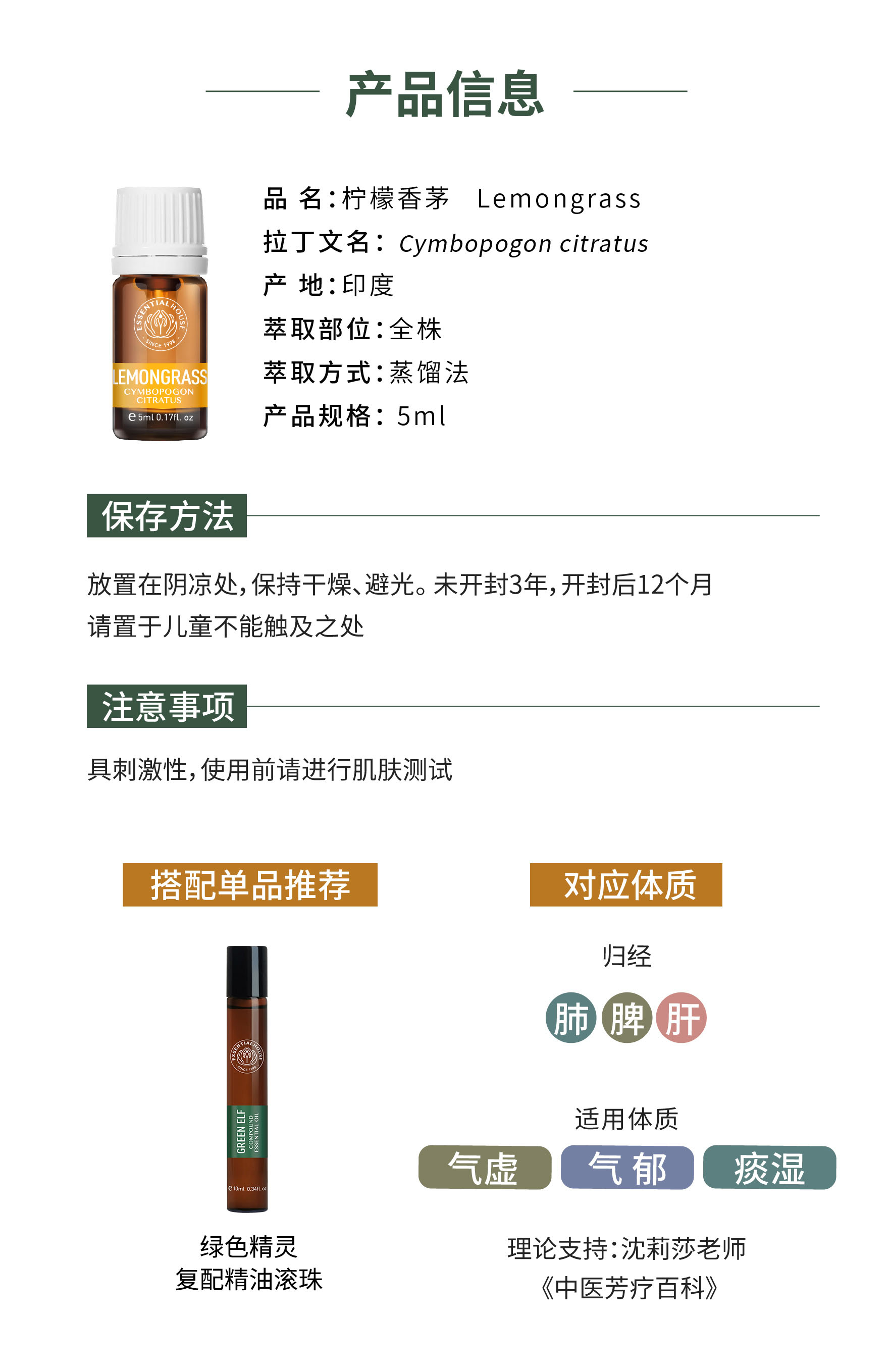 柠檬香茅 Lemongrass 单方精油 5ml
