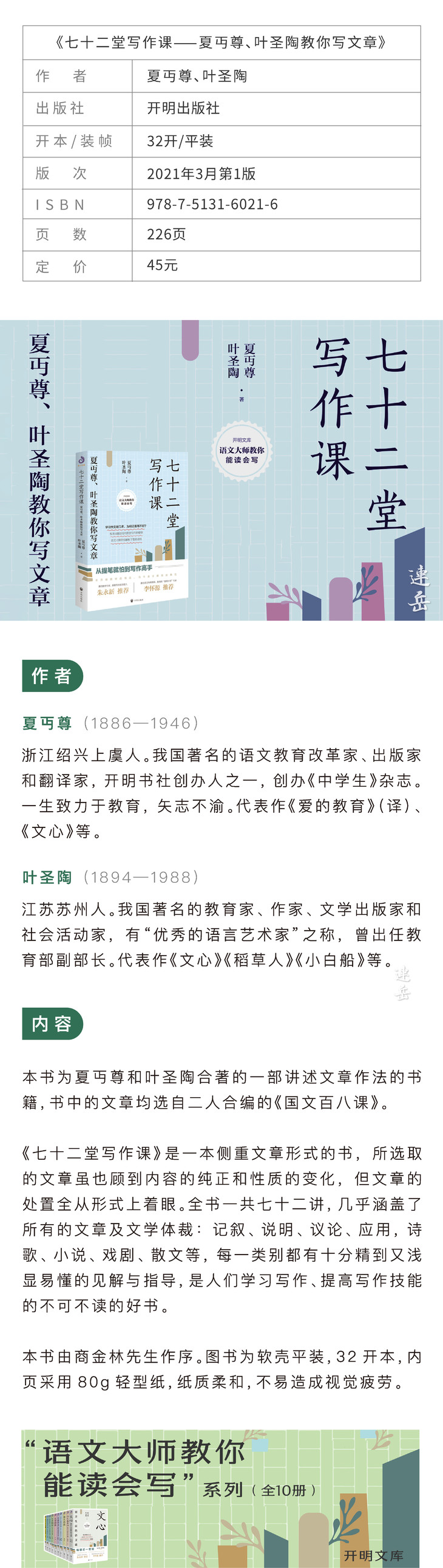 《七十二堂写作课——夏丏尊、叶圣陶教你写文章》