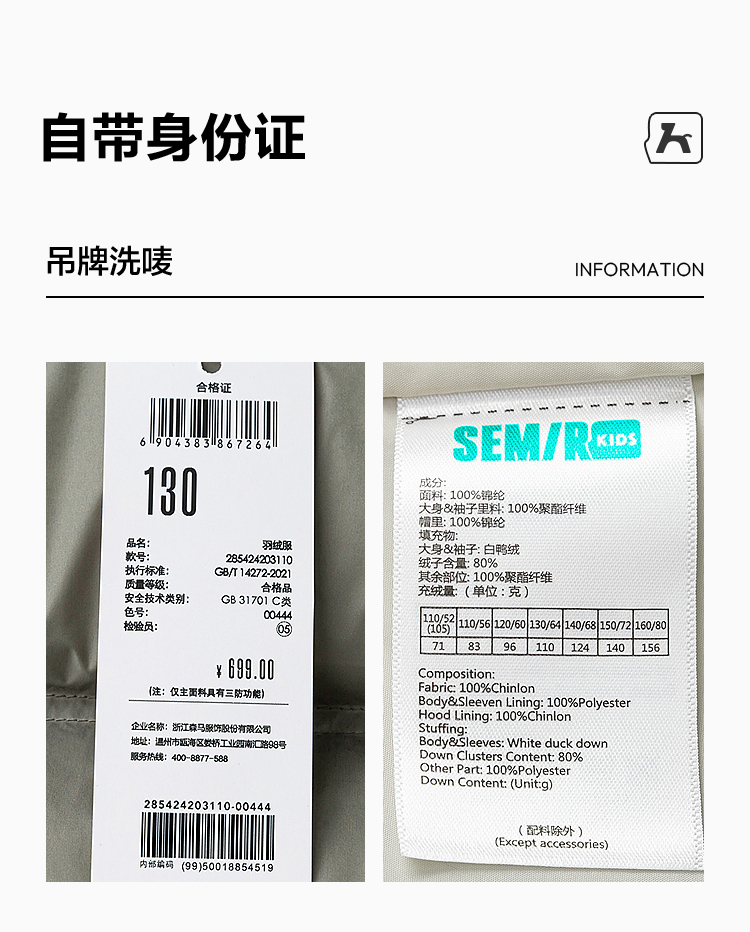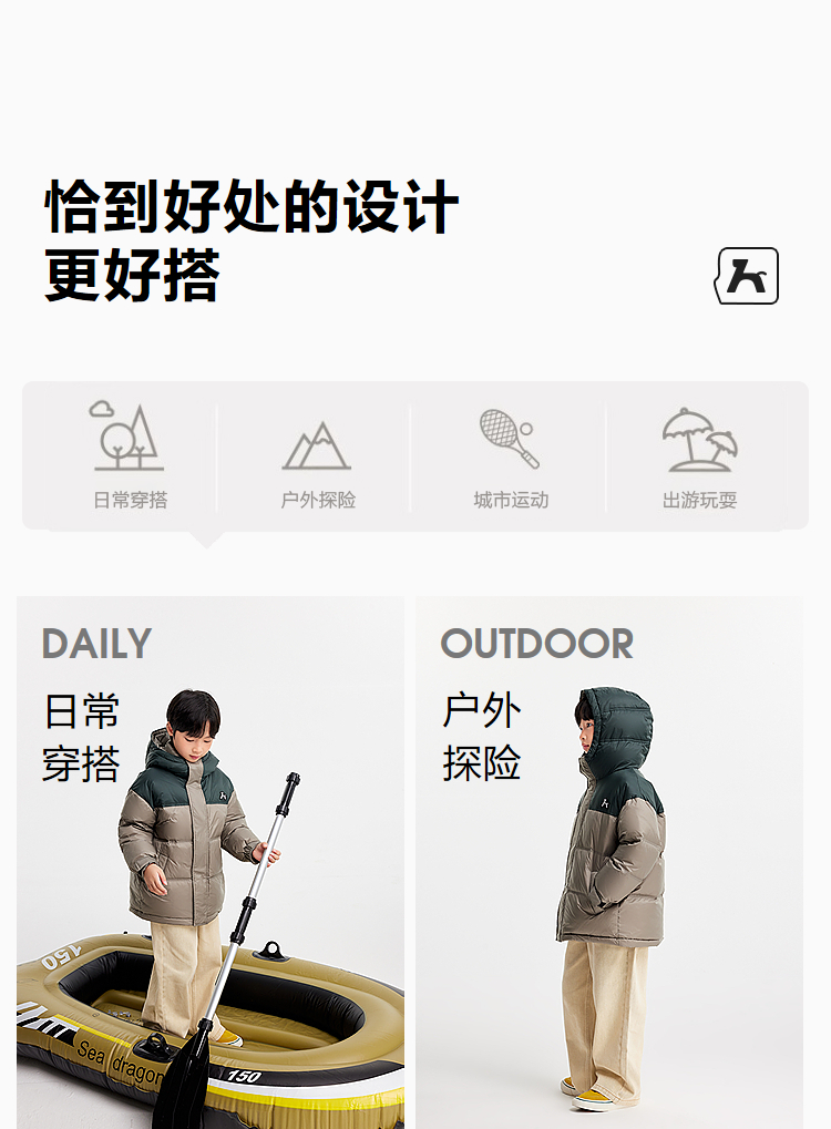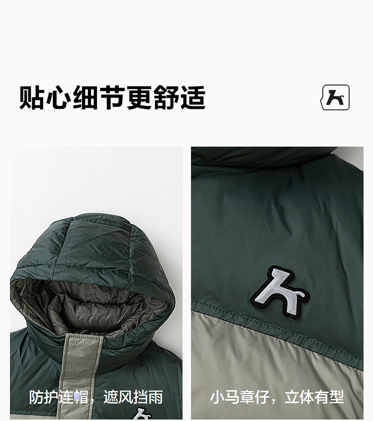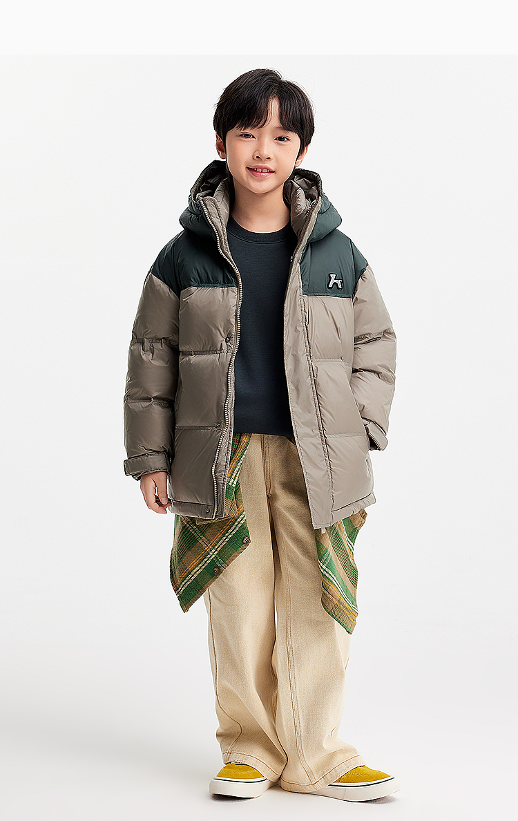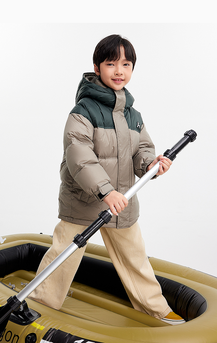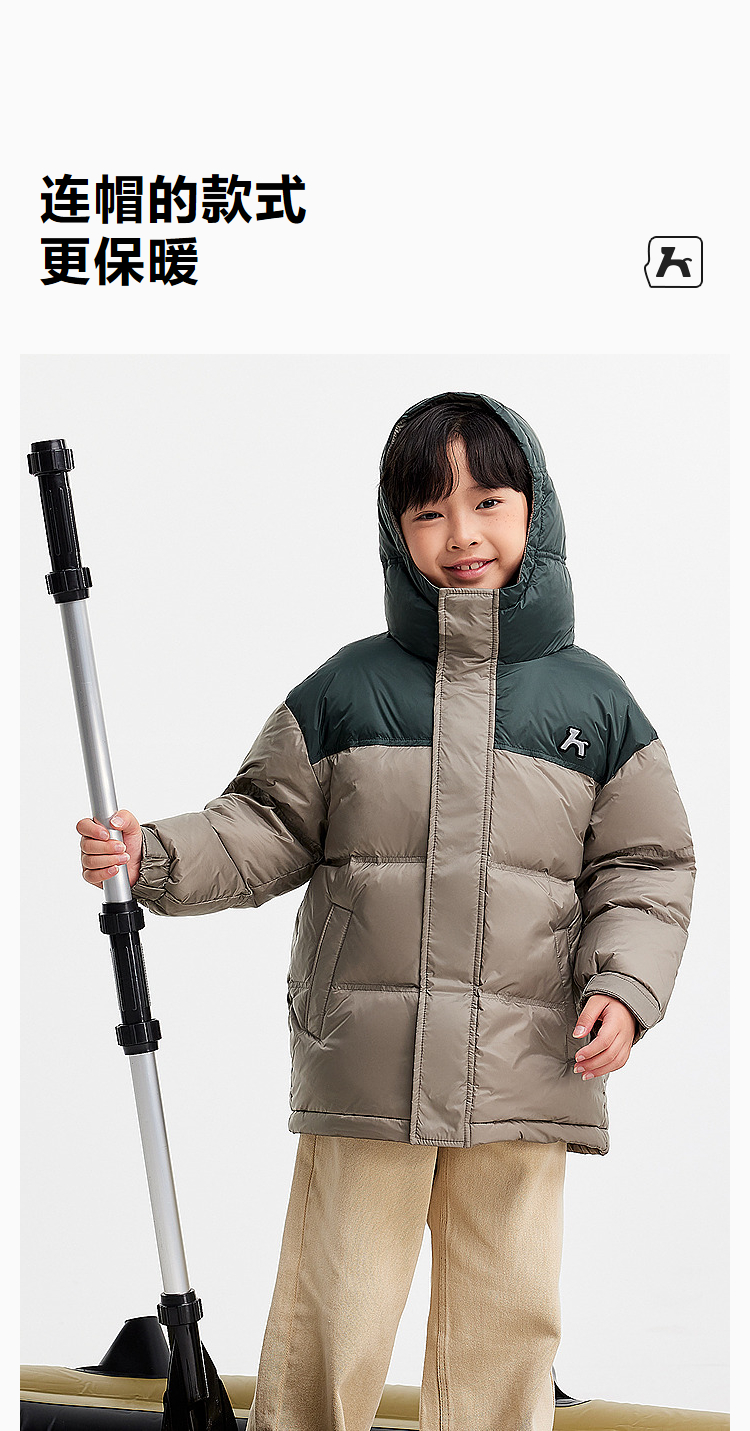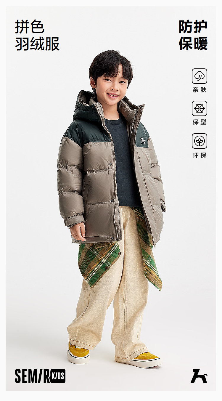 森马儿童羽绒服2024新款宽松连帽三防外套时尚拼色冬装男童装上衣