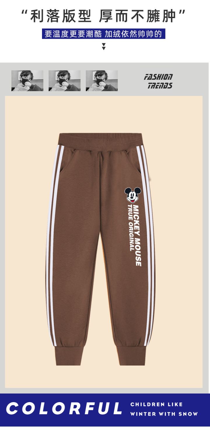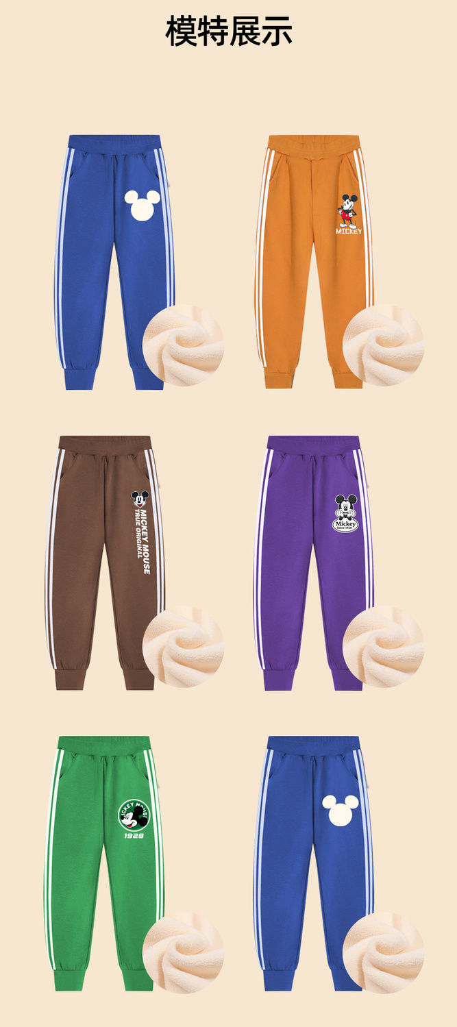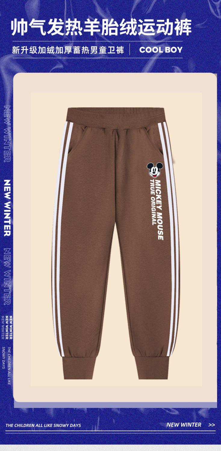 迪士尼男小童加绒裤子一体绒儿童运动裤冬季男童保暖裤加厚休闲裤