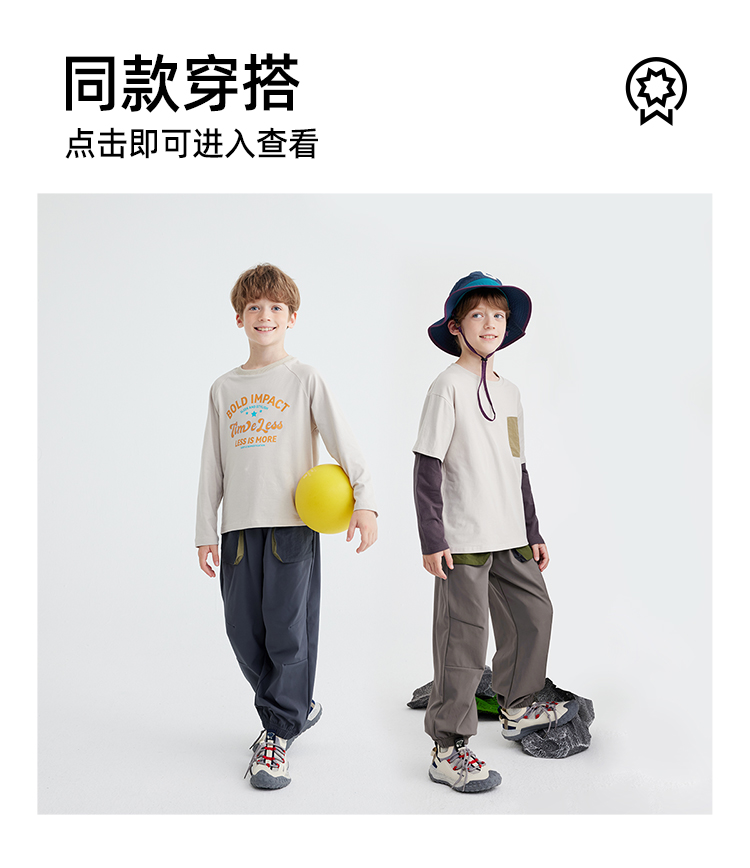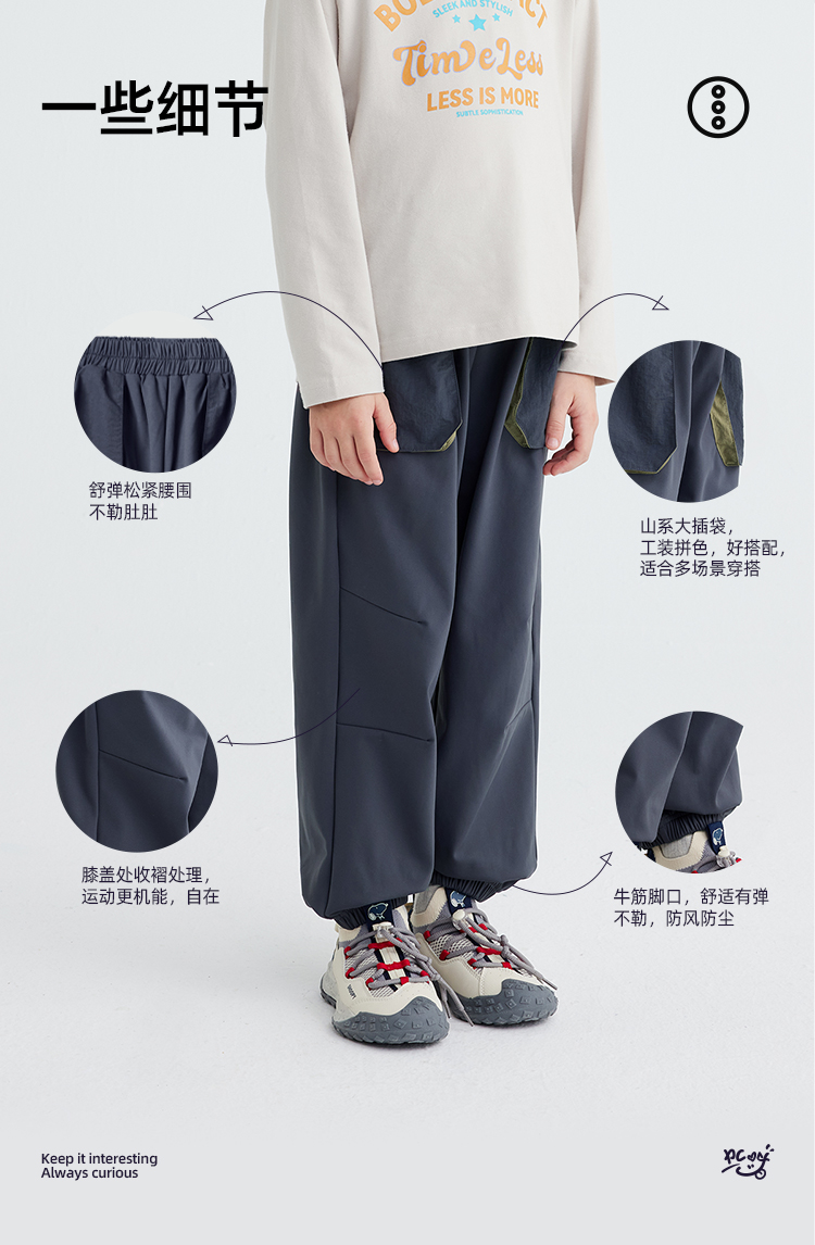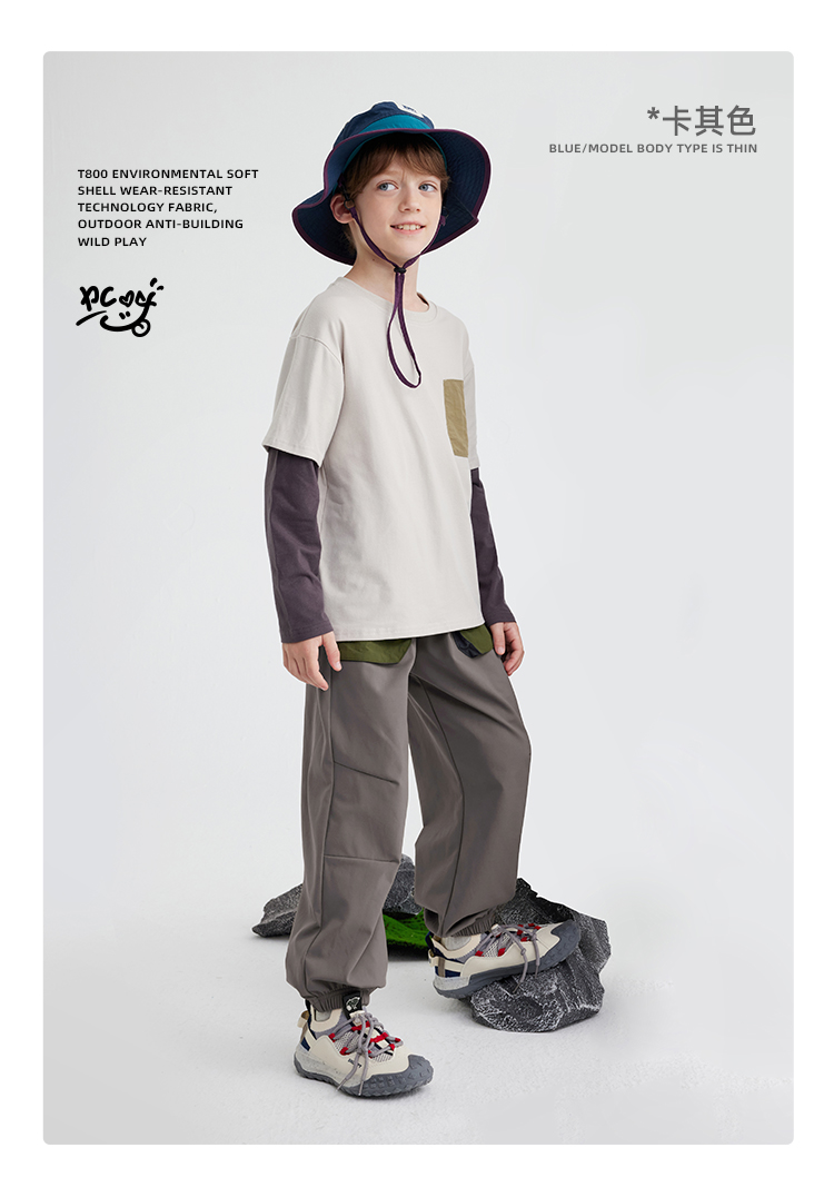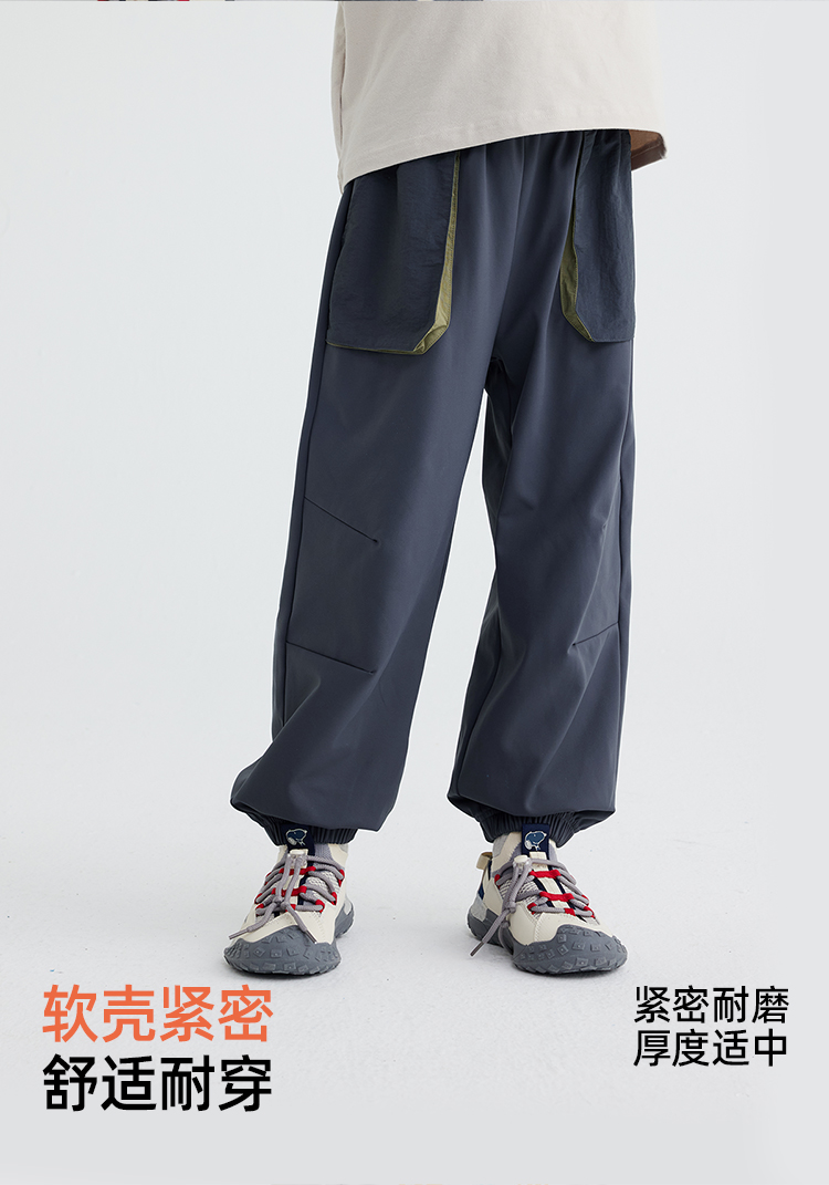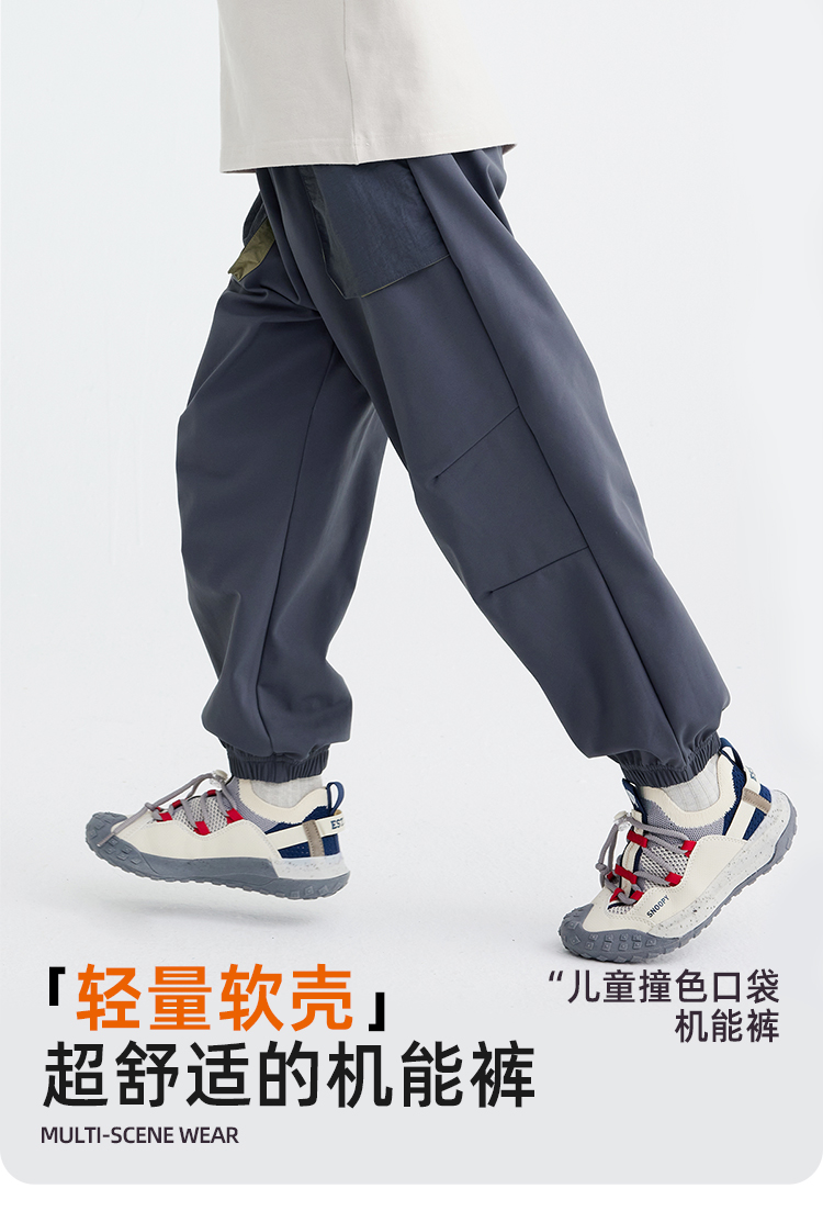 【软皮一体绒】【220g薄款绒】儿童撞色口袋休机能裤 PQK2414