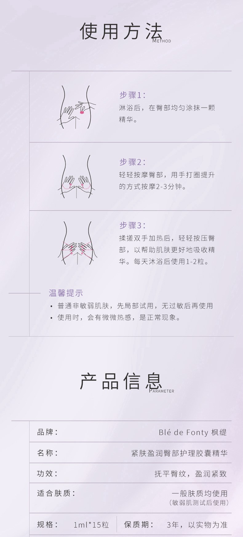文莱进口 枫缇 紧肤盈润臀部护理胶囊精华 1ml*15粒