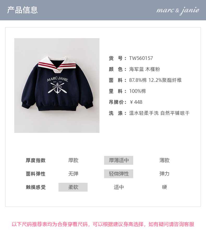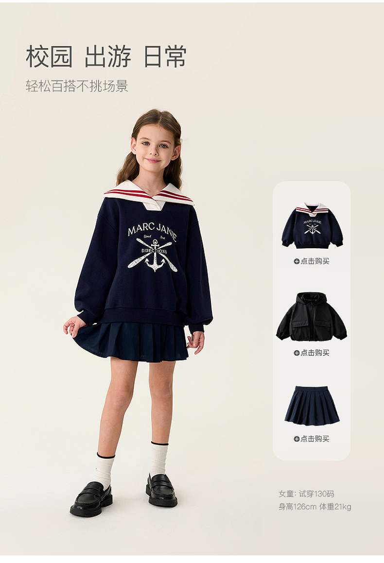 马克珍妮学院女童海军领卫衣2026年春装新款560157